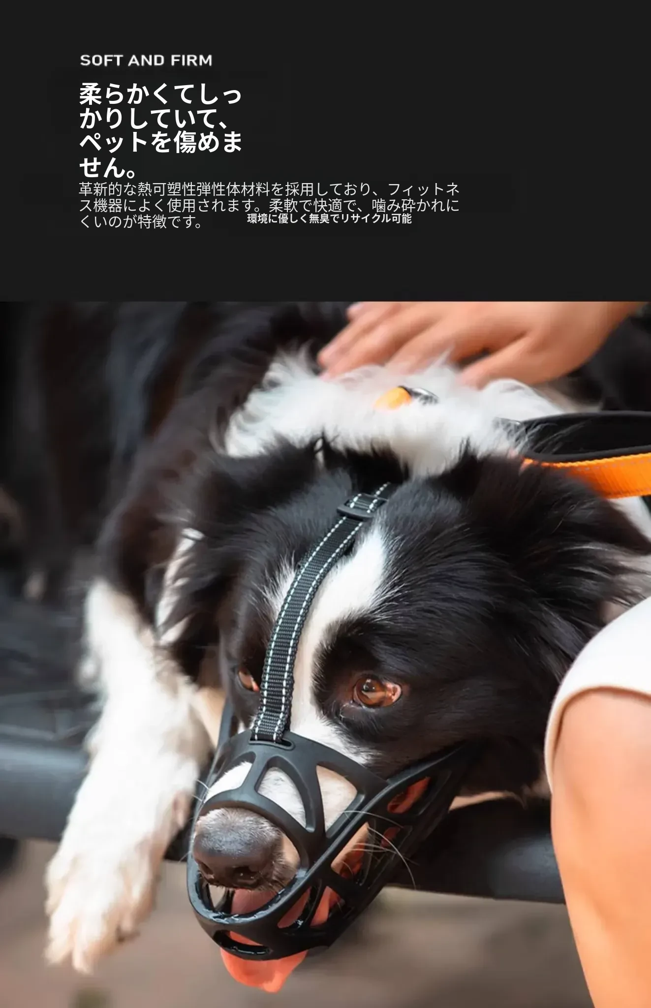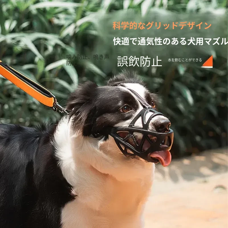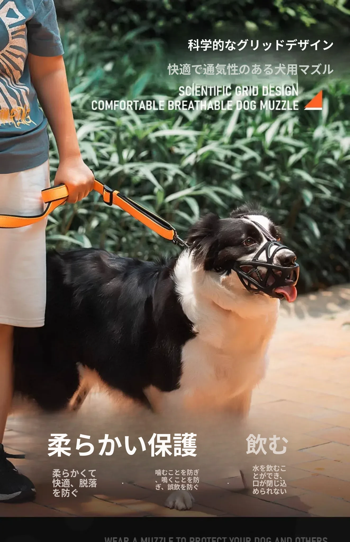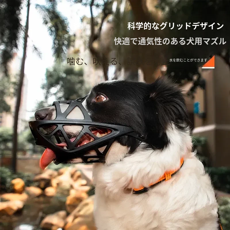 大型犬・中型犬に最適!噛みつき防止・吠え防止・無駄食い防止の犬用マズル。コーギーやボーダーコリーにも対応!水分補給も可能で、安心してお散歩を楽しめます。