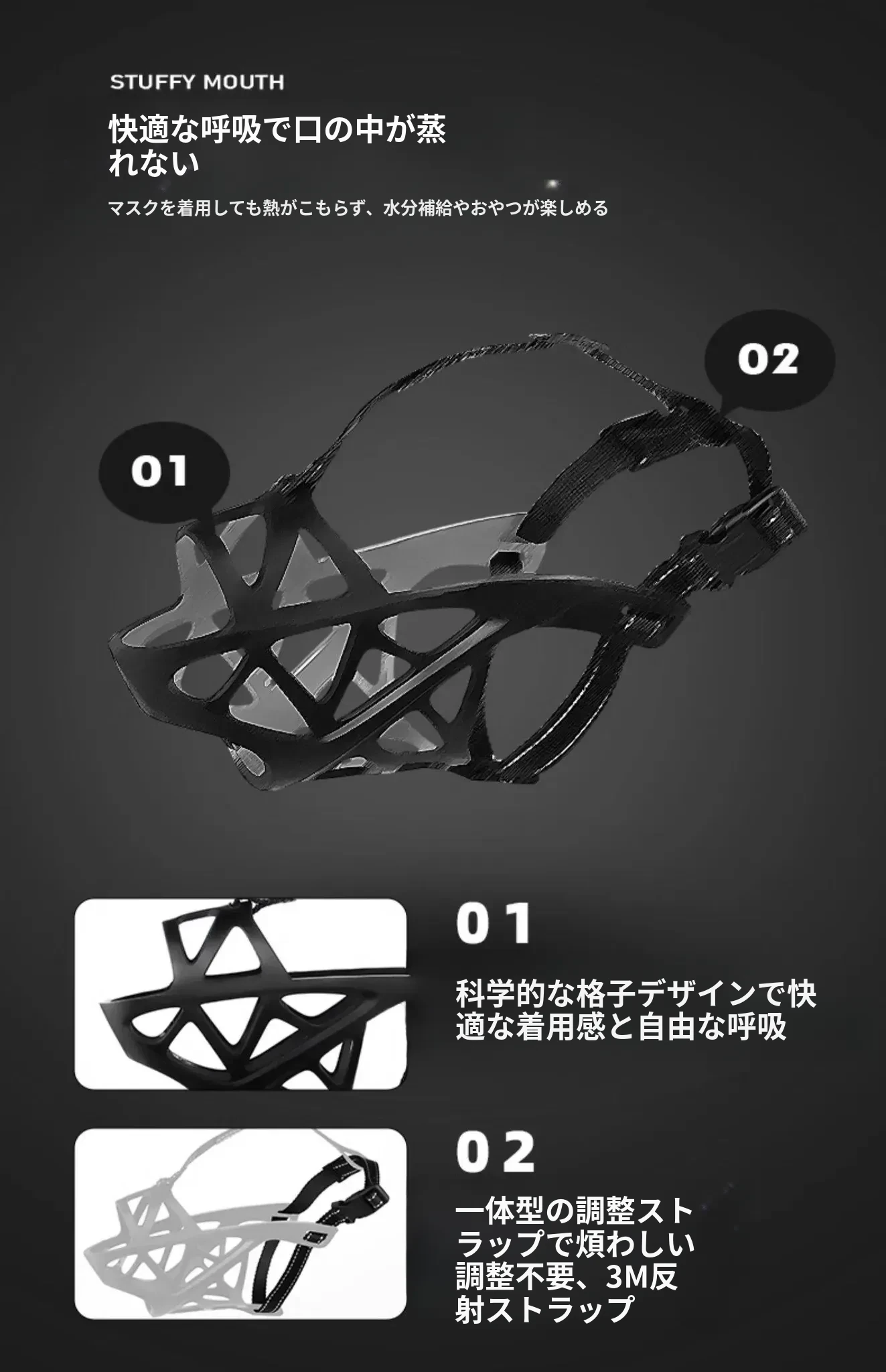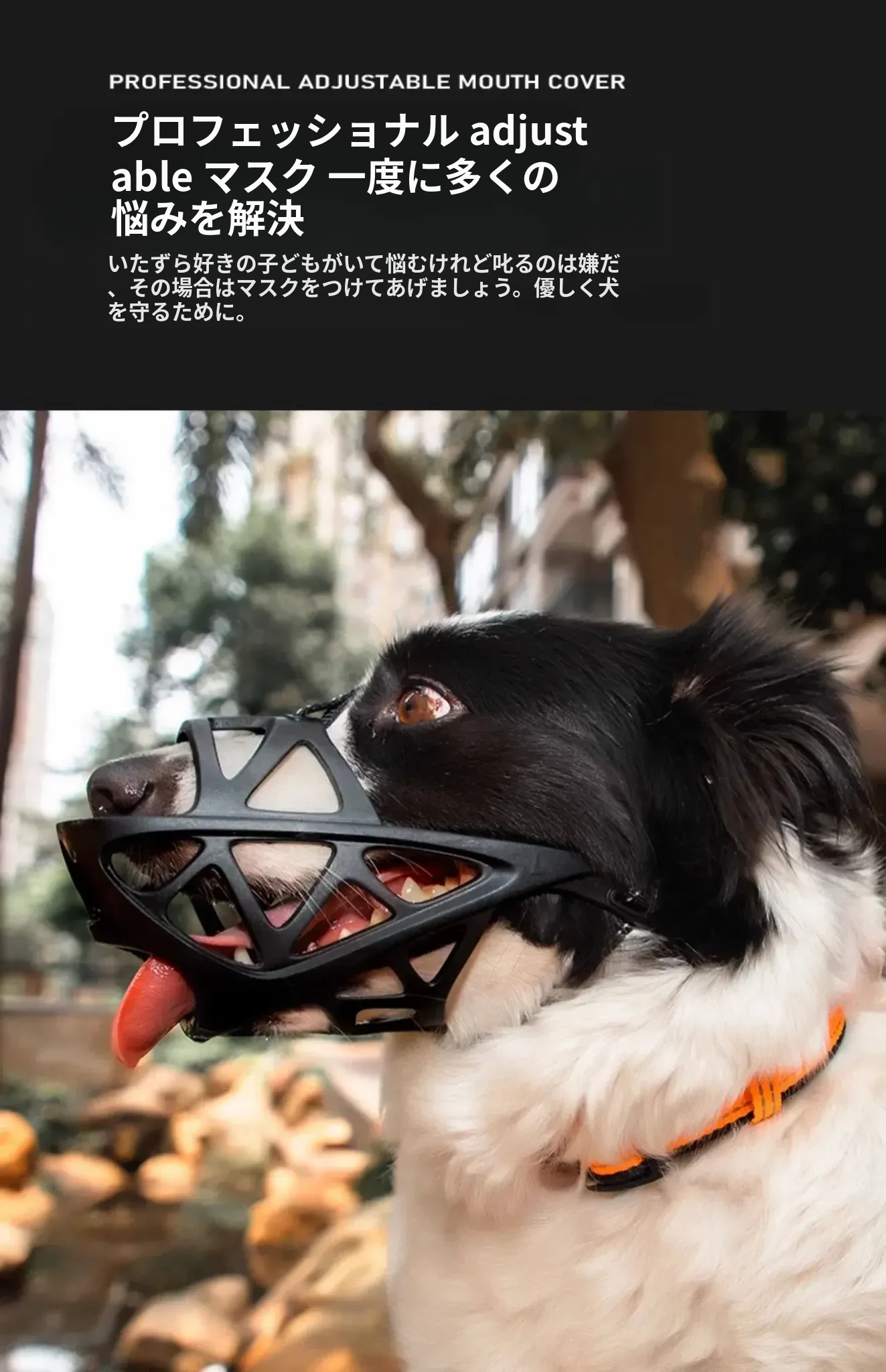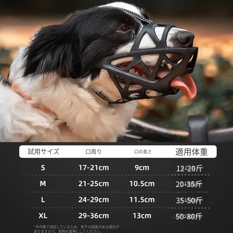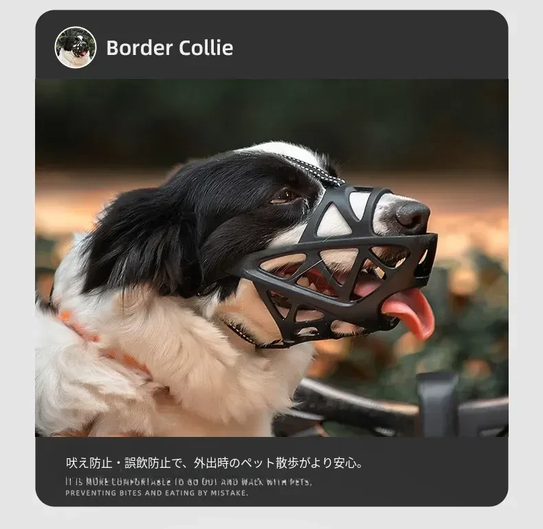 大型犬・中型犬に最適!噛みつき防止・吠え防止・無駄食い防止の犬用マズル。コーギーやボーダーコリーにも対応!水分補給も可能で、安心してお散歩を楽しめます。