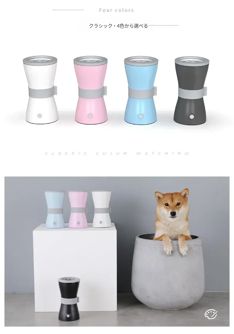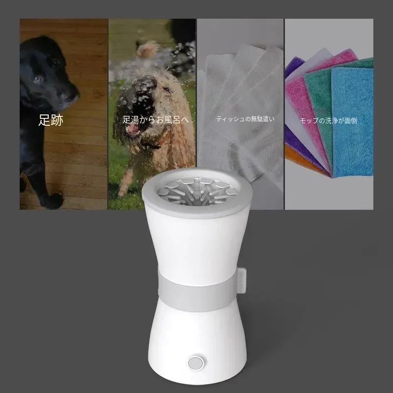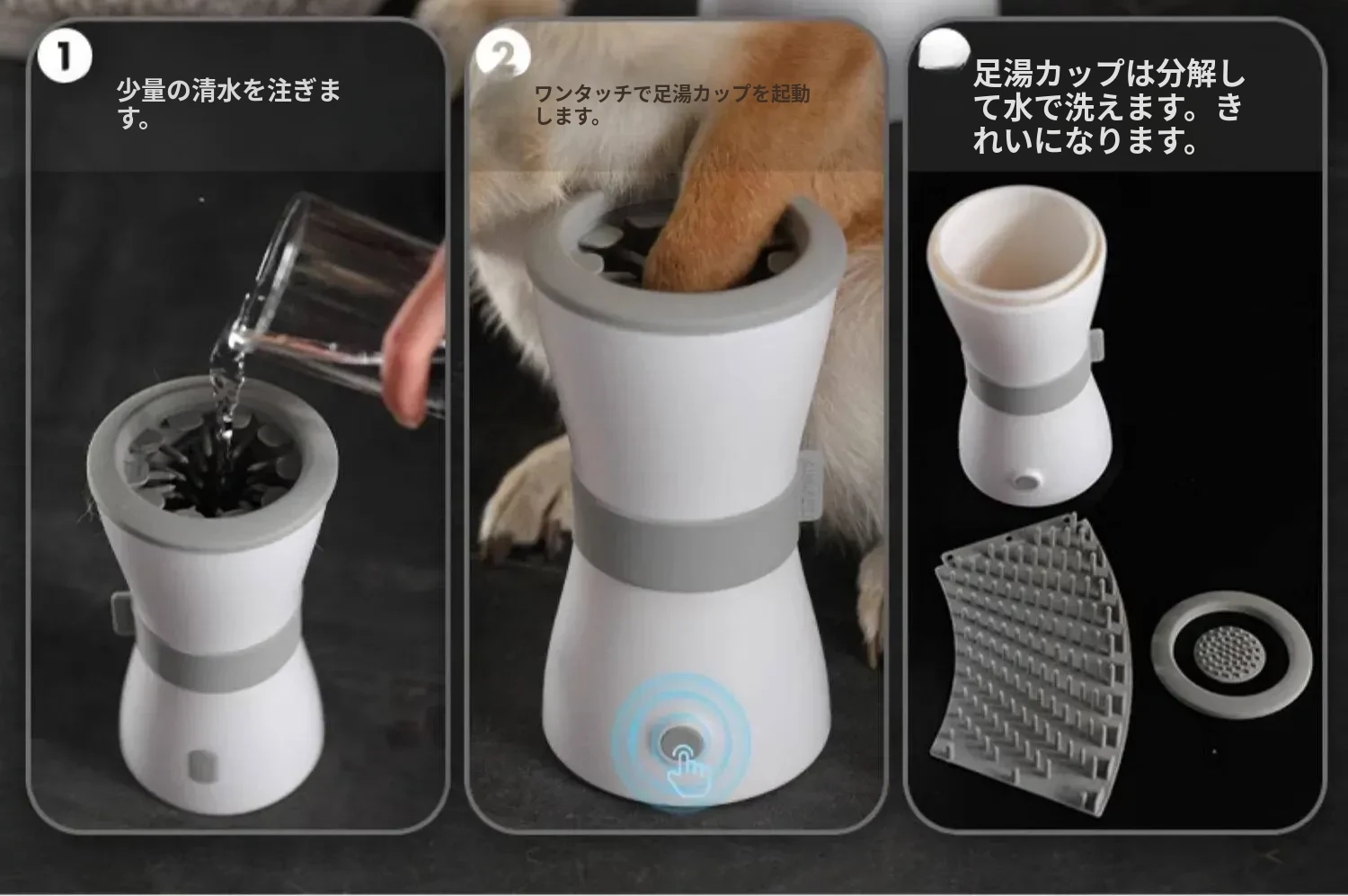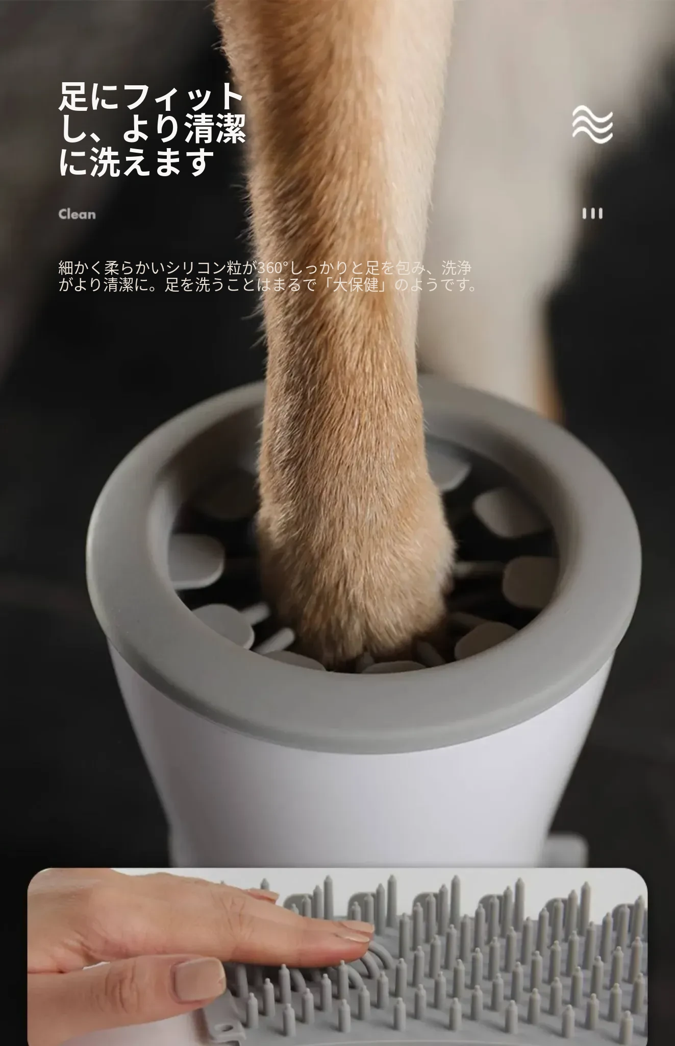 ペット用足洗いカップ!犬の足を簡単に洗える自動クリーナー、タオル不要で手間いらず。テディや猫の爪のお手入れもこれ一つで完璧!清潔な足でお散歩を楽しもう!