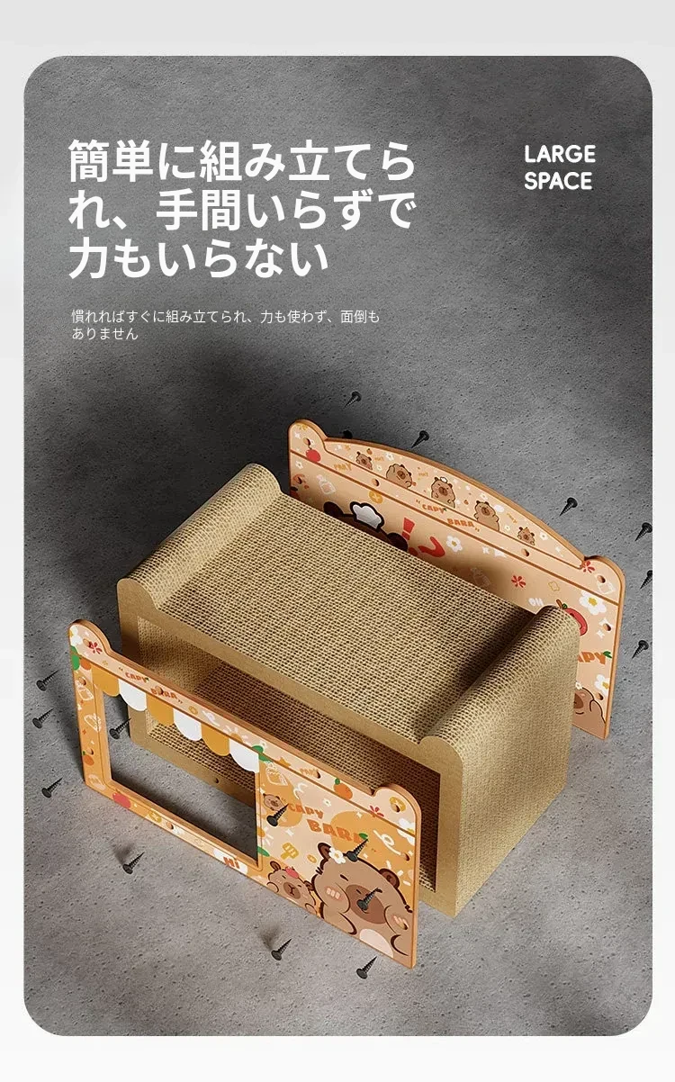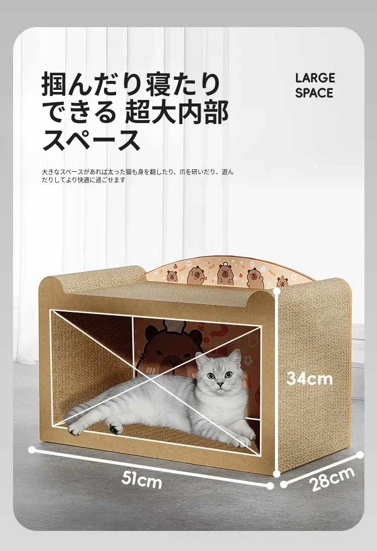 カピバラキャットハウスキャットスクラッチャー サイズ超大/爪を研ぐことも寝ることもできる