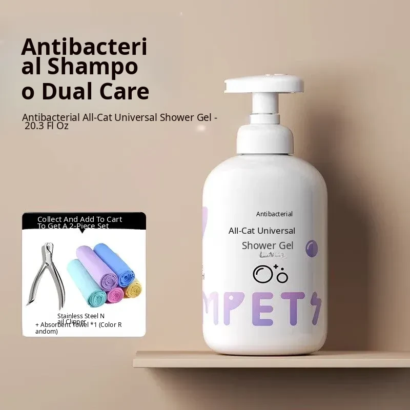 Universal Antibacterial Shampoo for All Cats [23622.06inl] - Includes Stainless Steel Nail Clippers + Absorbent Towel