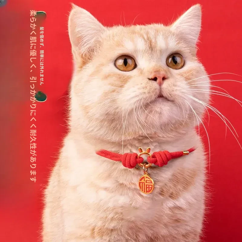 猫ちゃんの長寿を願う!おしゃれなペット用首輪、鈴付きネックレス。愛犬・愛猫のための金色ロックと刻印可能な迷子札付き。大切な家族の一員を守るアイテムです!