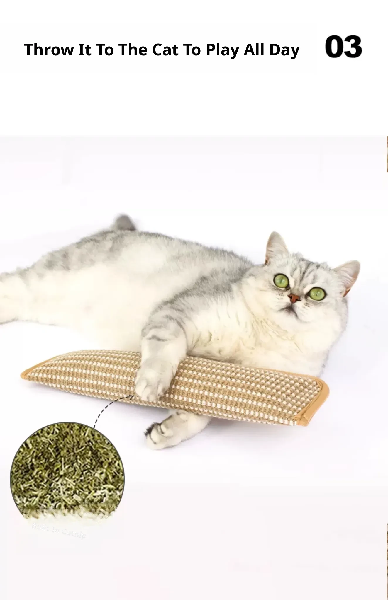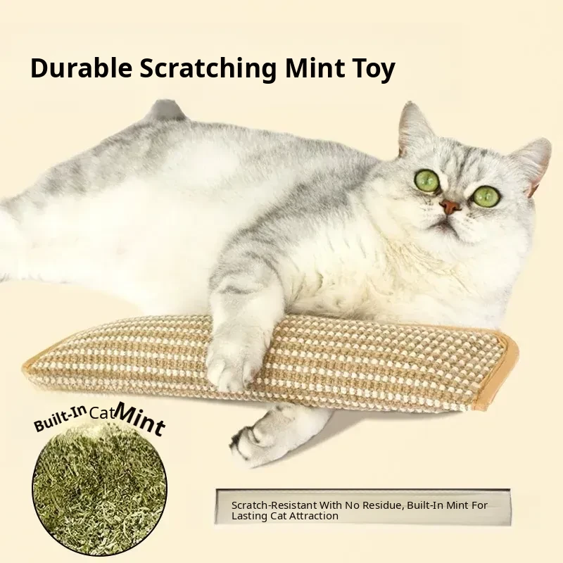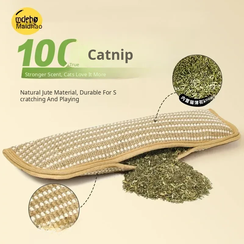 Catnip Cat Scratching Pad - Self-Entertainment Pillow and Chew Toy for Cats, Dental Care Scratch Board, Durable Jute Cat Toy for Fun and Teeth Cleaning