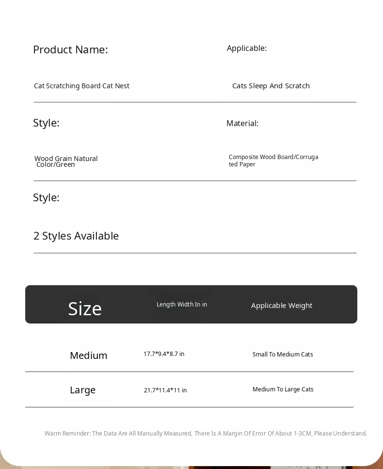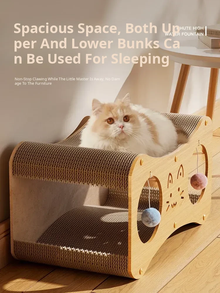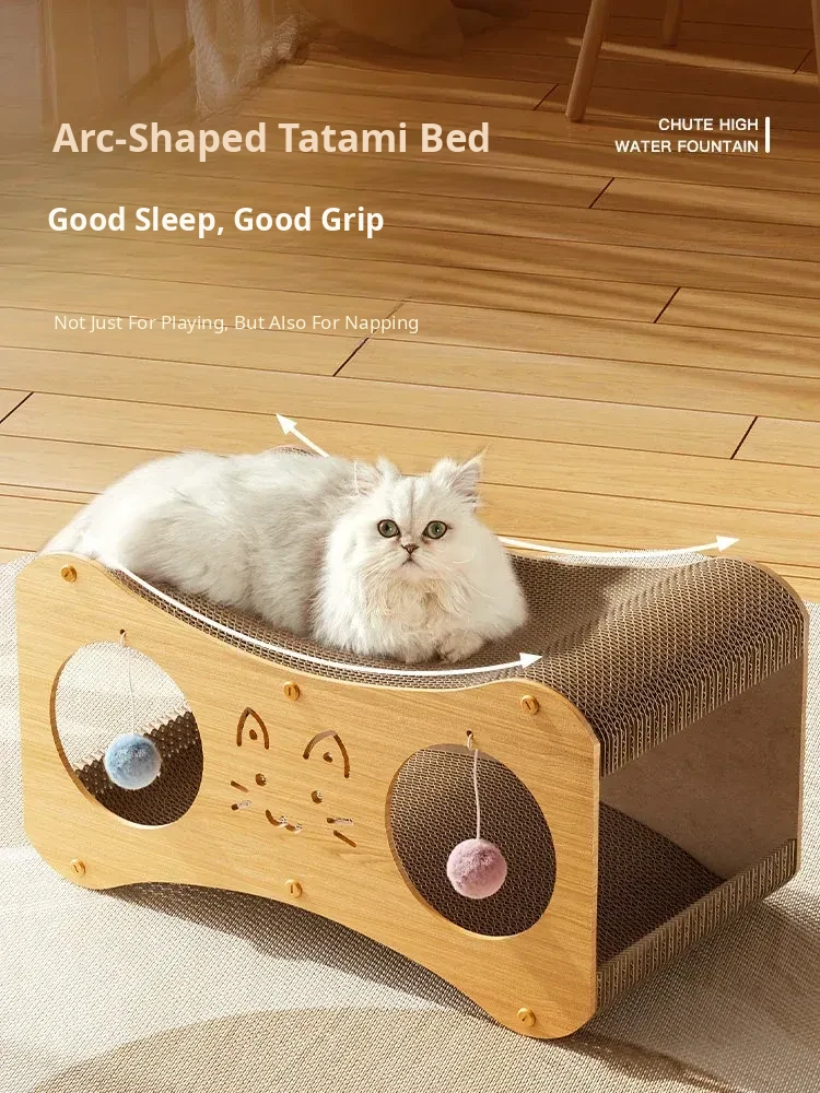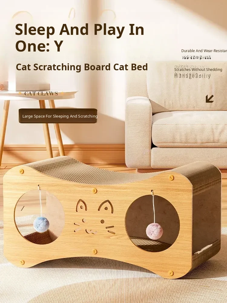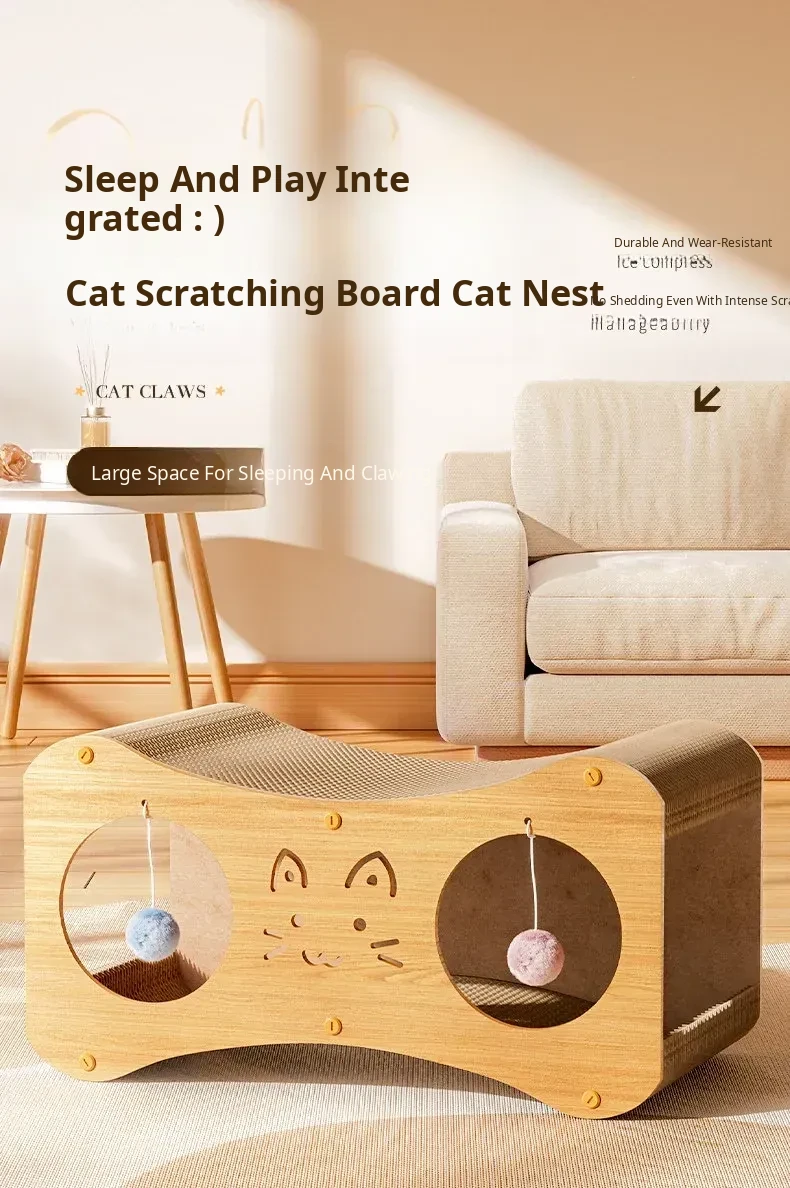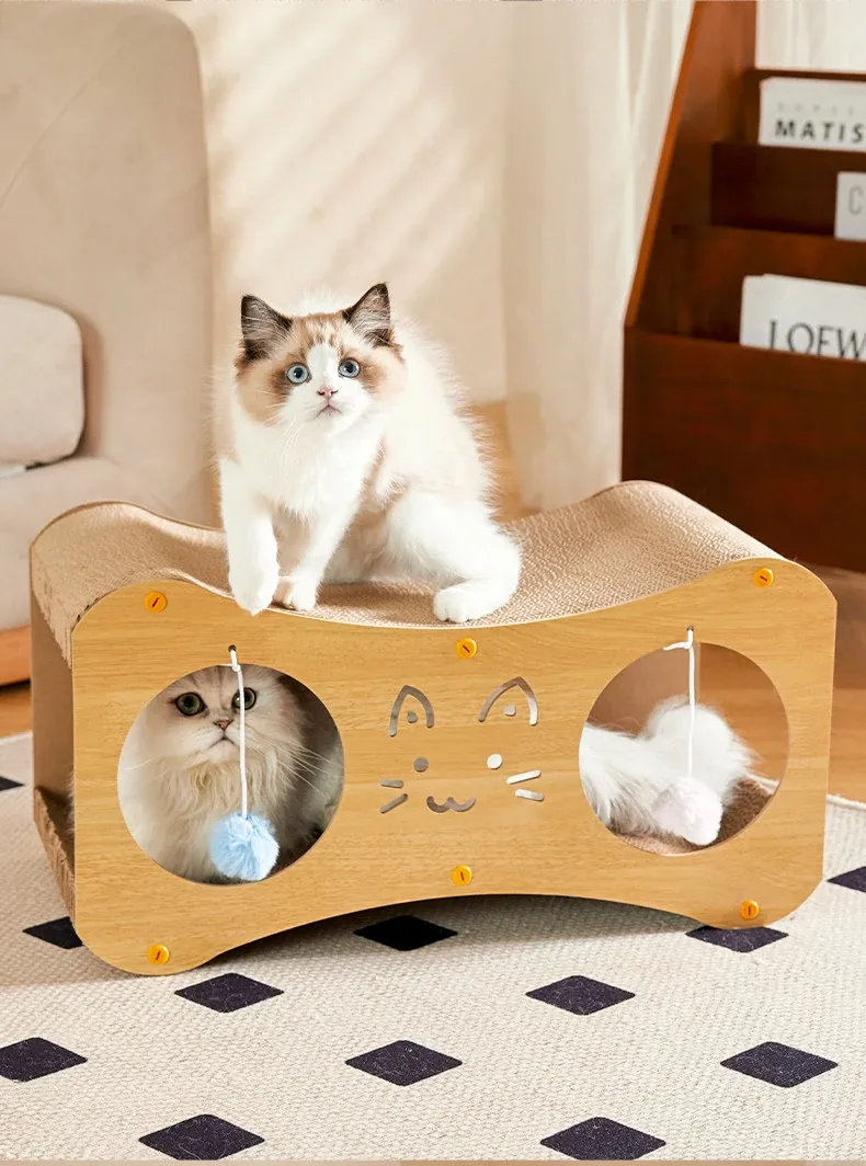 [Large Cat Scratching Board Nest] Double Holes Can Be Drilled, Wood Color
