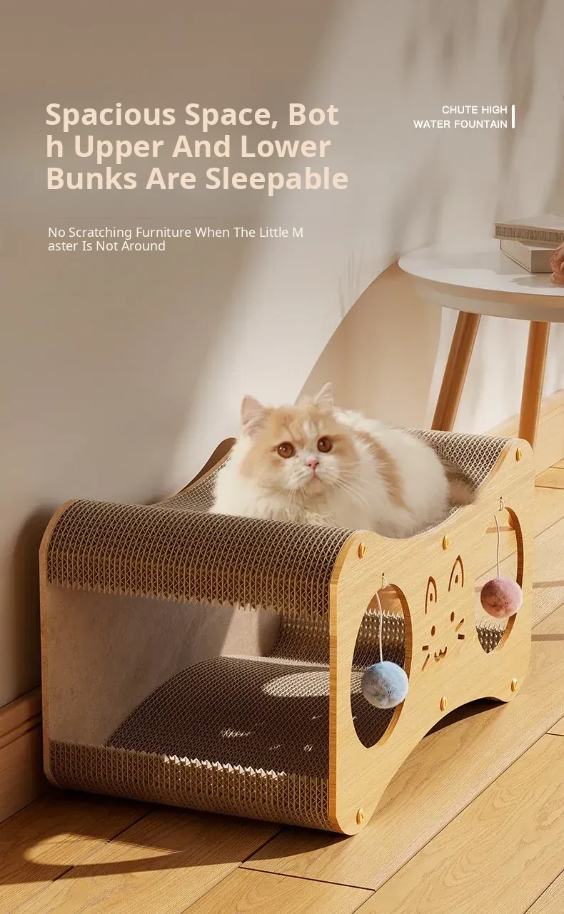 Dual-Layer Cat Scratching Post and Cozy Cat House - Durable, No Shedding, Fun and Engaging Cat Toy for Playful Kittens - Vertical Cat Climbing Tower for Endless Entertainment!