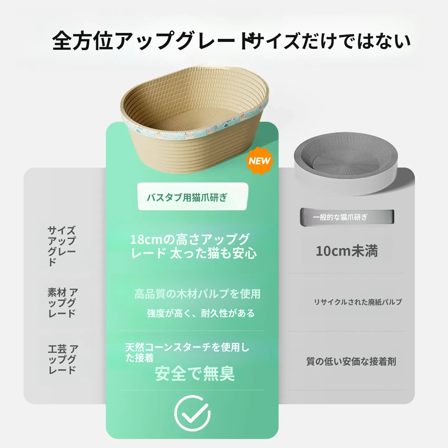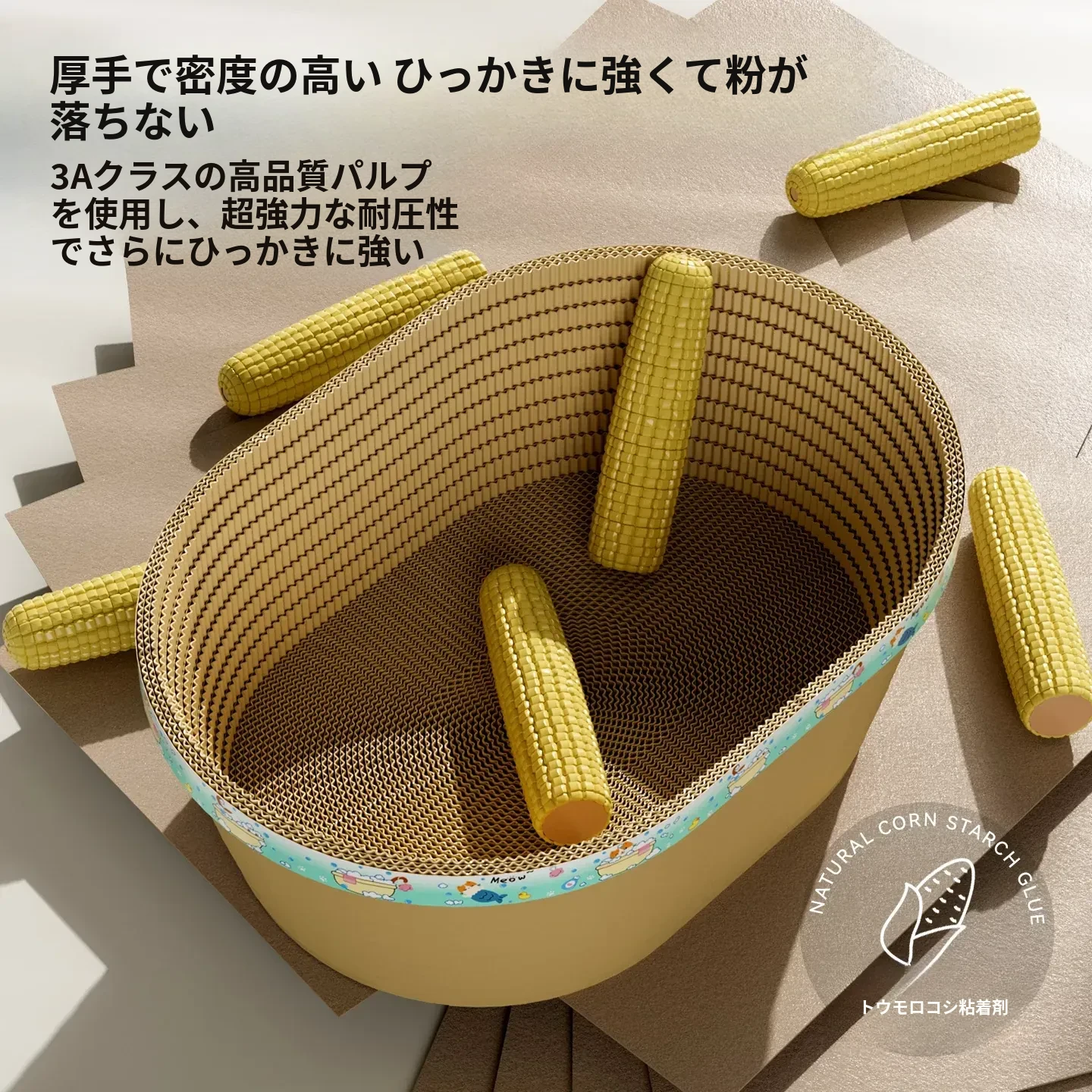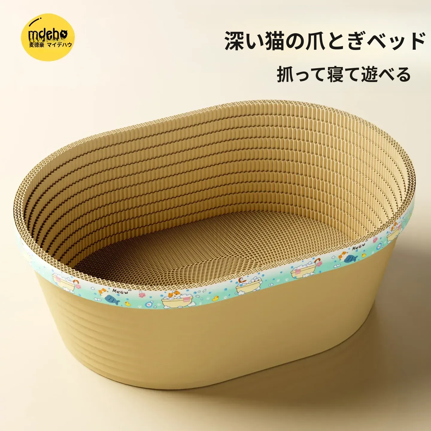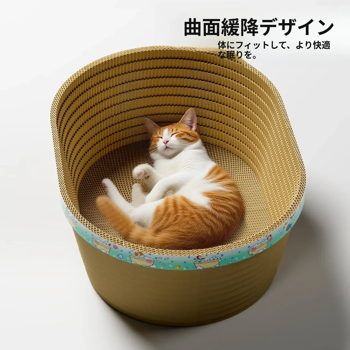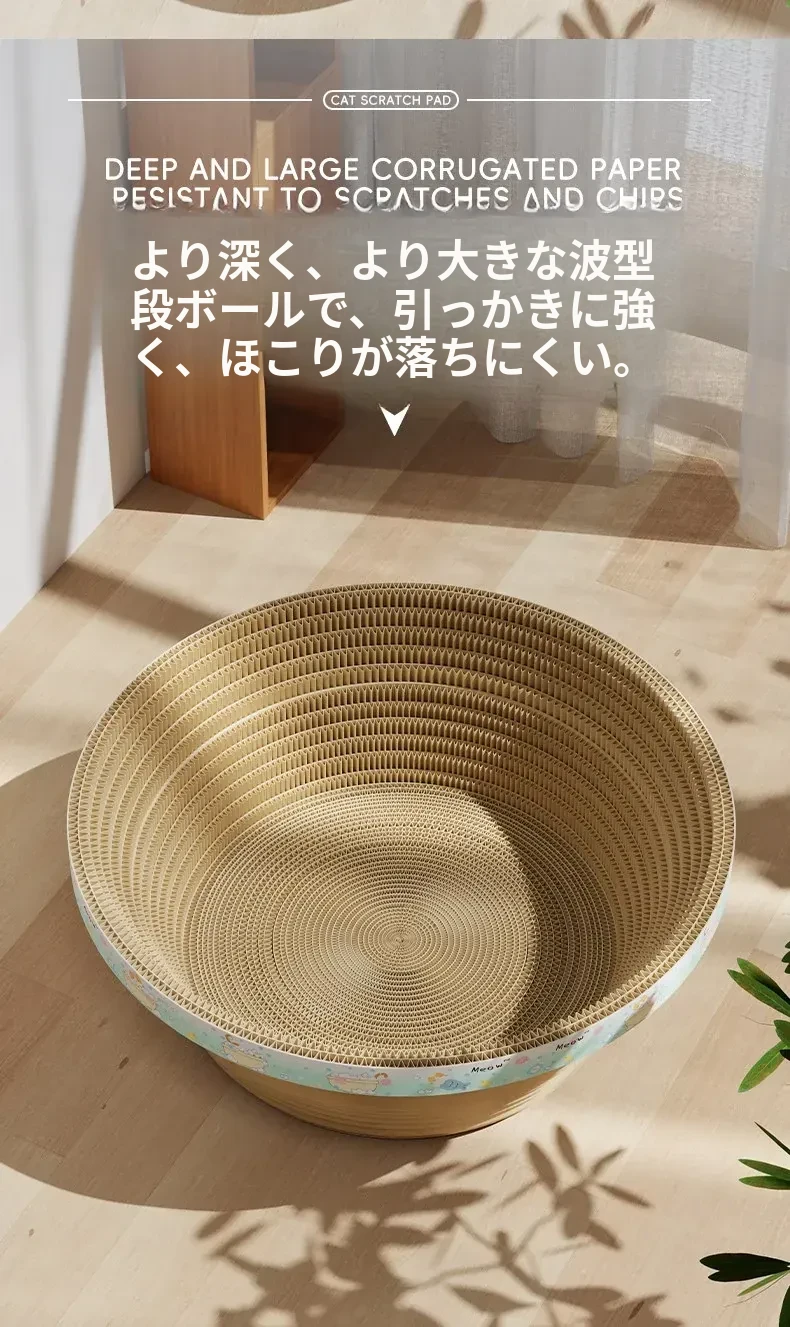 耐久性抜群のキャットスクラッチャー!爪を守るための強化ダンボール製、キャットバス&キャットベッド一体型。抜け毛なしで、愛猫のお気に入りのくつろぎ空間に最適!