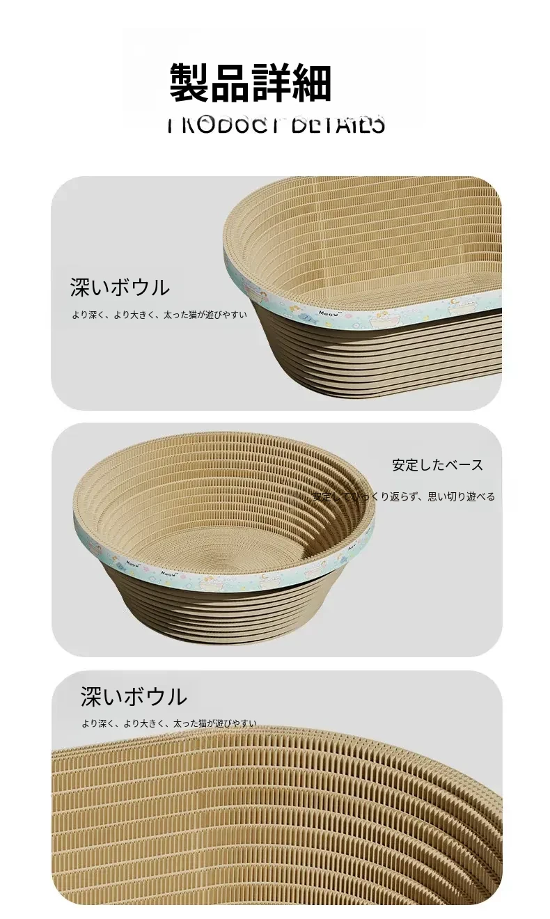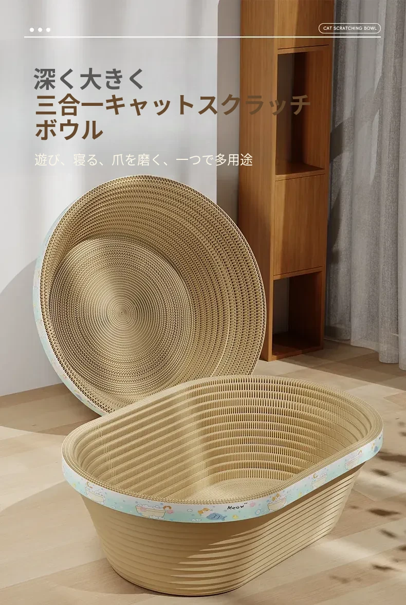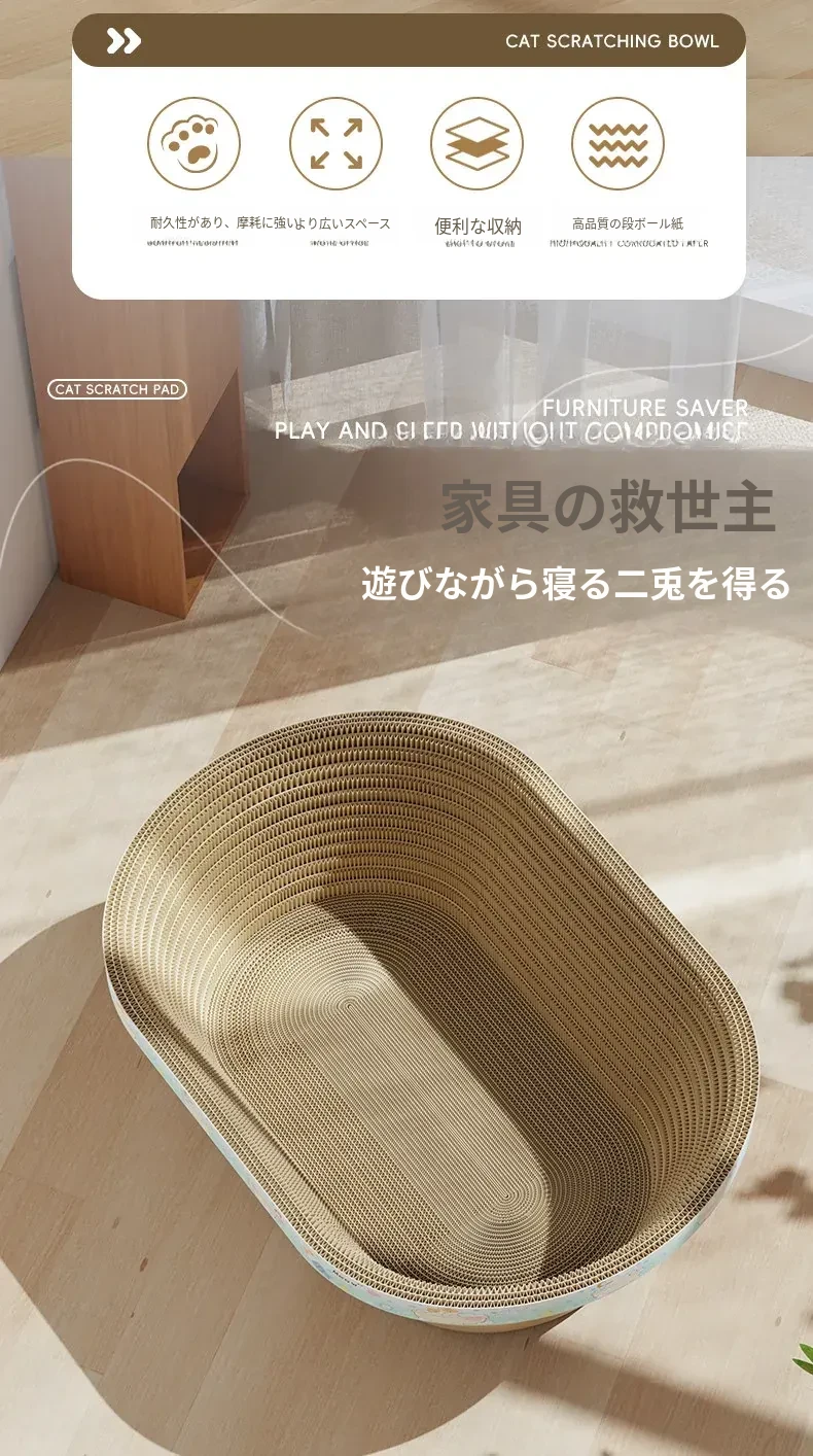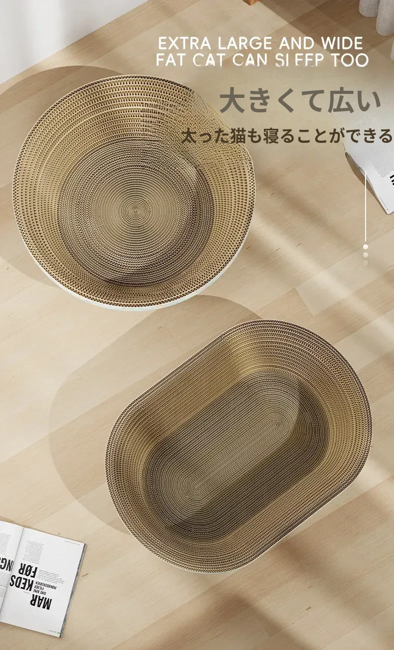 【快適睡眠アップグレード】楕円形ビッグサイズ60CM-深い猫の爪とぎベッド 【30斤まで適合】