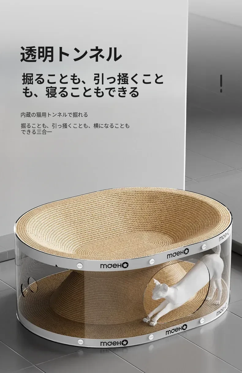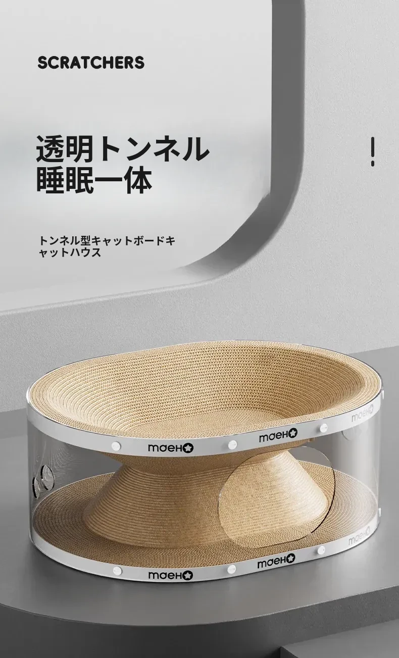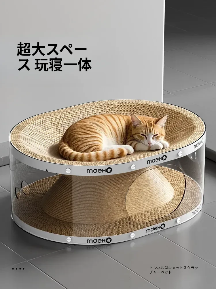 透明トンネル猫爪板ベッド【遊びと睡眠の一体型 耐久性があり、毛が抜けない】