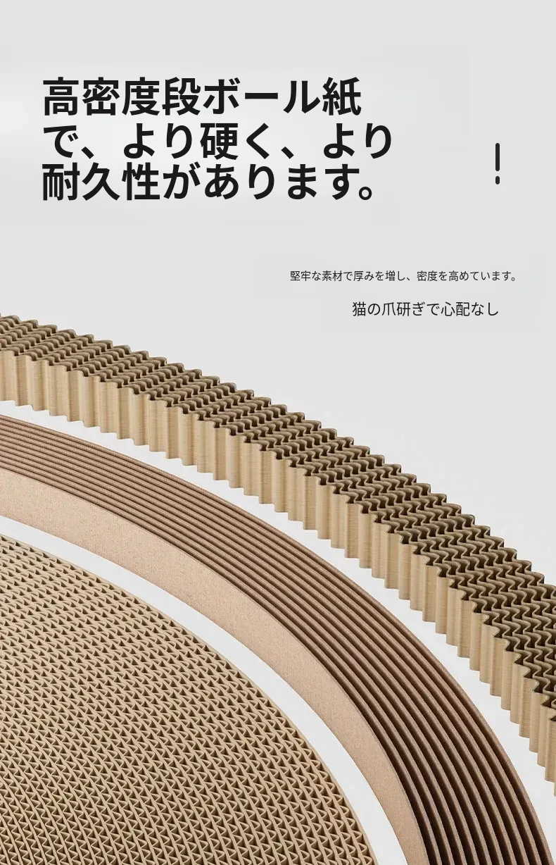 耐久性抜群!猫の爪とぎと隠れ家が一体化したキャットトンネル。脱落しないコルゲート紙を使用し、猫ちゃんの遊び心をくすぐる二重構造で退屈知らず!