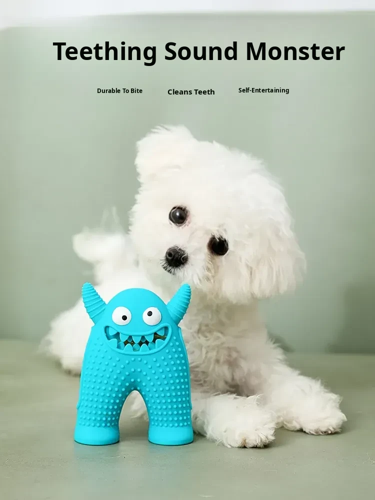 Red Little Monster [Durable, Teeth-Cleaning, Fun-Sounding Chew Toy]