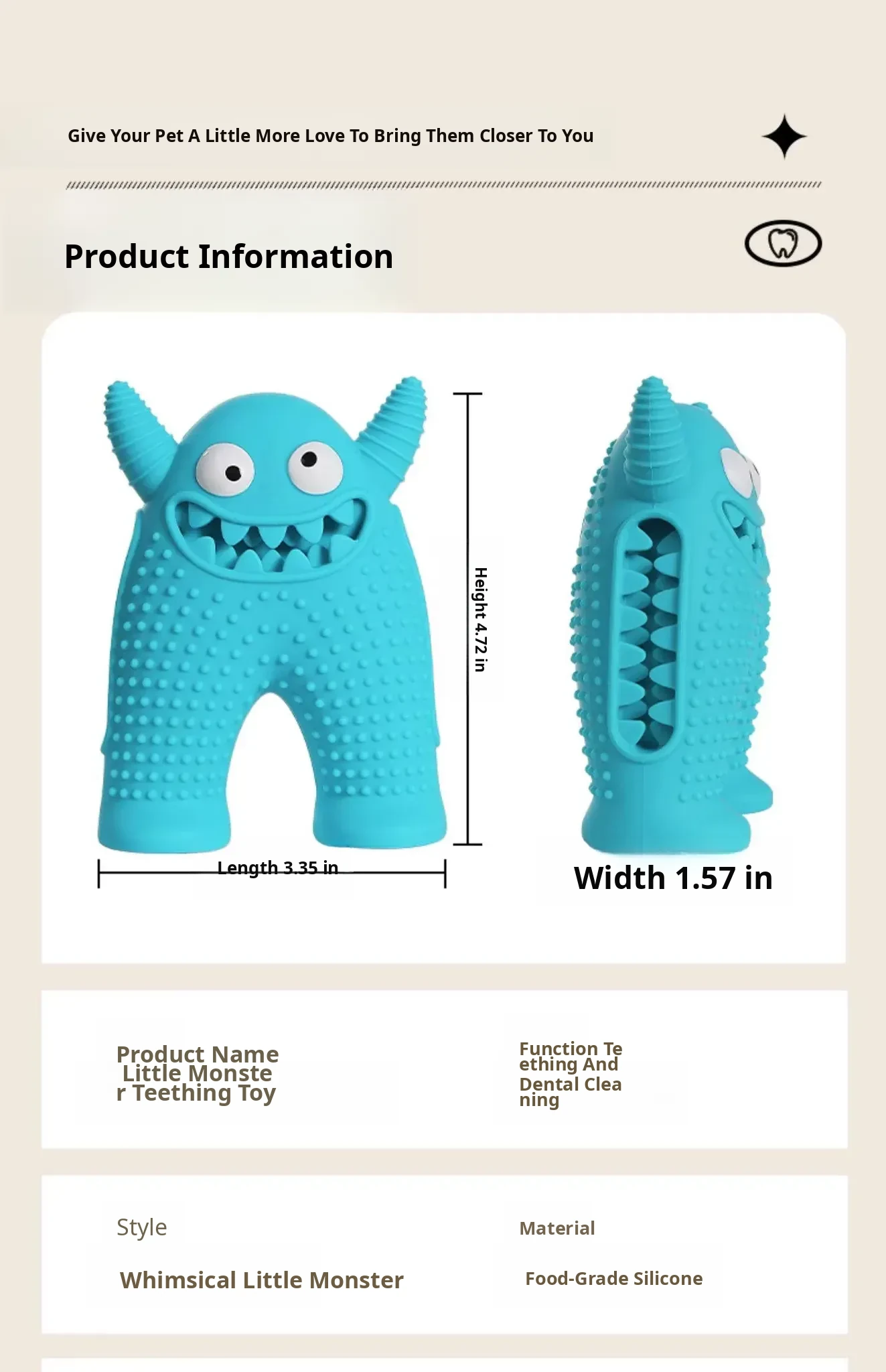 Blue Little Monster [Chew-Resistant, Teeth-Cleaning, Fun Sound]
