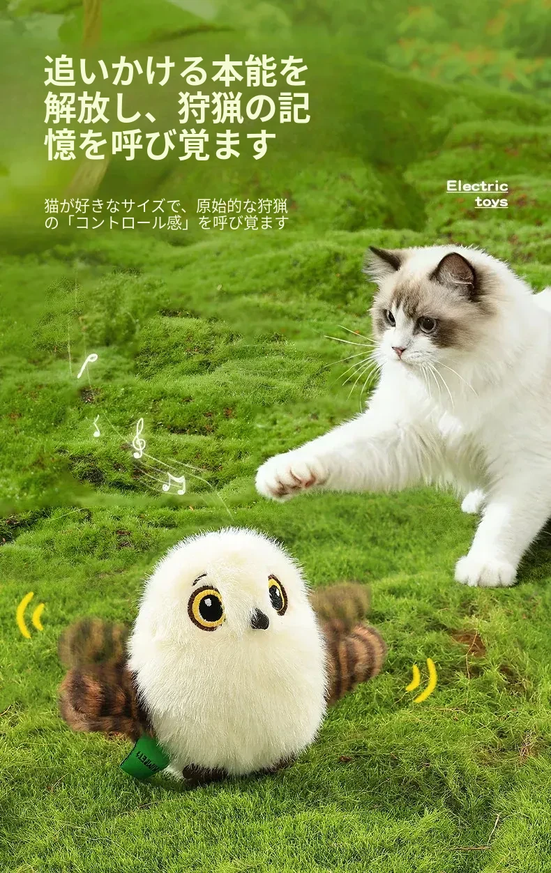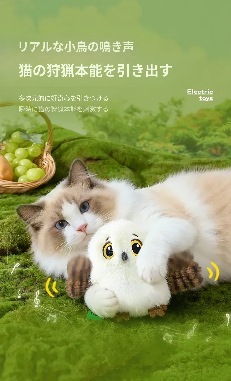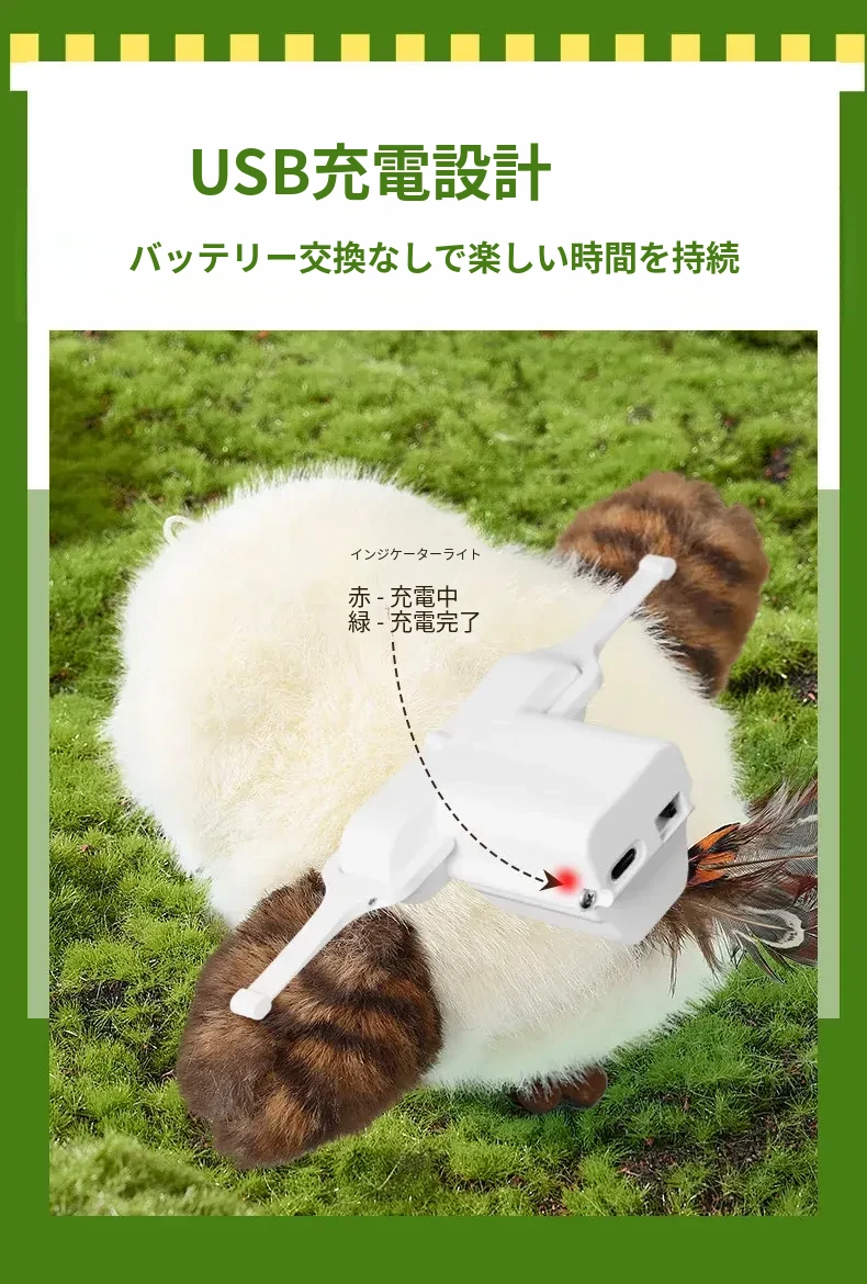 自動で飛び跳ねるリアルな小鳥型電動猫おもちゃ!猫ちゃんのストレス解消&運動不足解消に最適!楽しく遊んで、愛猫を元気に!