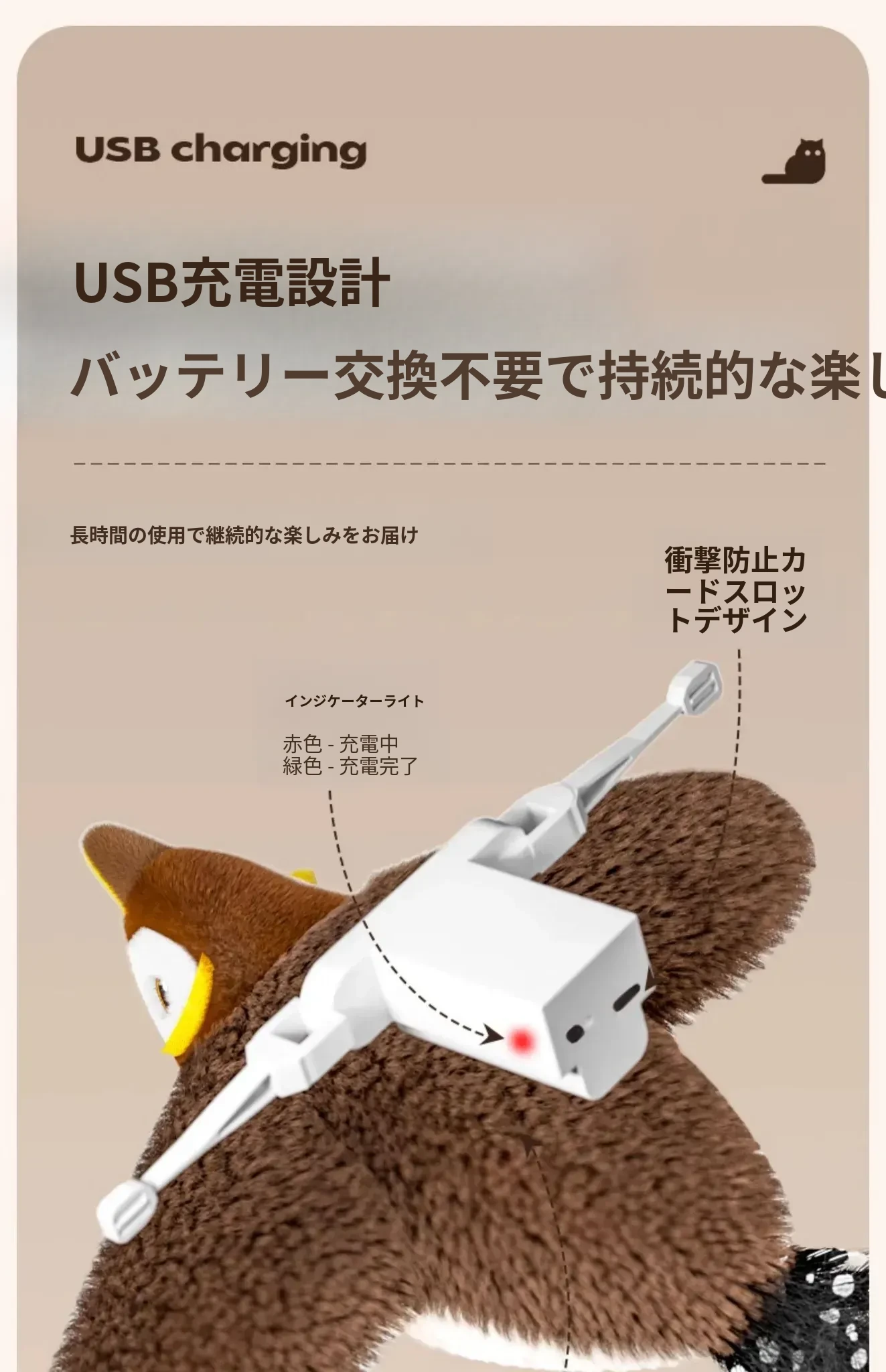 ドドキツツキ【羽ばたき音声付き USB充電ケーブル付】