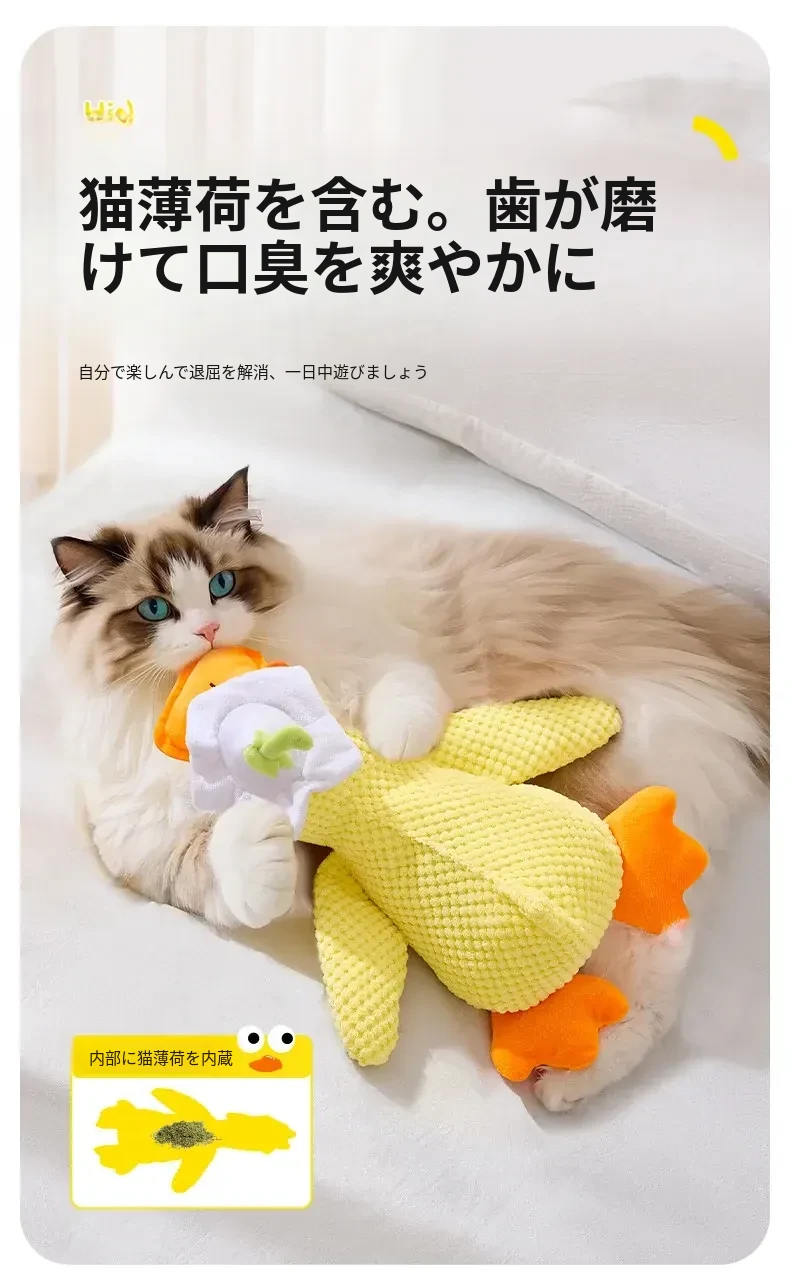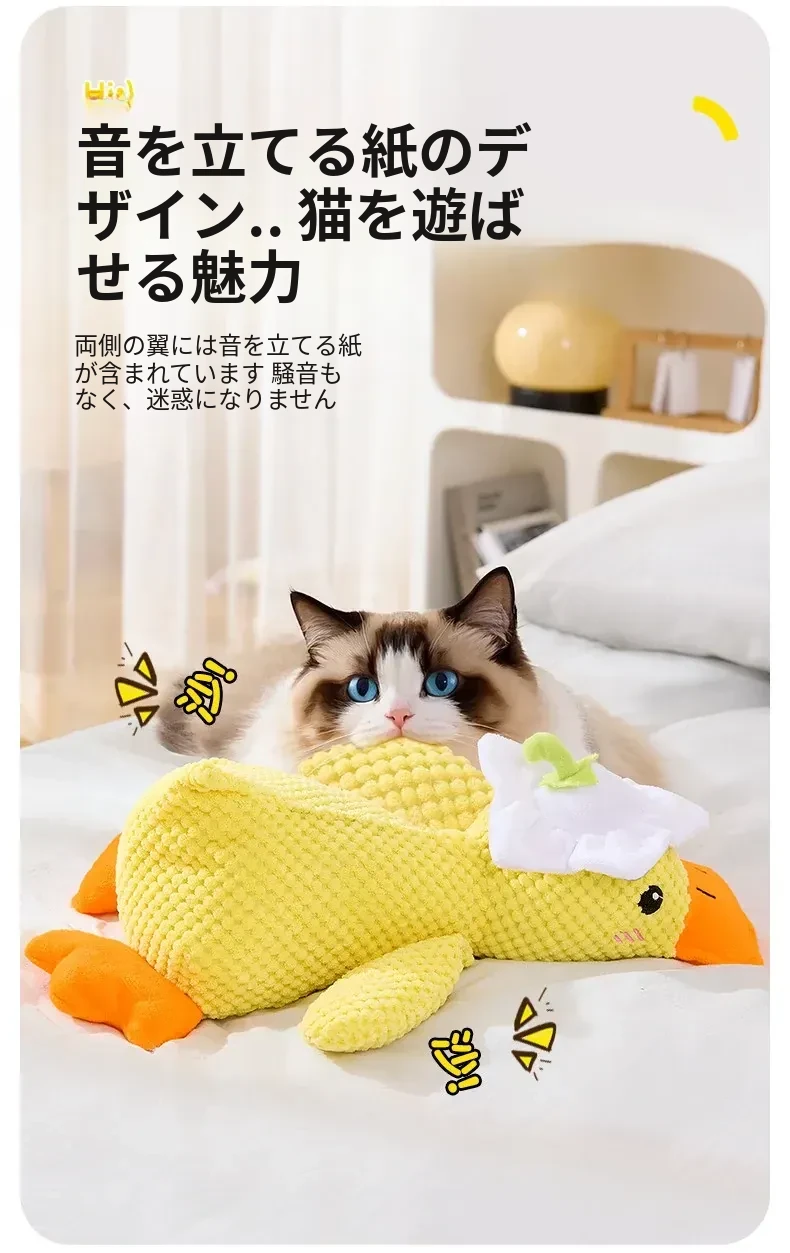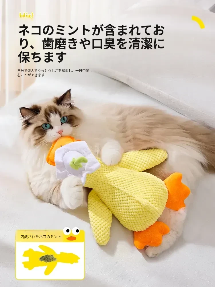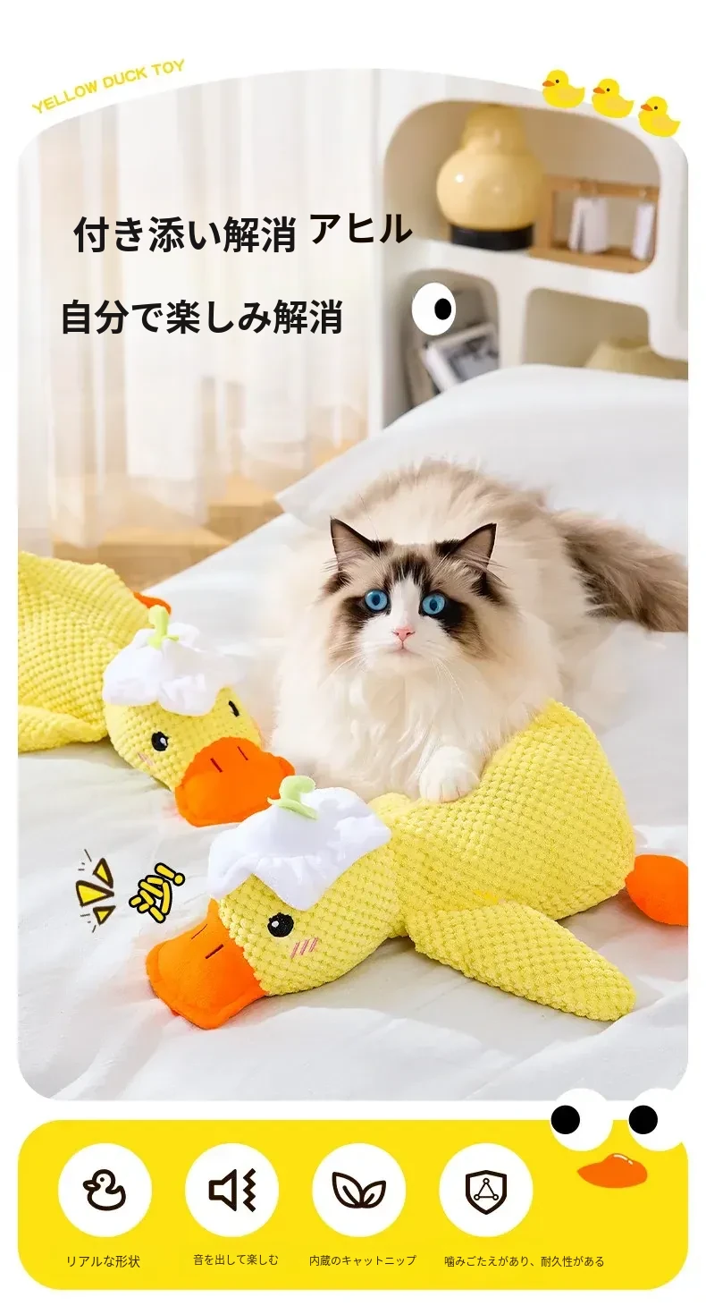 超リアルな音が鳴る!薄荷の香り付き大きなダック型猫おもちゃ - 猫ちゃんのストレス解消&歯磨きに最適!噛んでも安心、楽しい遊び時間を提供する猫のための必需品!