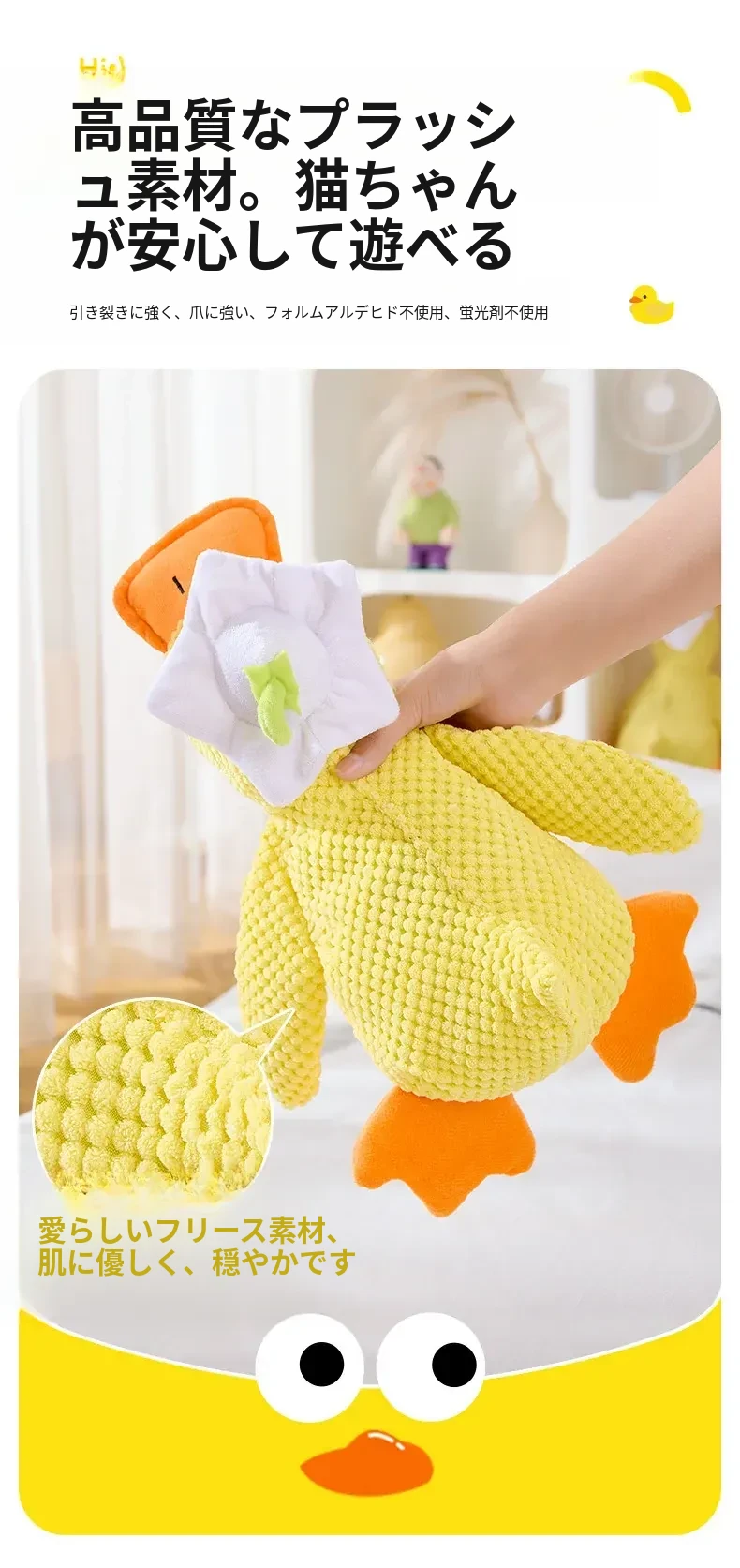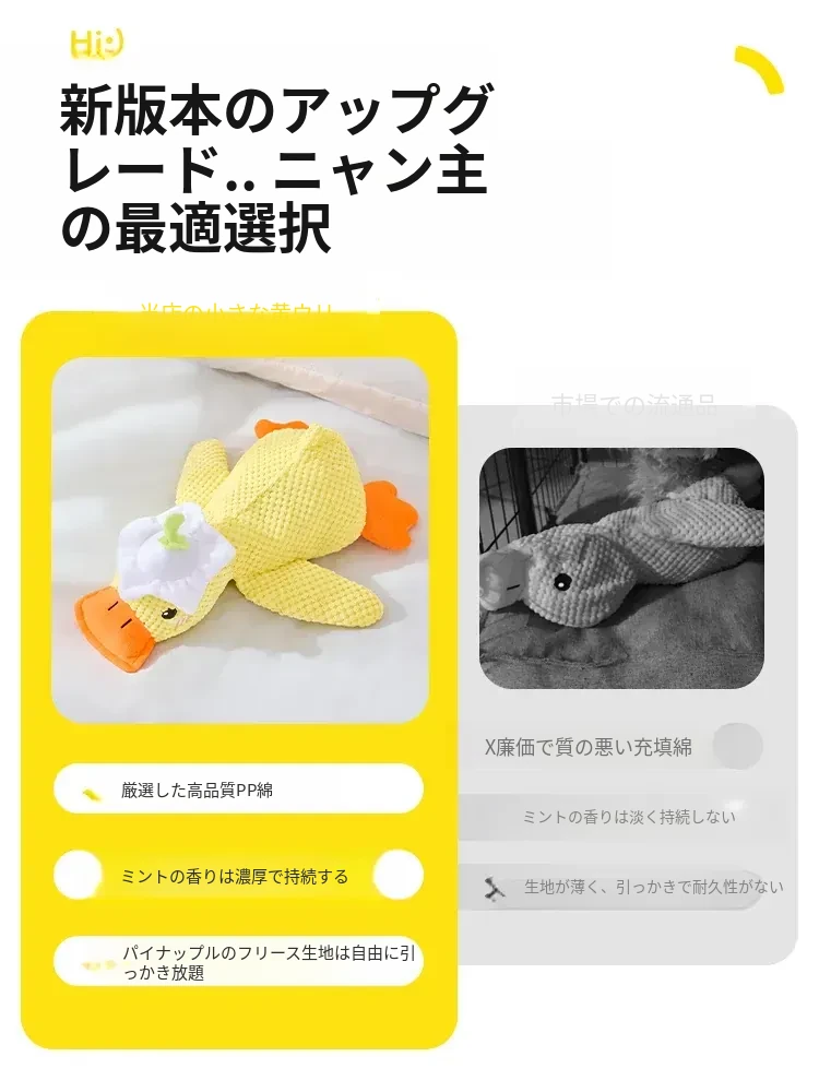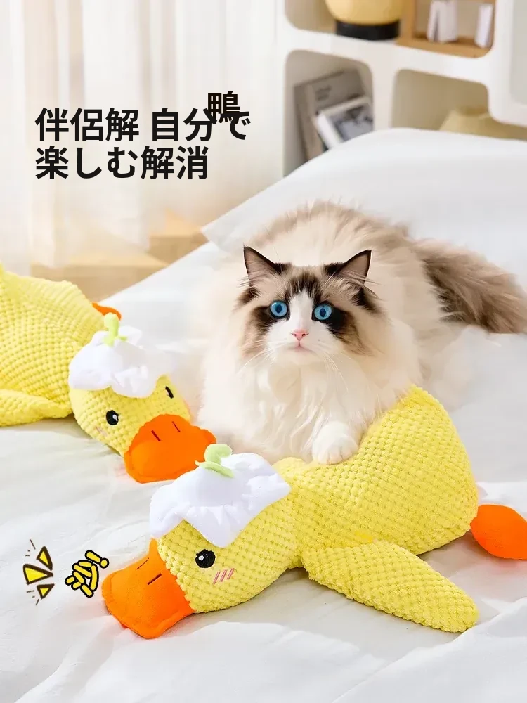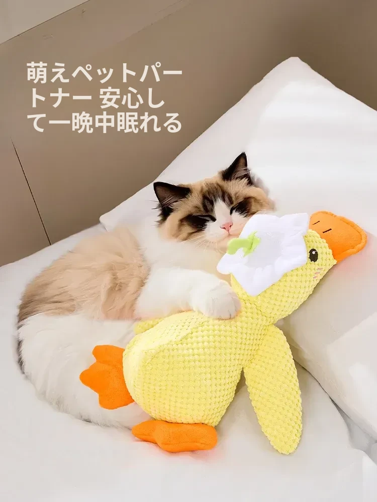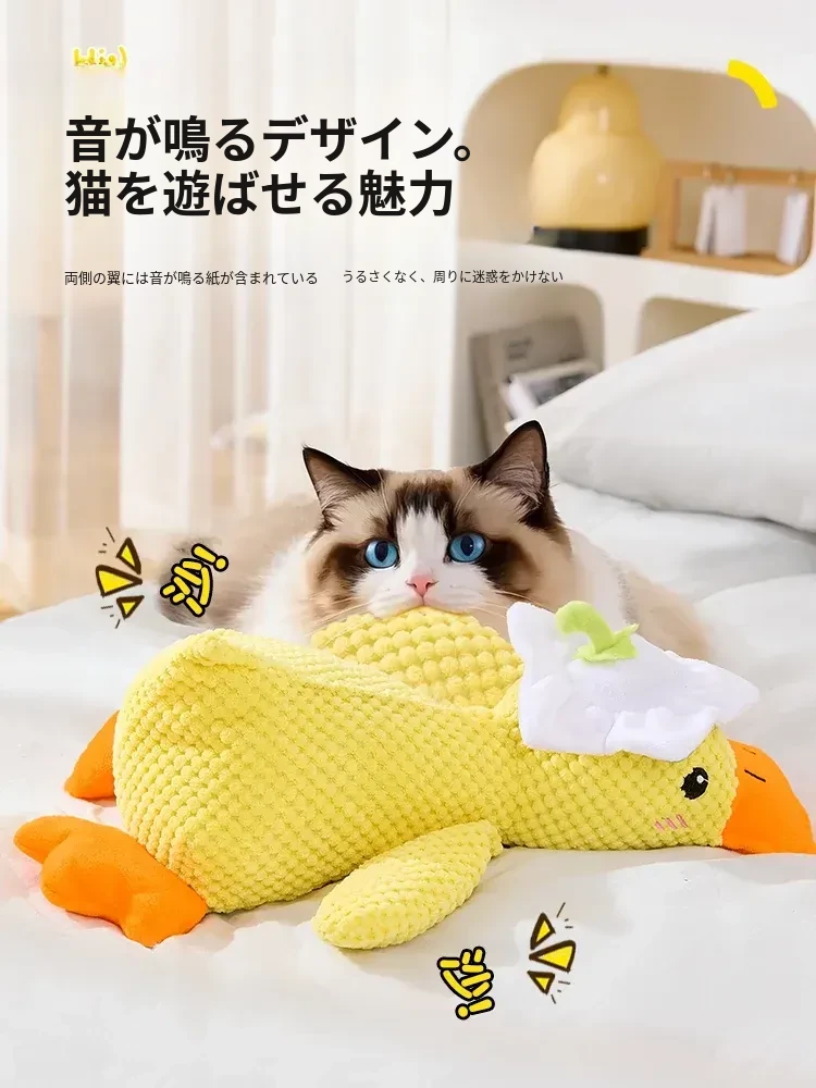 超リアルな音が鳴る!薄荷の香り付き大きなダック型猫おもちゃ - 猫ちゃんのストレス解消&歯磨きに最適!噛んでも安心、楽しい遊び時間を提供する猫のための必需品!