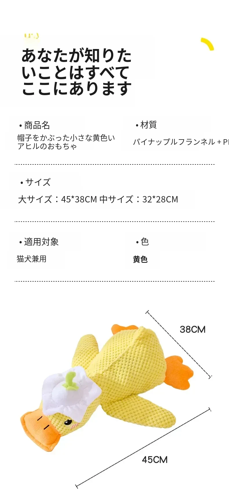 Max特大45CM 白帽⭐付きのアヒル【音が鳴るボタン+猫ミント入り】
