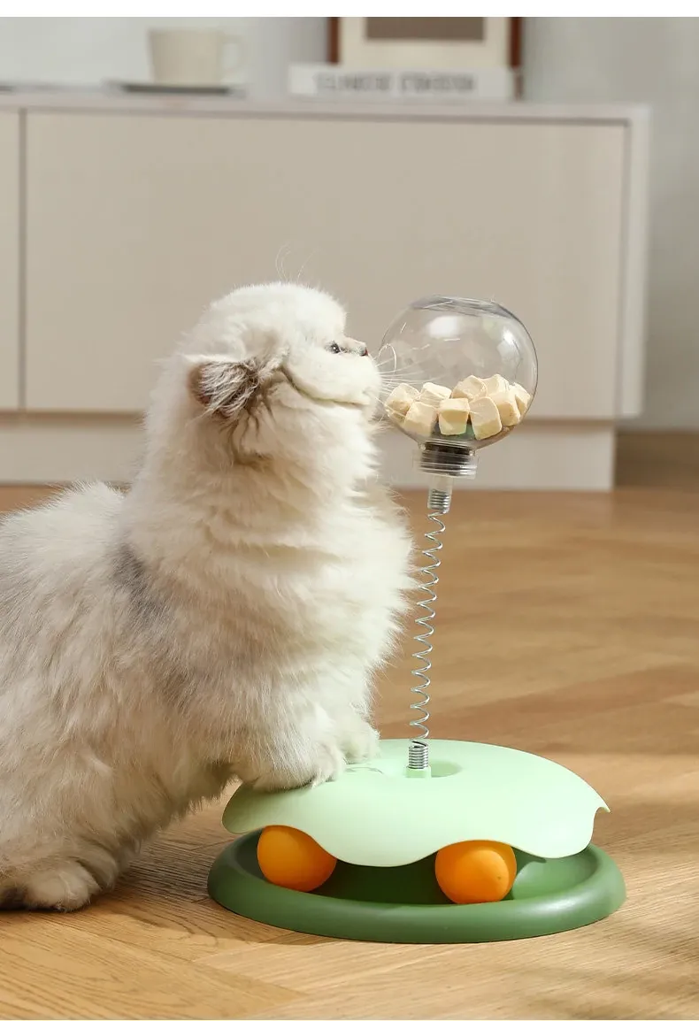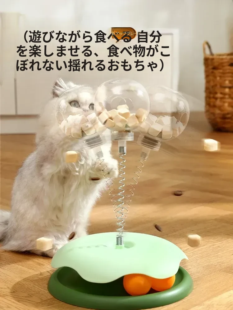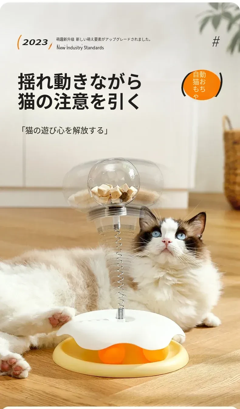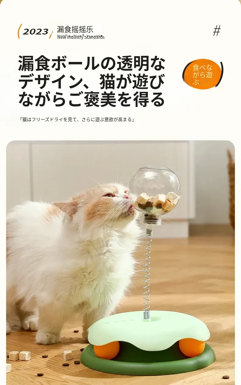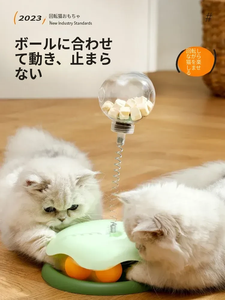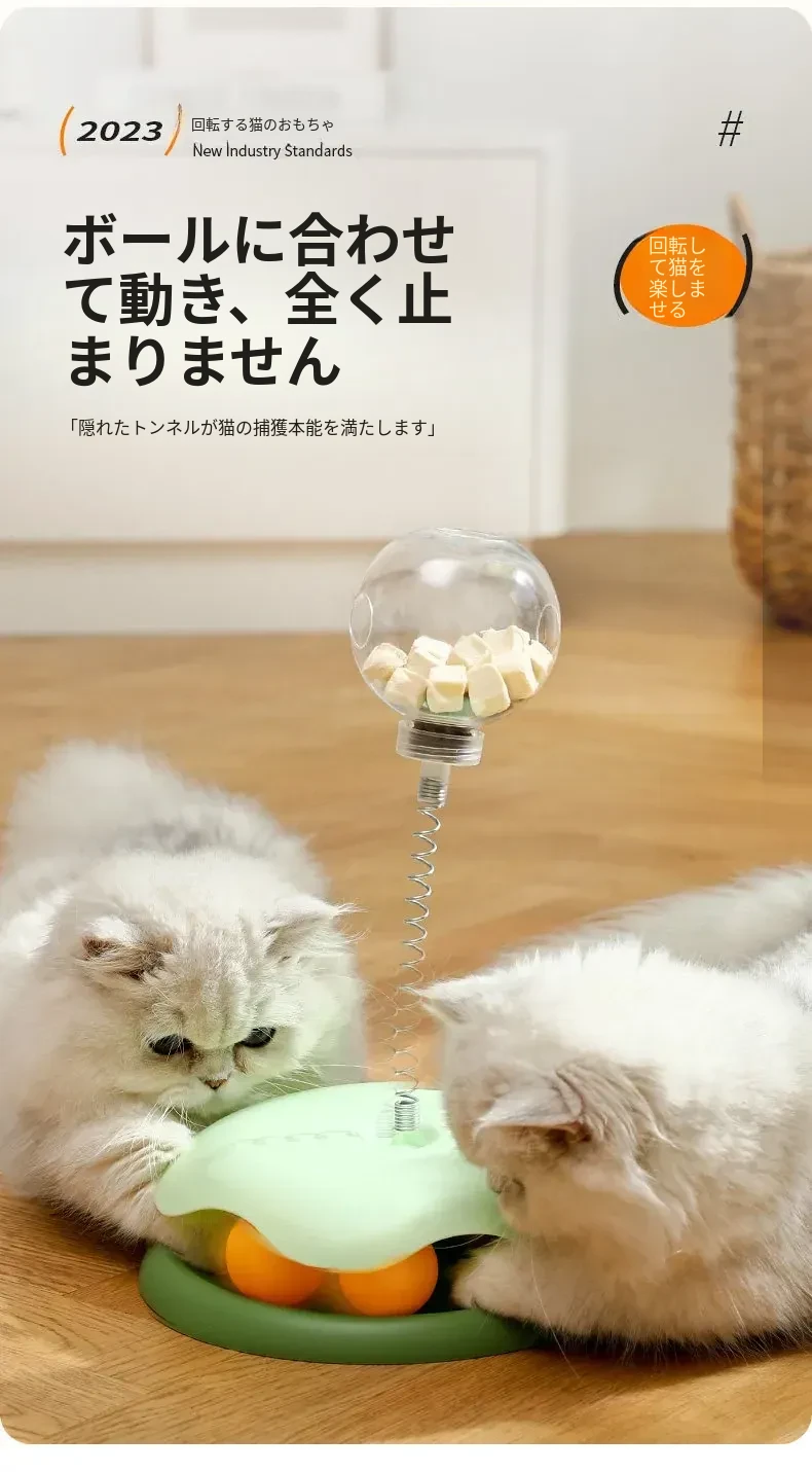 猫ちゃんが夢中になる!おやつがこぼれる楽しいおもちゃ、猫用おやつボール&回転式フィーダー。退屈解消に最適なペット用アイテム!