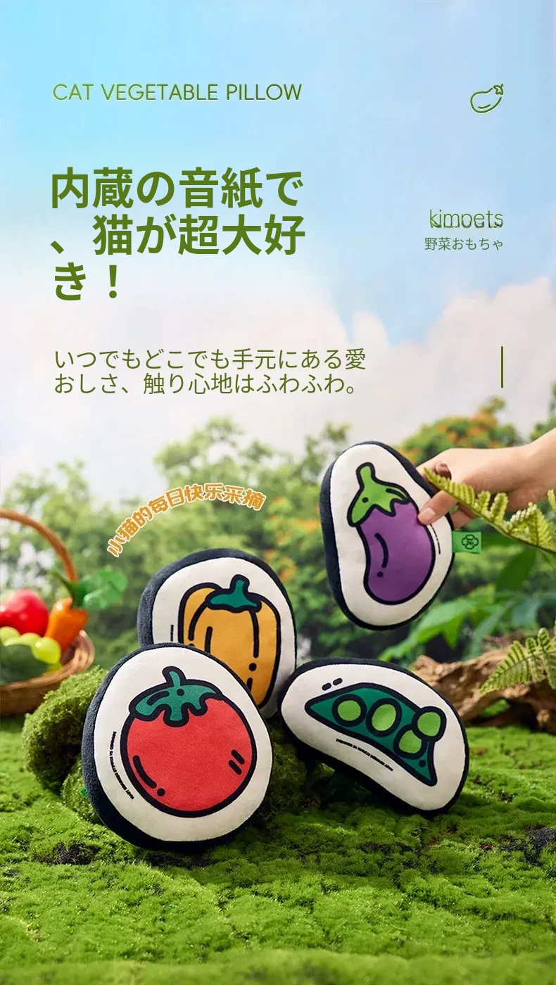 猫ちゃんも大喜び!噛んでも安心な柔らかい野菜型おもちゃ、音が鳴るので遊びながらストレス解消!小さな猫ちゃんのための楽しいペット用品、遊び心満載の猫じゃらし付き!
