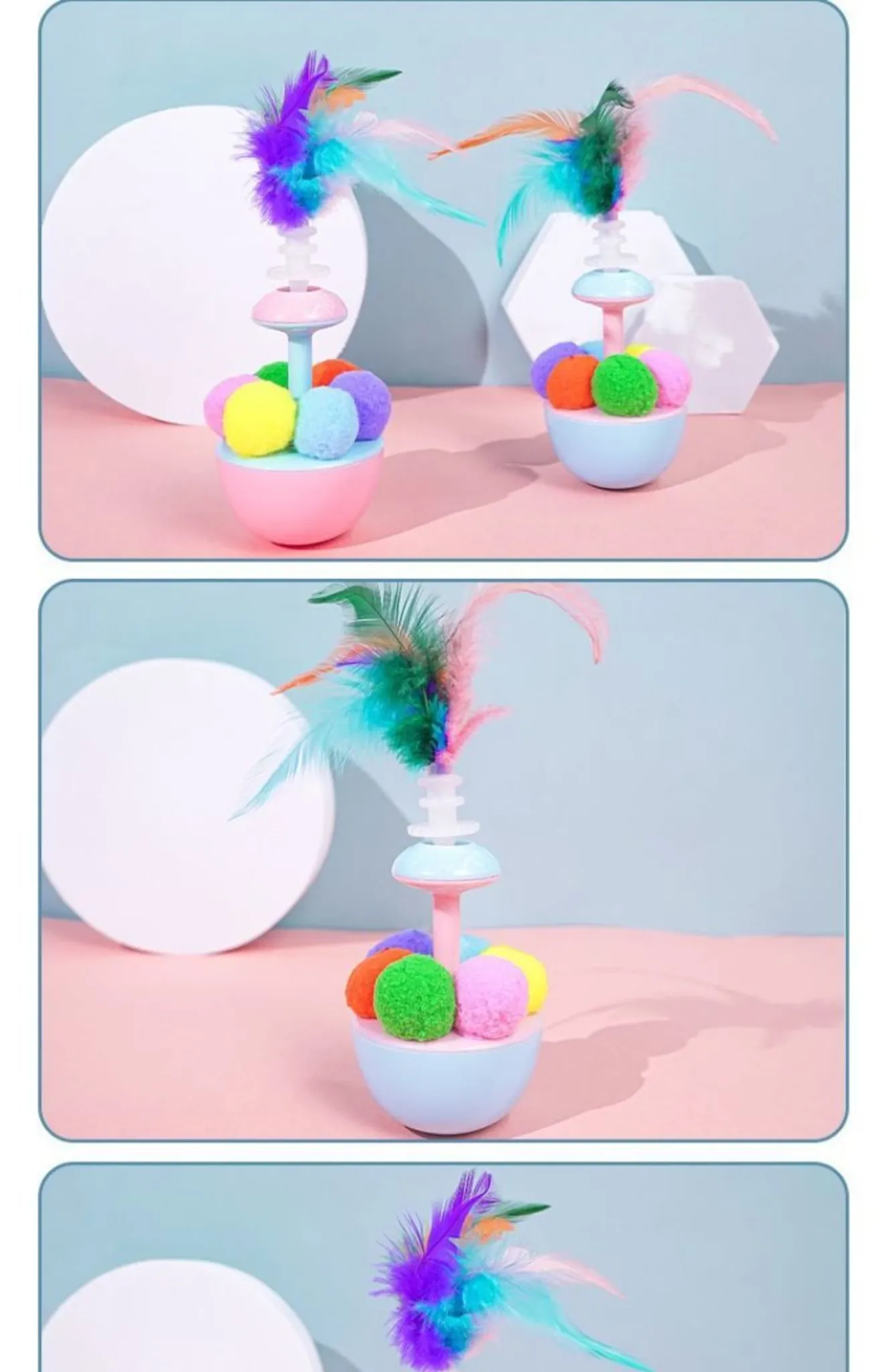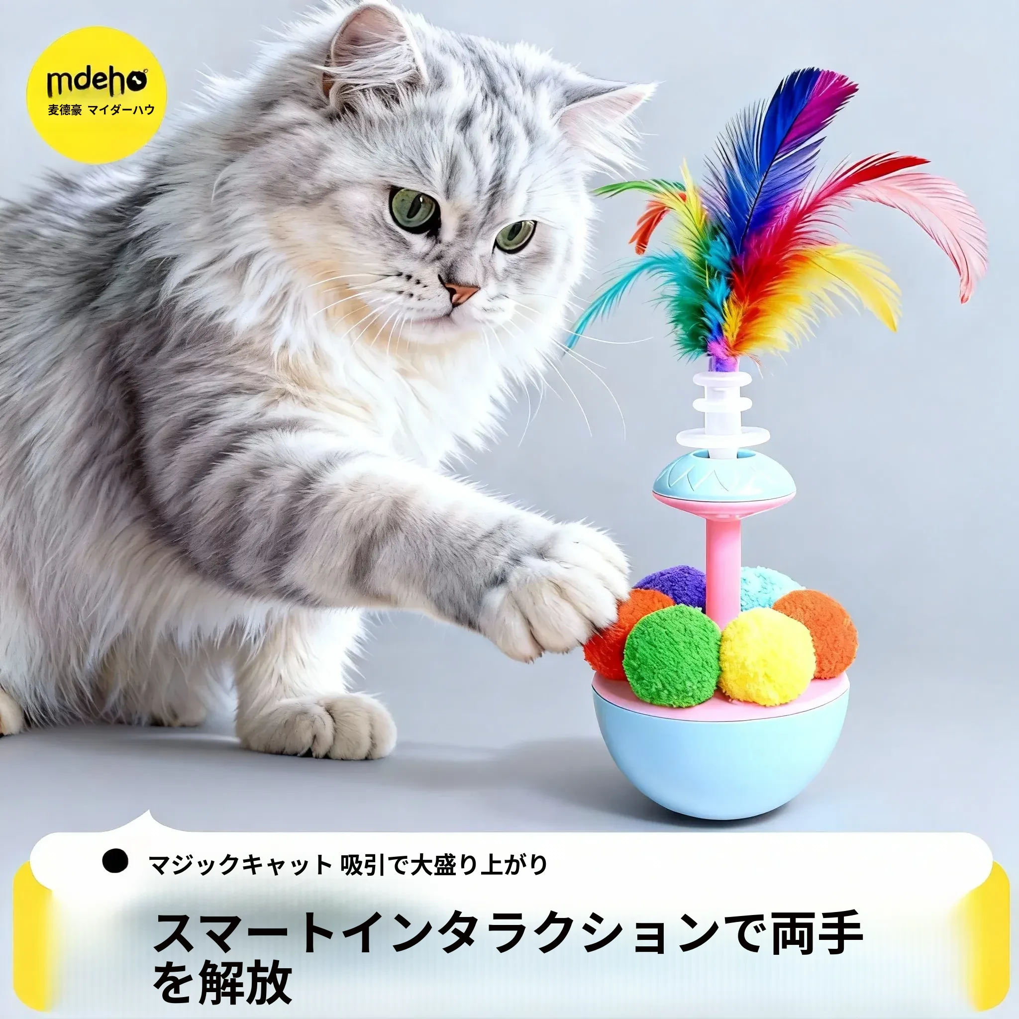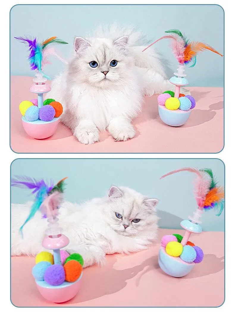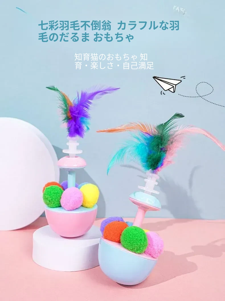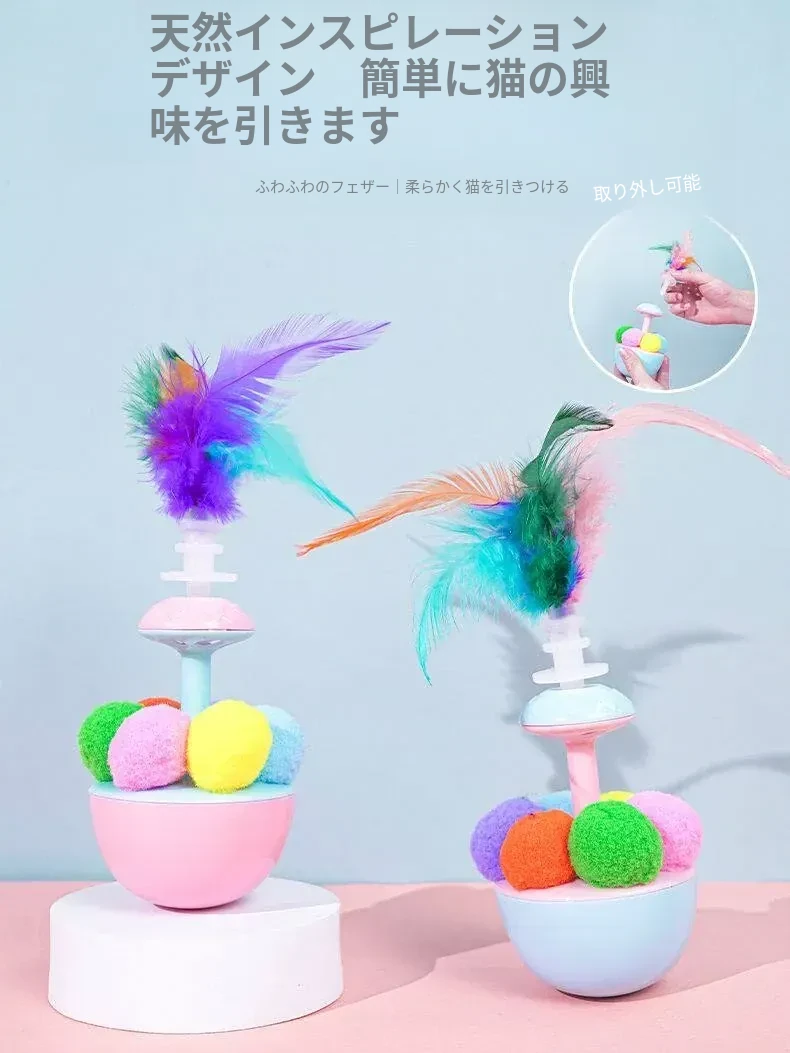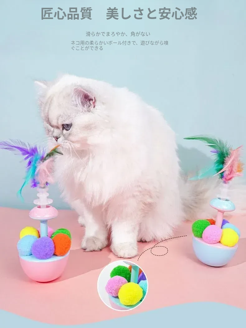 猫ちゃんが夢中になる!羽根付きボールで遊び尽くせる!倒れないおもちゃで、かじっても安心。猫ちゃんの退屈を吹き飛ばす、楽しいおもちゃセット!