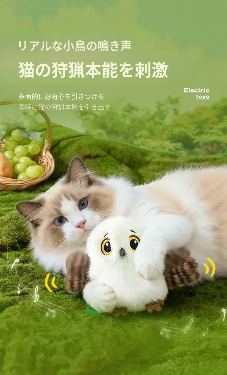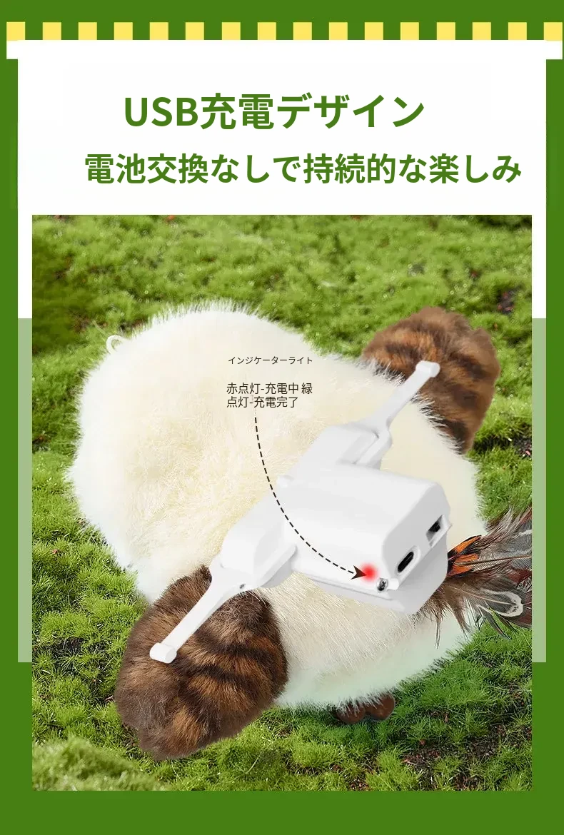 猫ちゃん大喜び!楽しい動きの小鳥型おもちゃ、自動で鳴くおしゃべり機能付き。遊びながら運動不足解消、猫ちゃんのストレスも解消!自分で遊べるから、退屈知らずの元気な日々を!