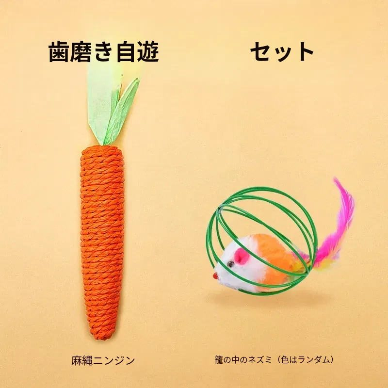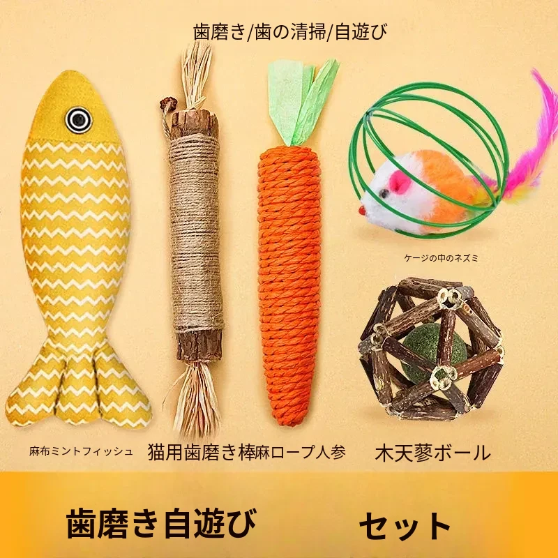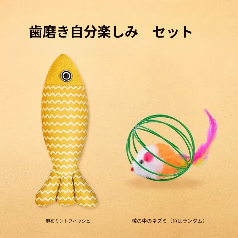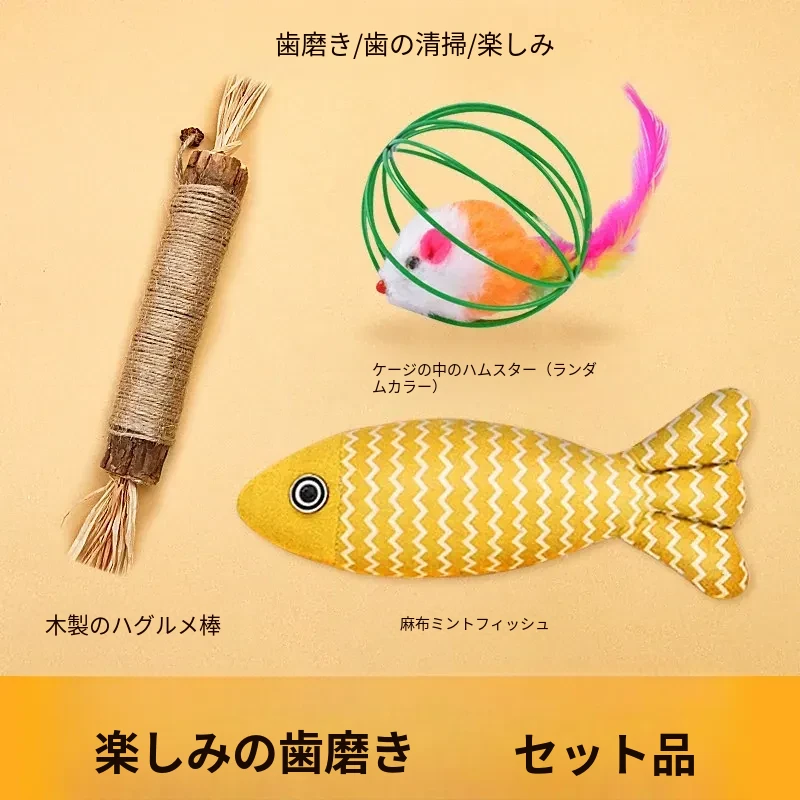 【3点セット】麻布の魚+木天蓼の歯ぎしり棒+ケージの中のネズミ