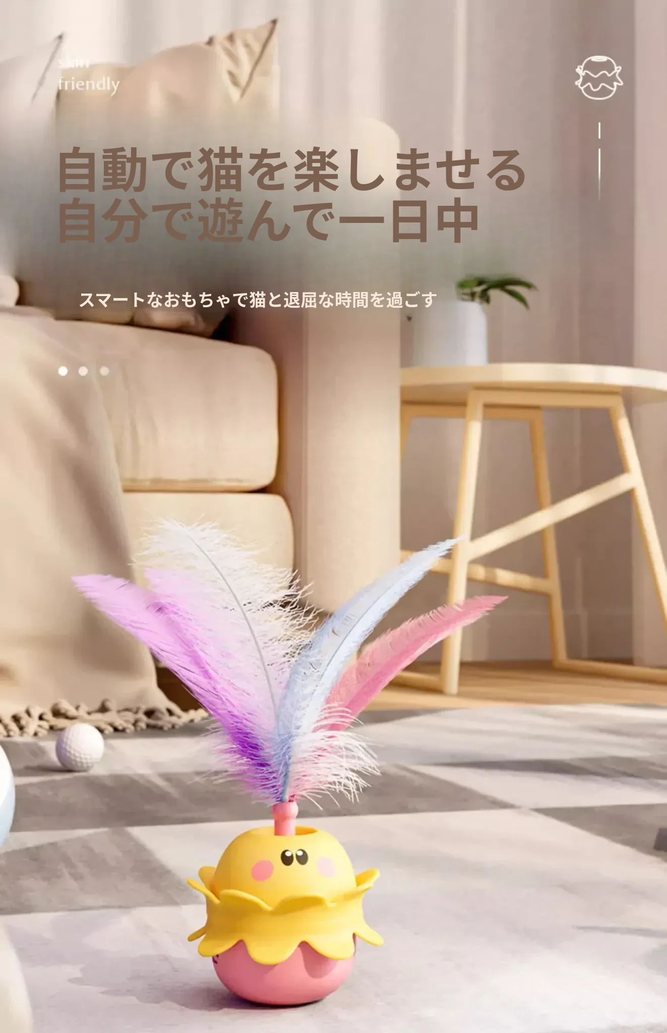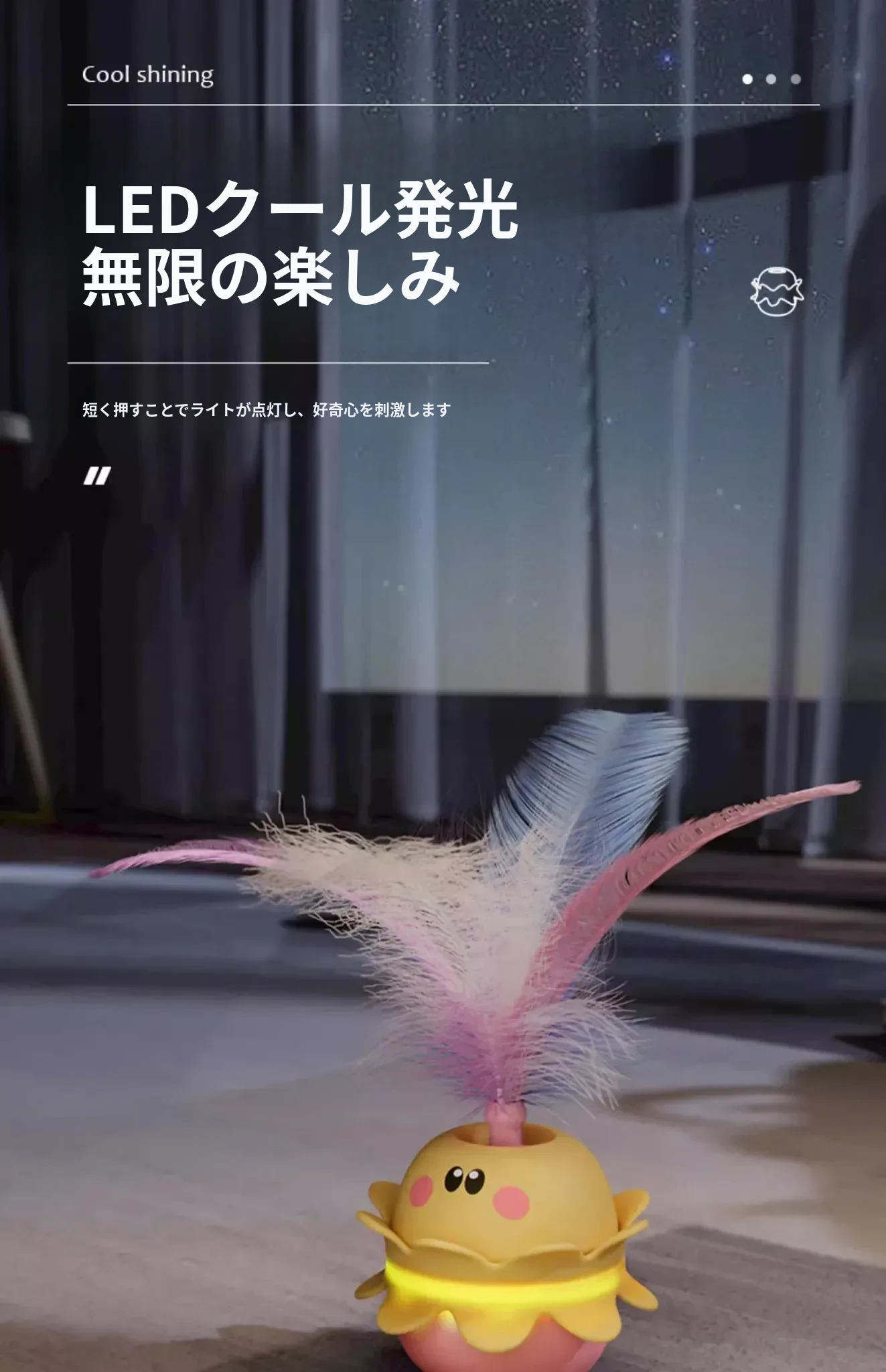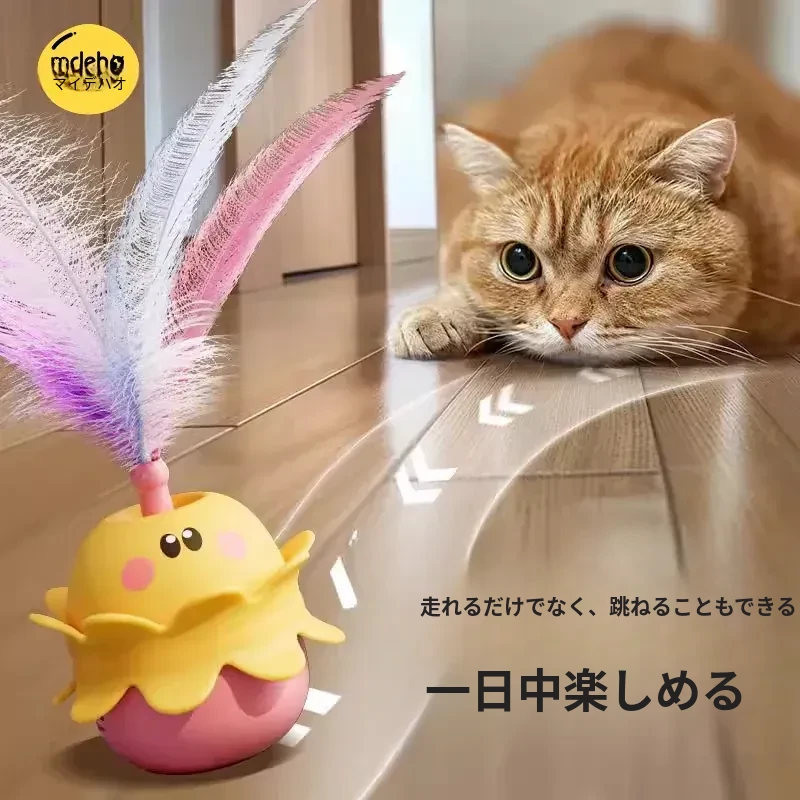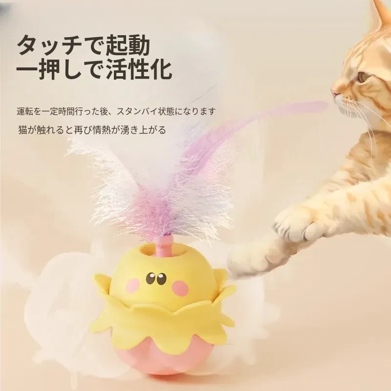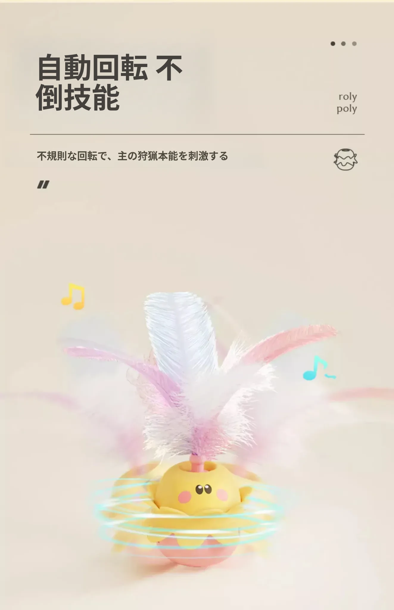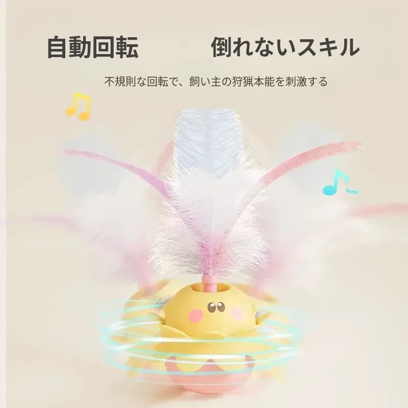 倒れない猫のおもちゃ!羽根付きおもちゃで猫ちゃんを夢中にさせる!自動で動き、音も出るから、猫のストレス解消や運動不足解消に最適!遊び疲れるまで楽しめる、猫のための必須アイテム!