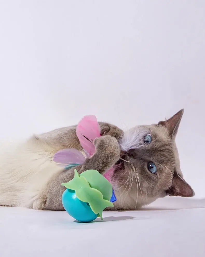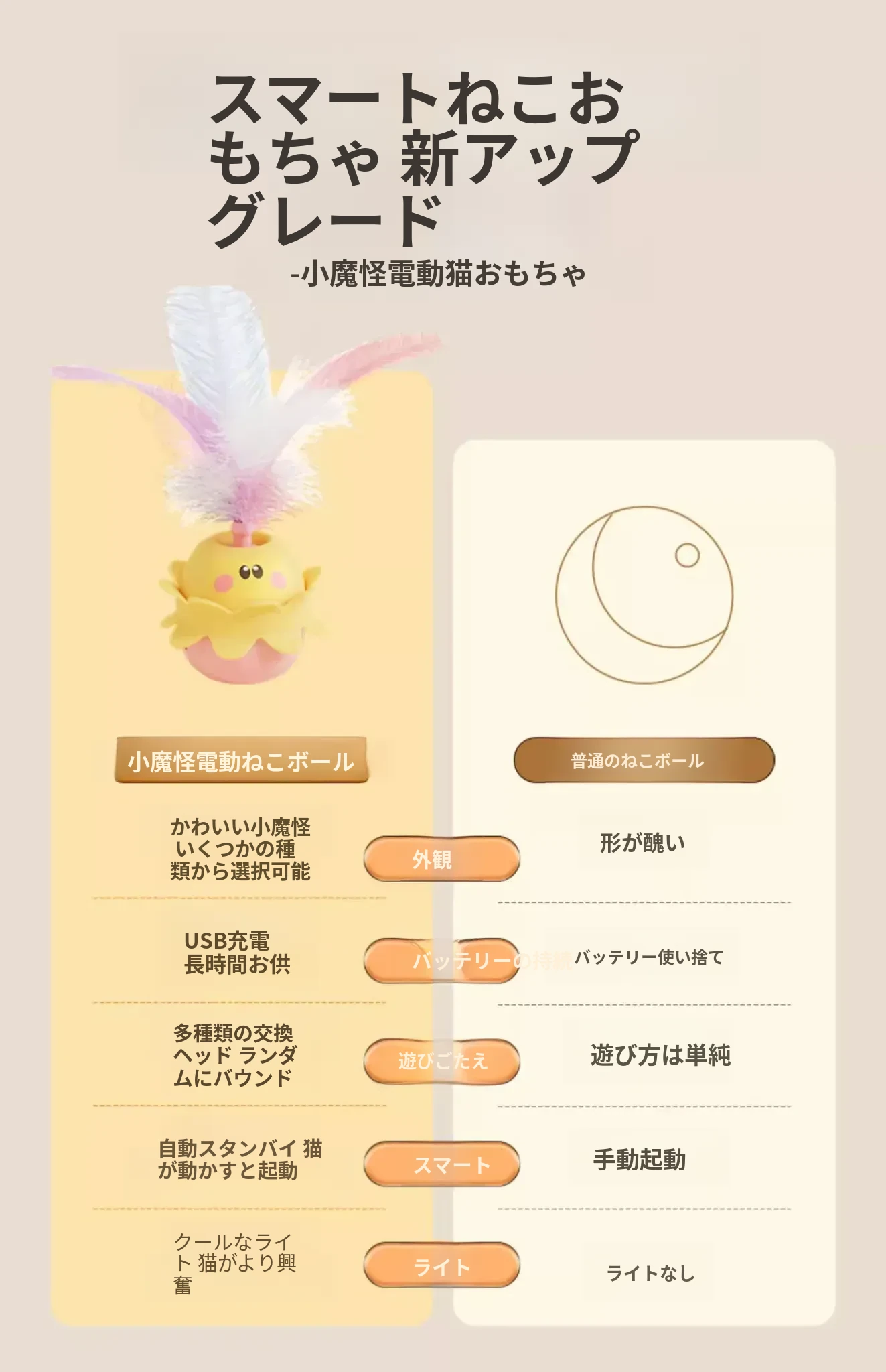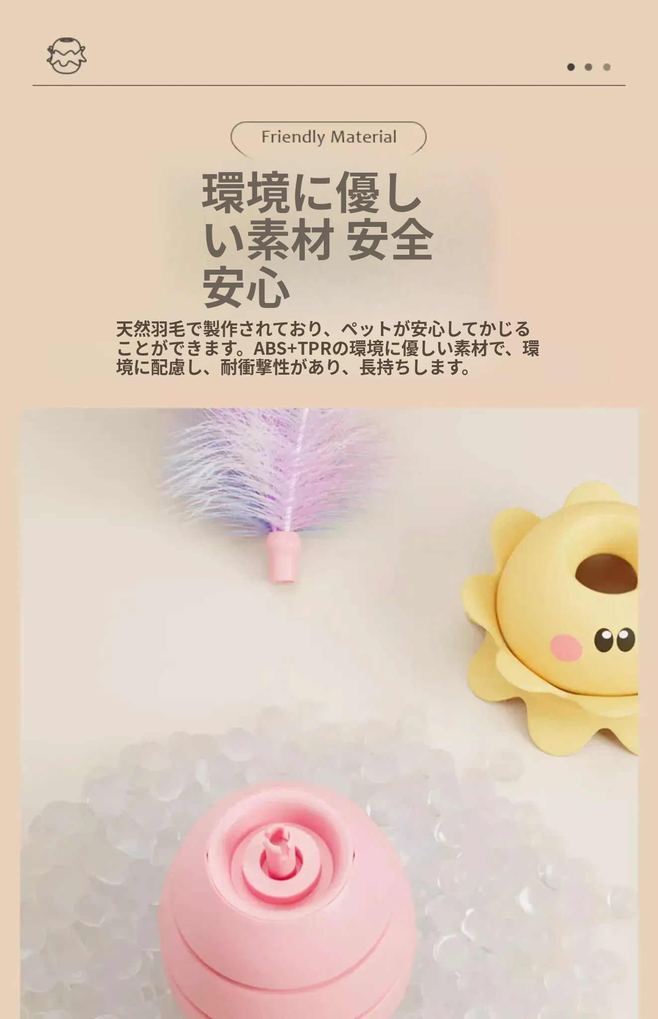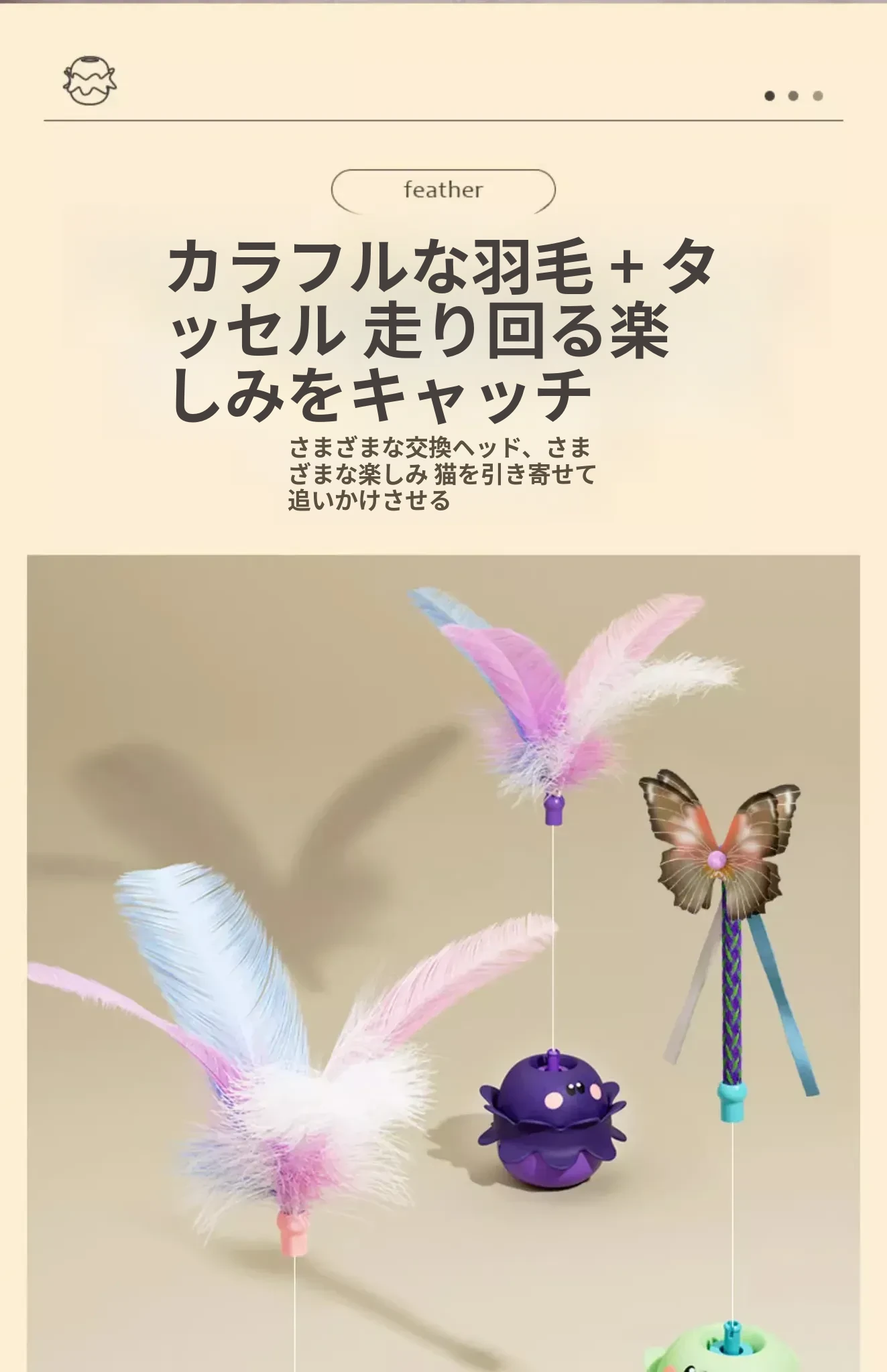 倒れない猫のおもちゃ!羽根付きおもちゃで猫ちゃんを夢中にさせる!自動で動き、音も出るから、猫のストレス解消や運動不足解消に最適!遊び疲れるまで楽しめる、猫のための必須アイテム!