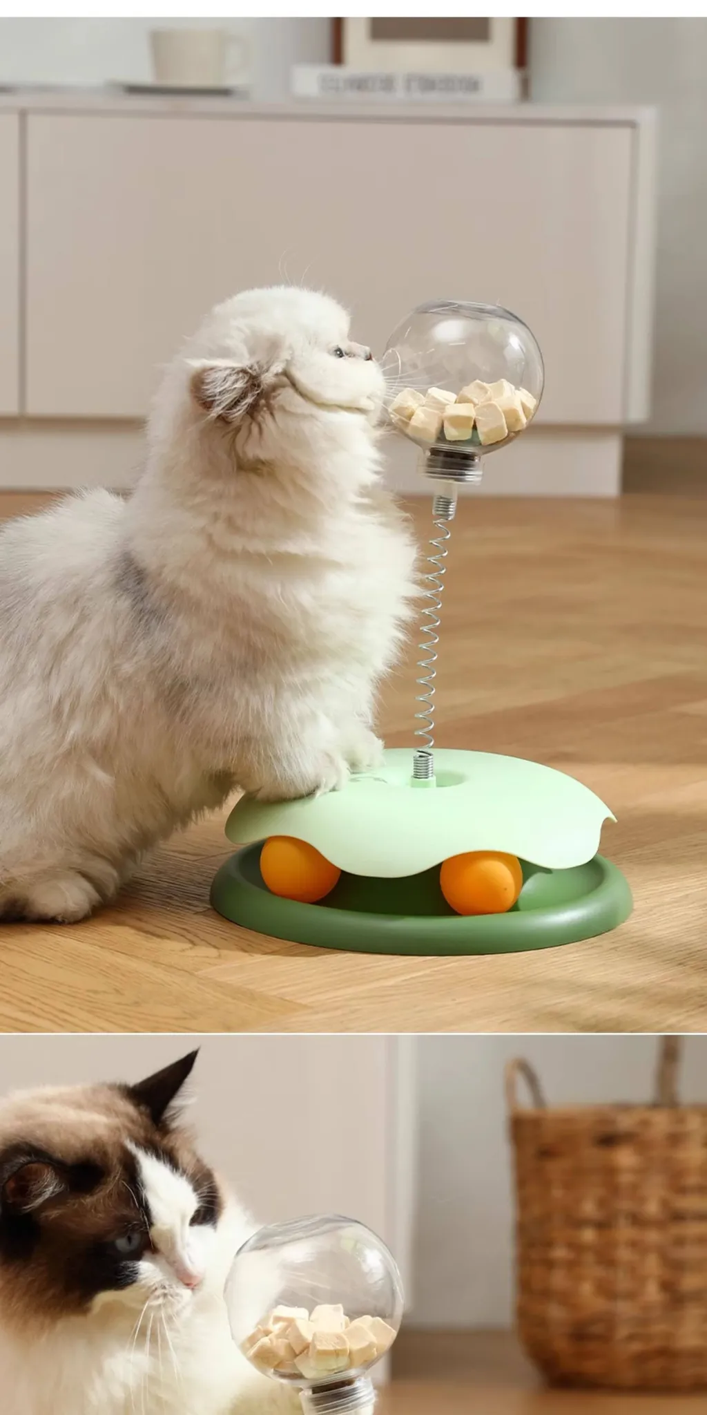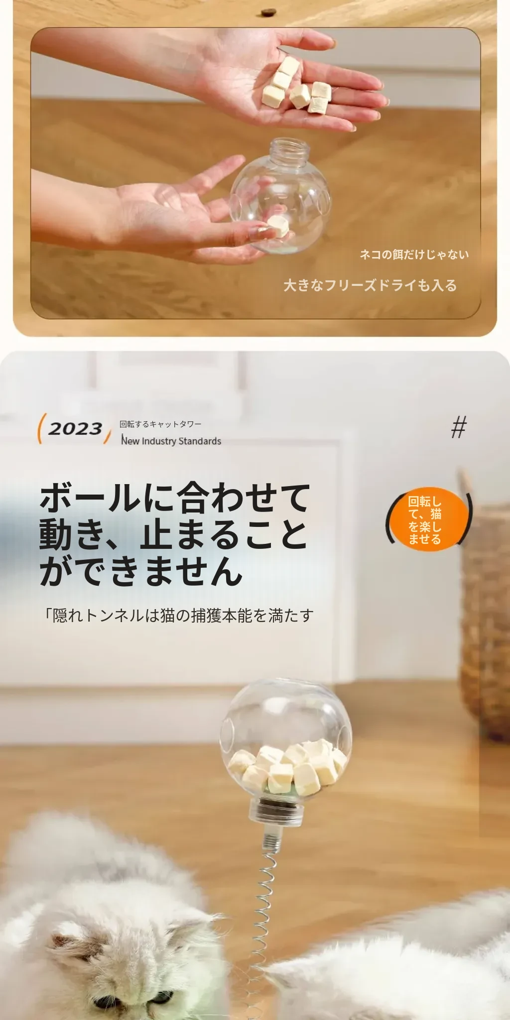 猫ちゃんのための楽しいおやつおもちゃ!食べ物が出る猫ボール&くるくる回る猫パネルで、猫ちゃんが自分で遊びながら楽しむことができます!おやつやフリーズドライのご褒美も入れられる、暇つぶしに最適なアイテムです!