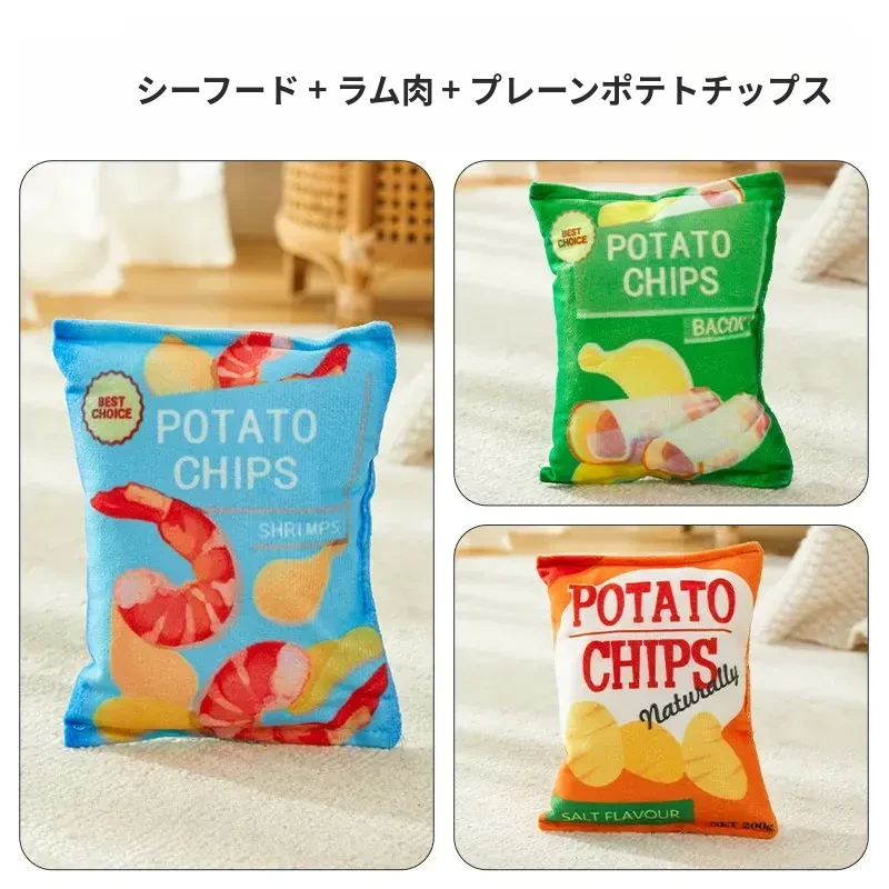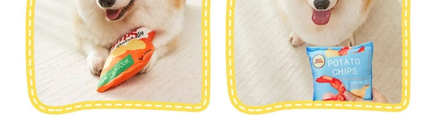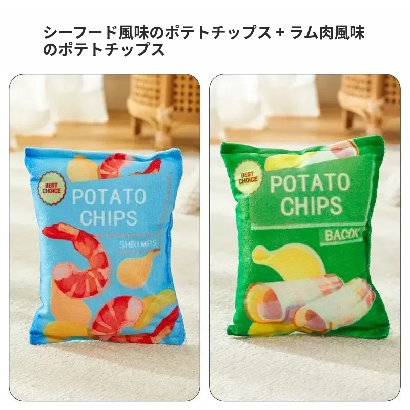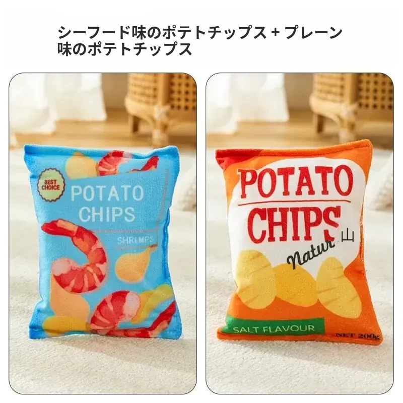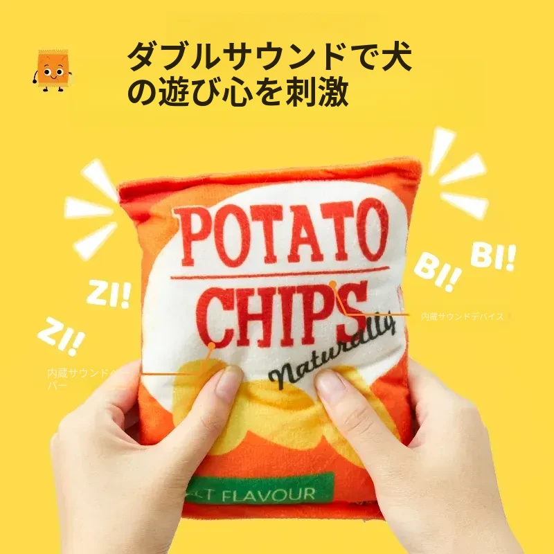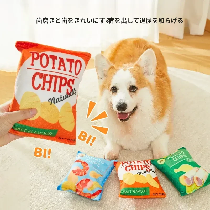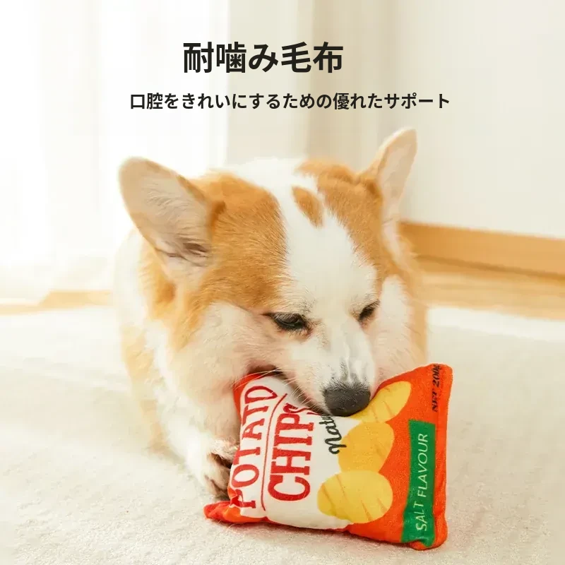 犬用おもちゃ 音が鳴るリアルポテトチップス 中小型犬向け コーギー・ポメラニアンに最適!噛む力を鍛えながらストレス解消!ふわふわのぬいぐるみで楽しい遊び時間を提供するペット用品です。