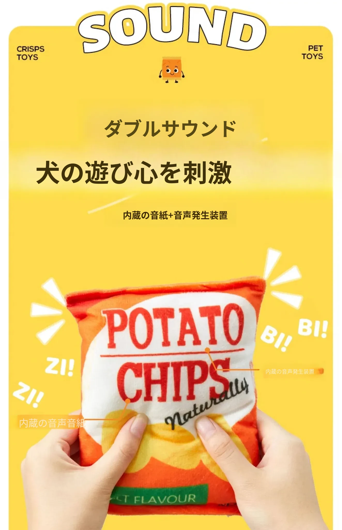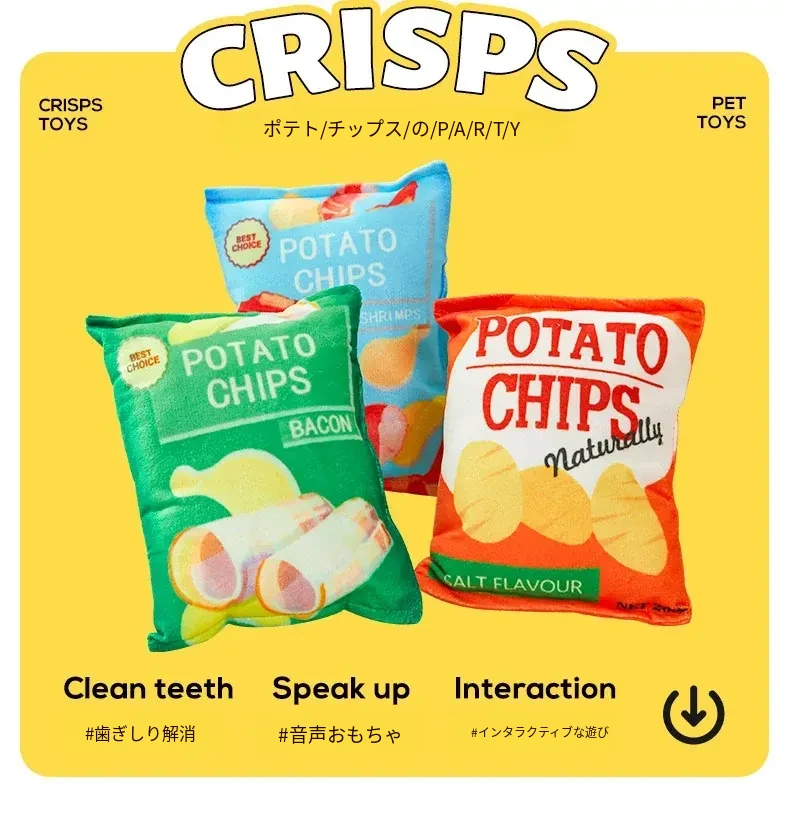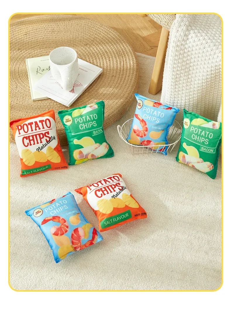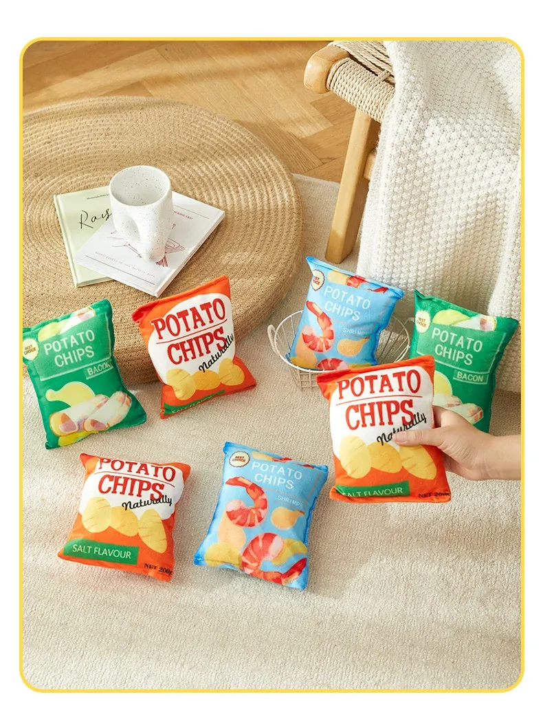犬用おもちゃ 音が鳴るリアルポテトチップス 中小型犬向け コーギー・ポメラニアンに最適!噛む力を鍛えながらストレス解消!ふわふわのぬいぐるみで楽しい遊び時間を提供するペット用品です。