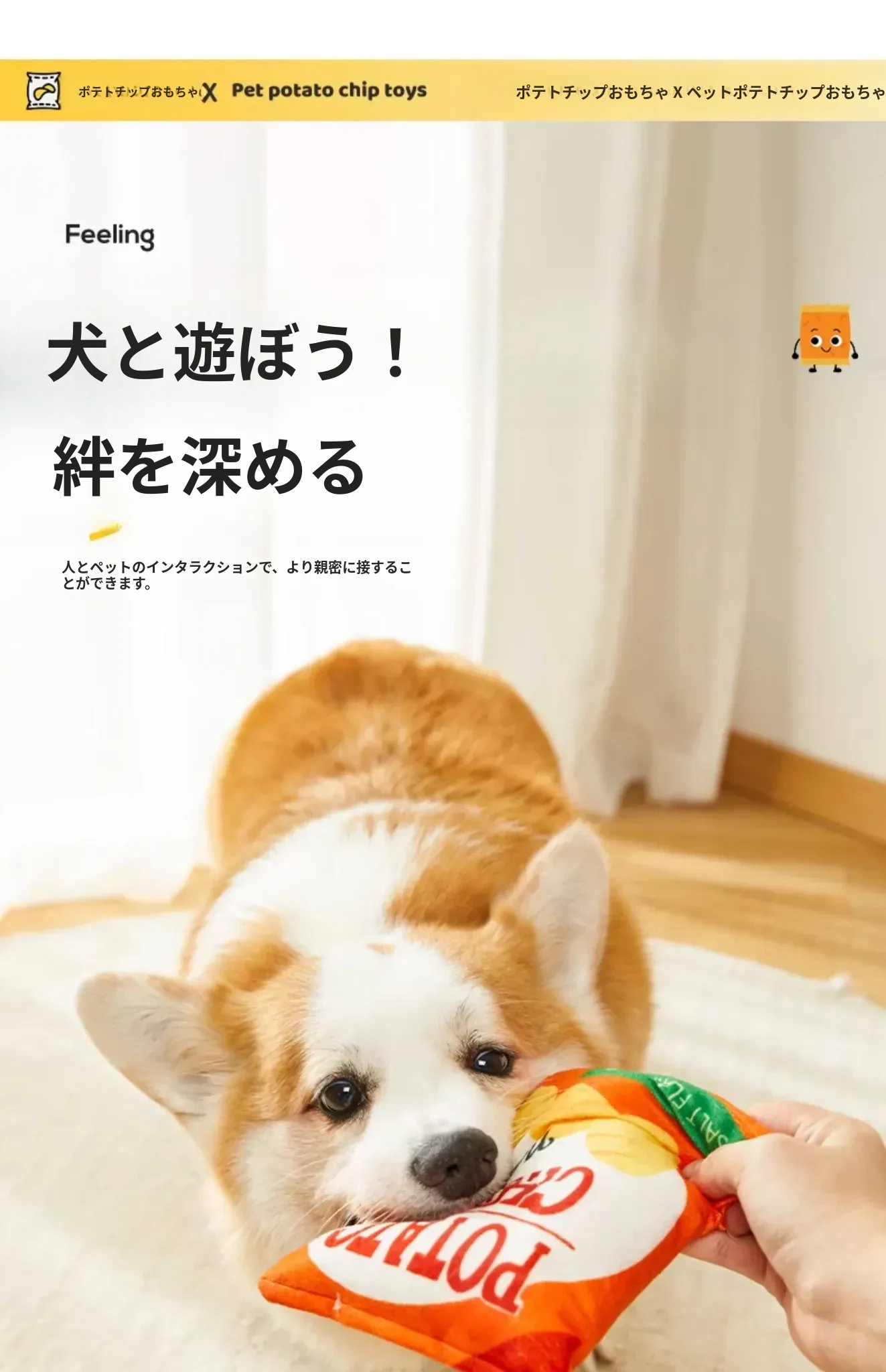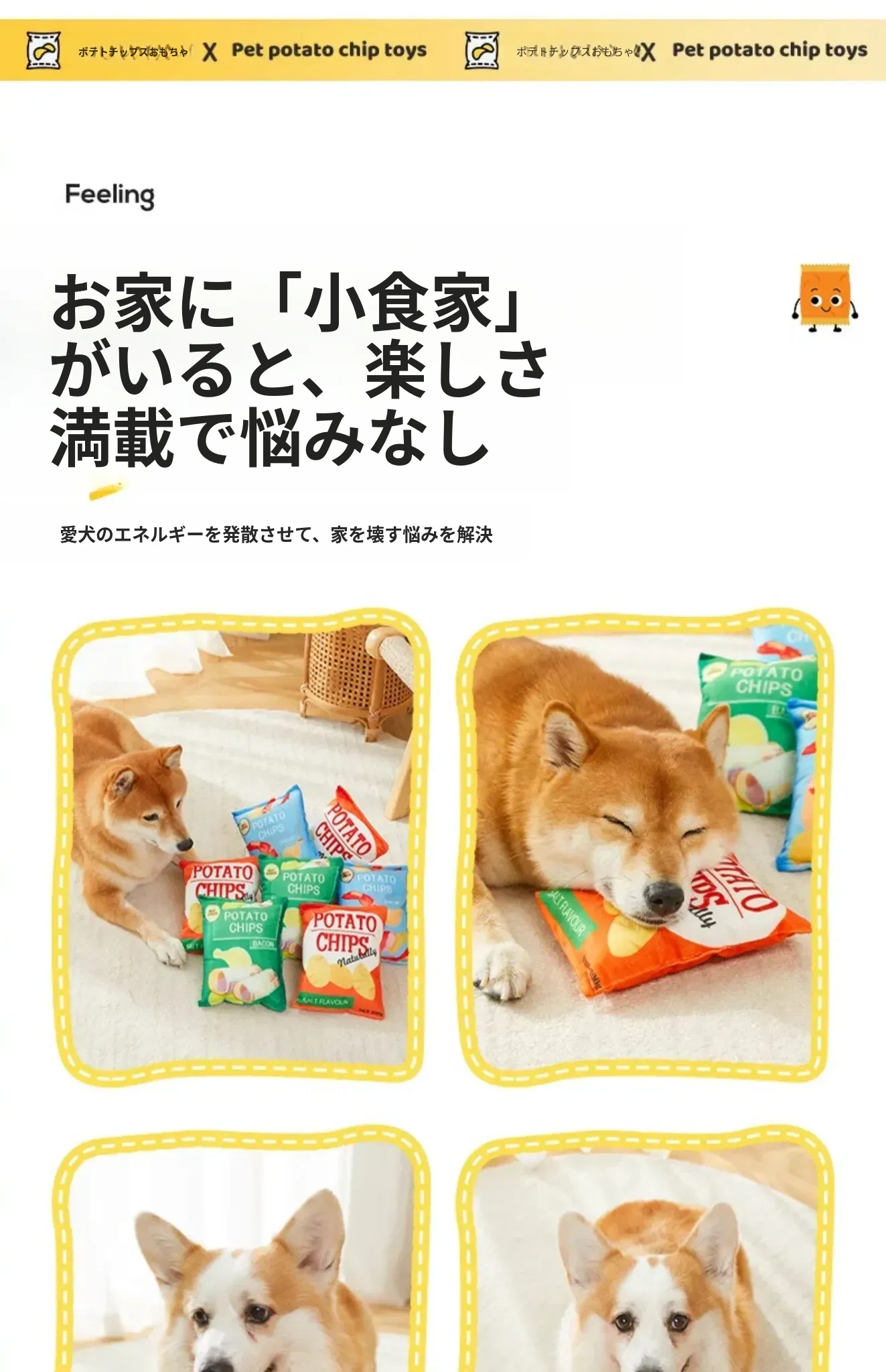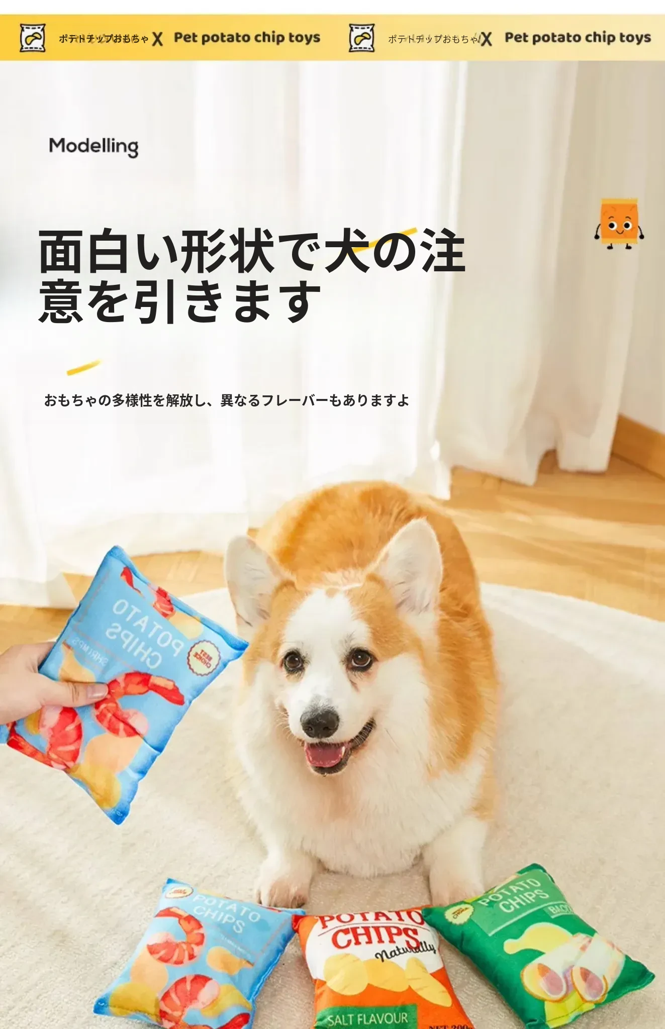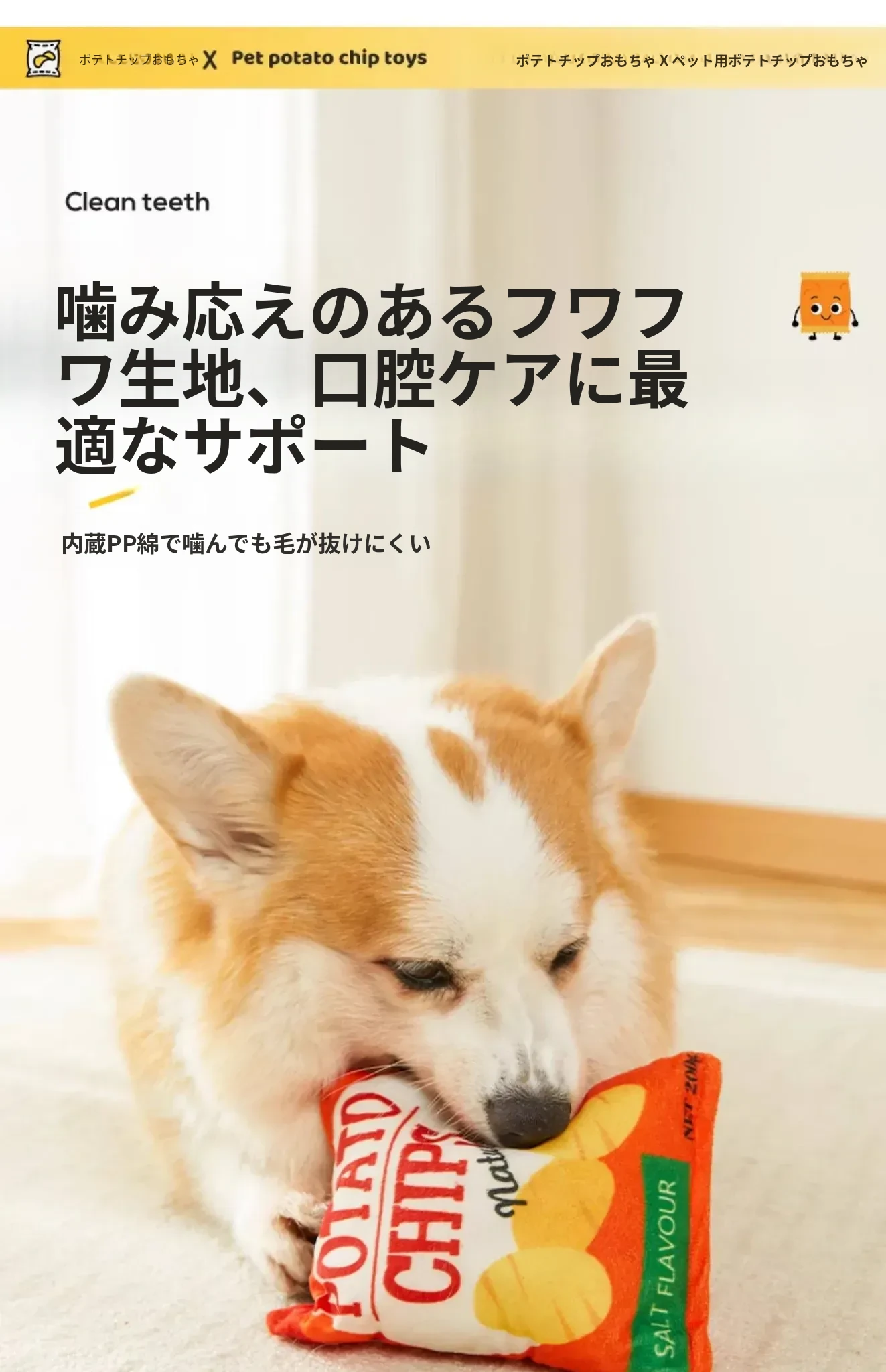 犬用おもちゃ 音が鳴るリアルポテトチップス 中小型犬向け コーギー・ポメラニアンに最適!噛む力を鍛えながらストレス解消!ふわふわのぬいぐるみで楽しい遊び時間を提供するペット用品です。
