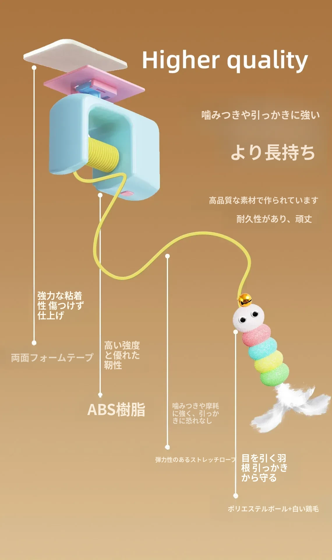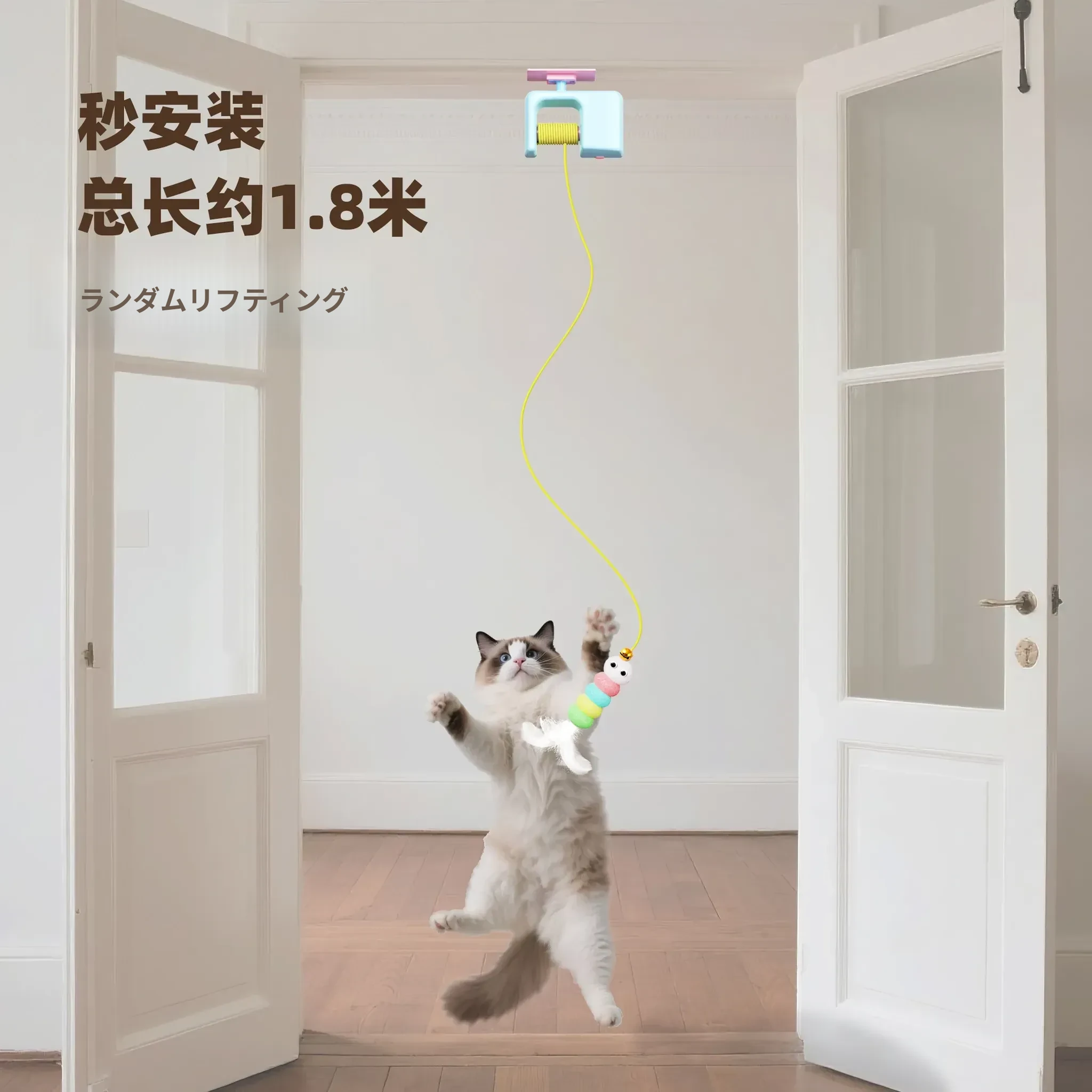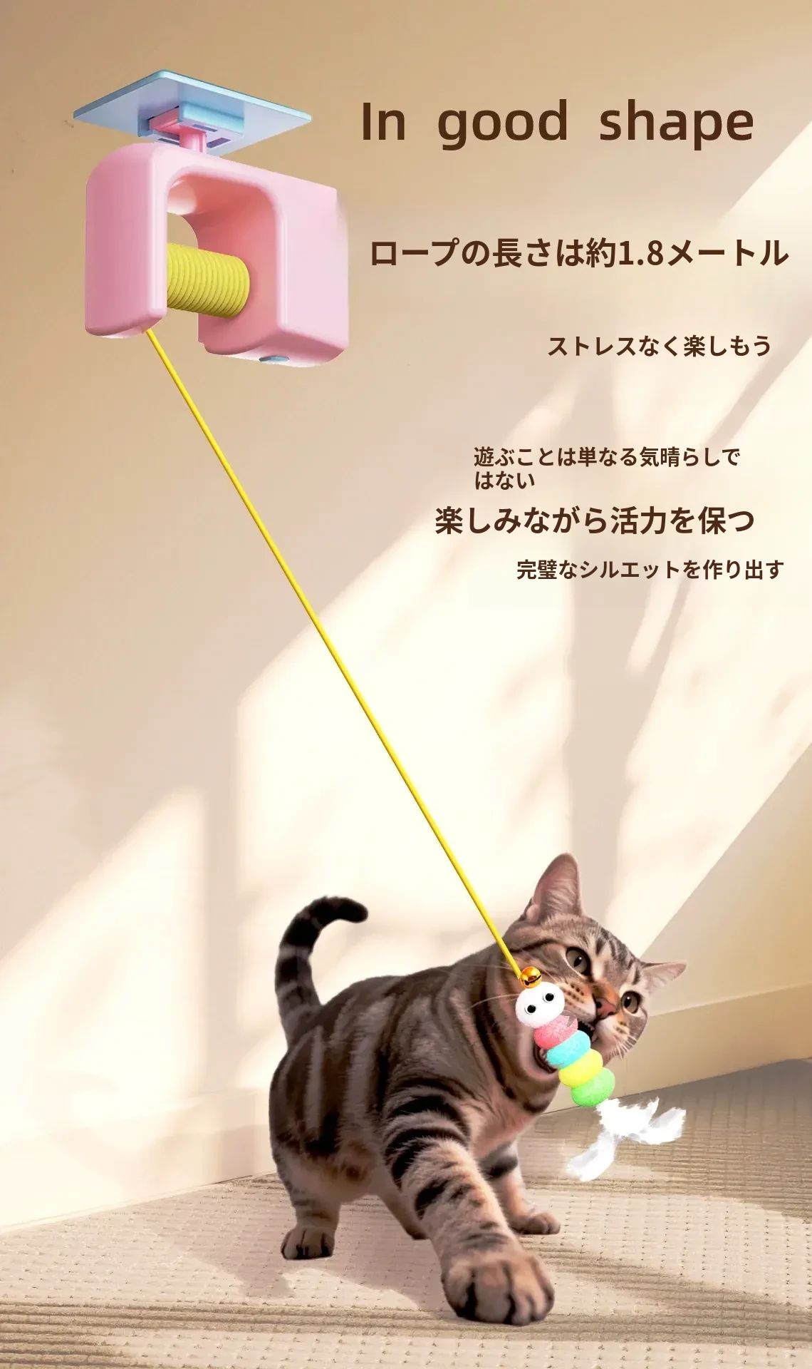 電動キャットボールおもちゃ!伸縮自在の自動昇降機能付き、ドアに掛けるだけで猫ちゃんが夢中になる!退屈知らずの知能玩具で、愛猫との楽しい時間をお届けします!