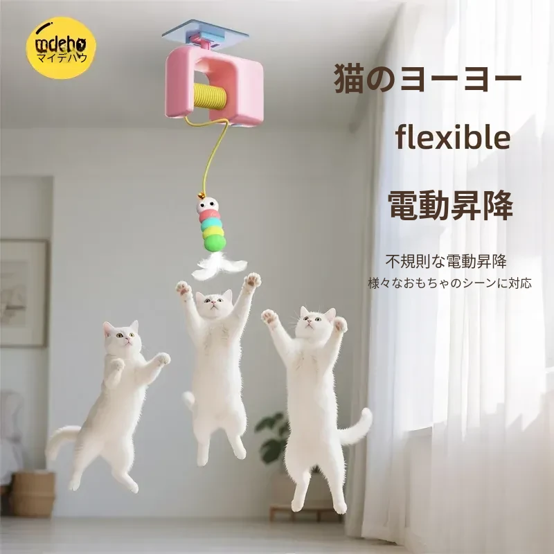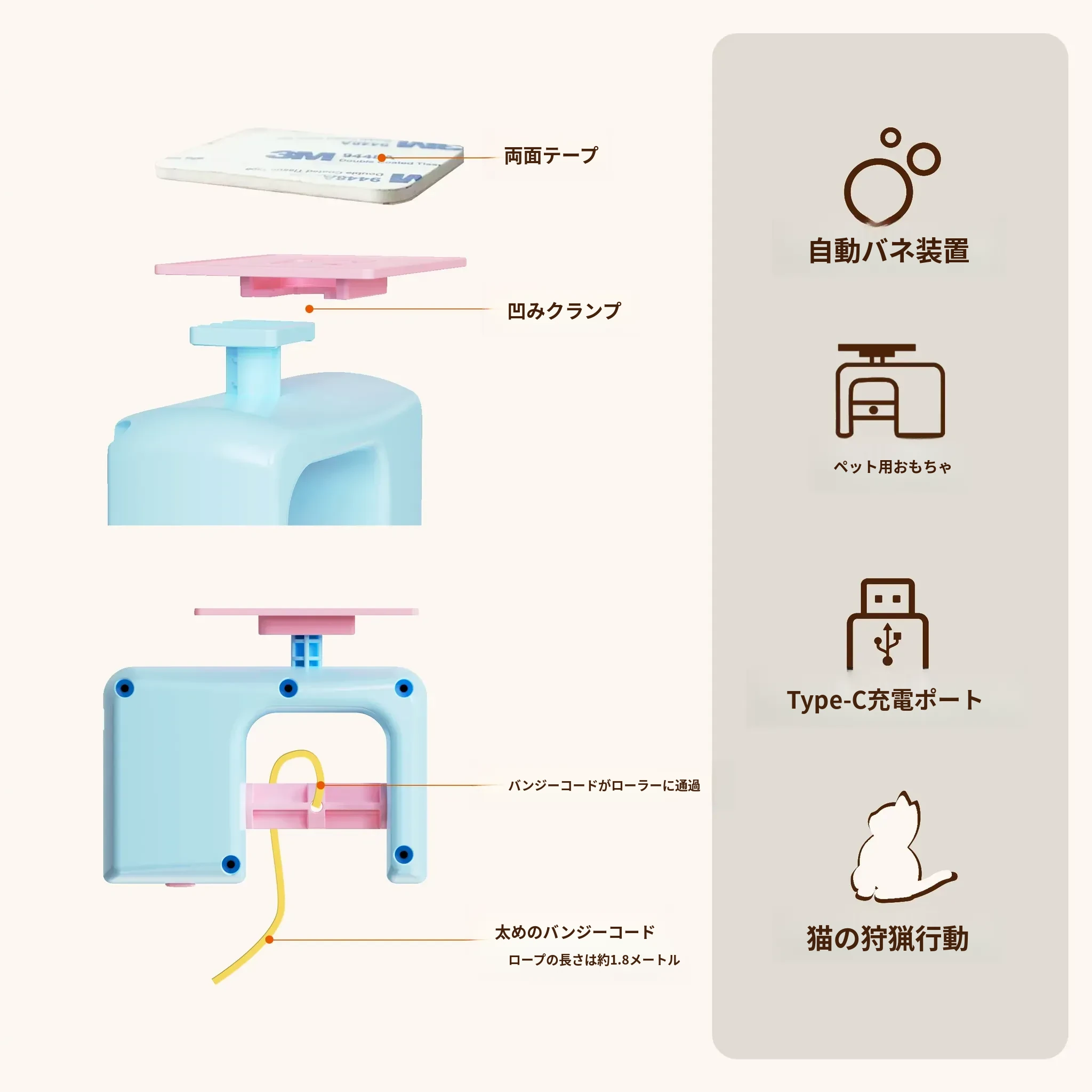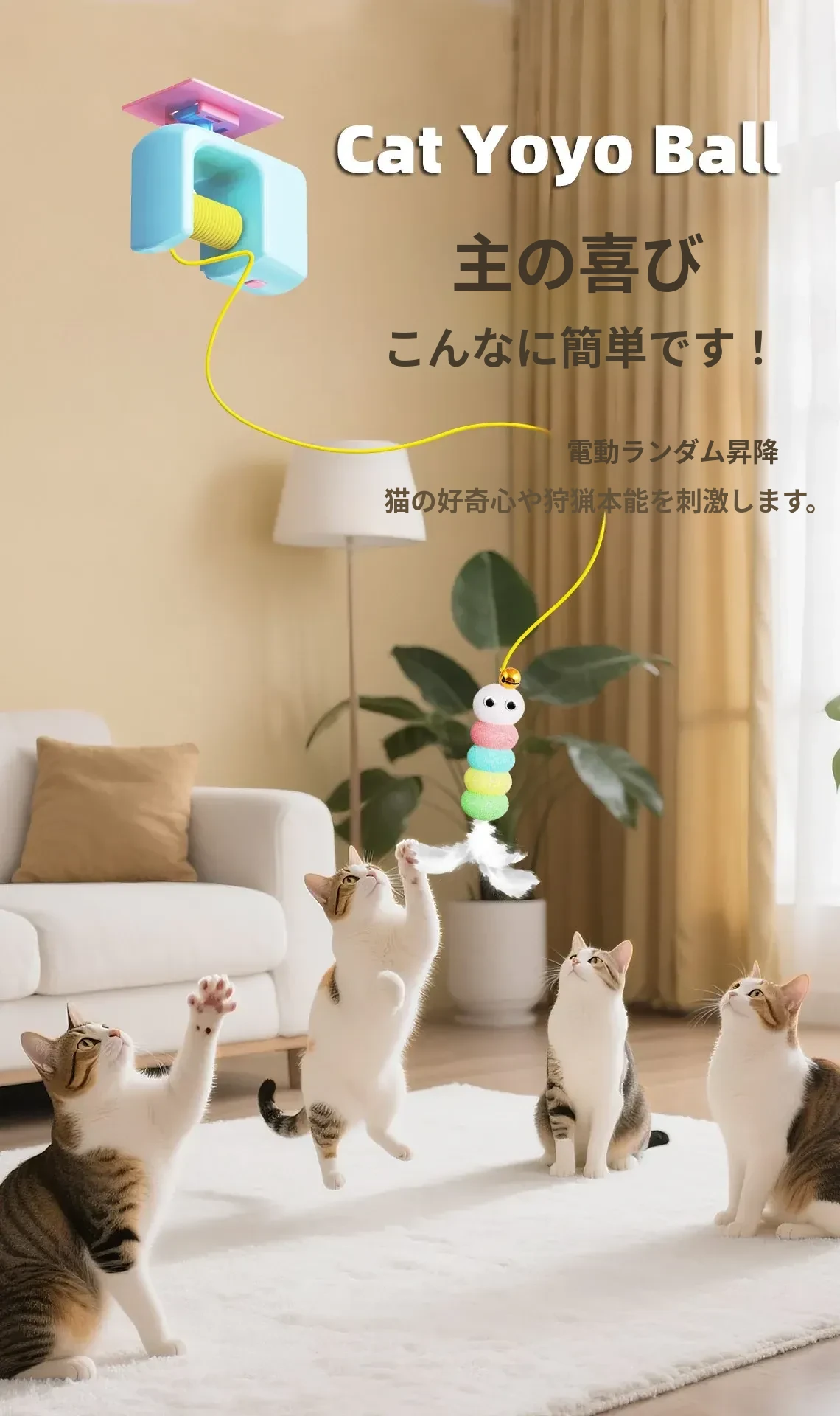 電動キャットボールおもちゃ!伸縮自在の自動昇降機能付き、ドアに掛けるだけで猫ちゃんが夢中になる!退屈知らずの知能玩具で、愛猫との楽しい時間をお届けします!