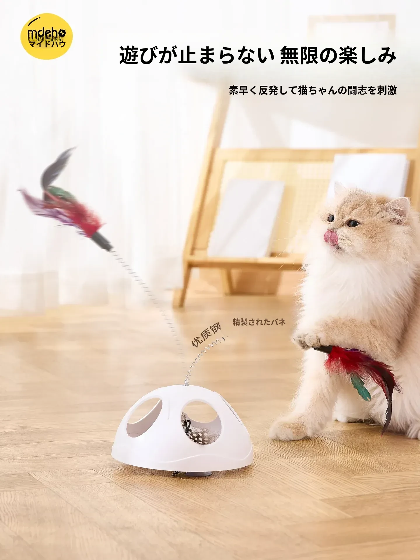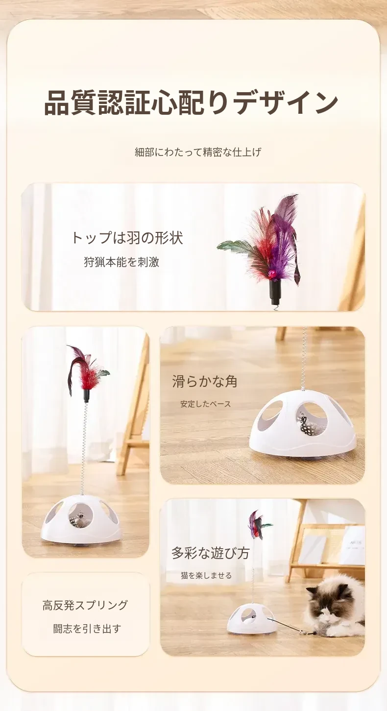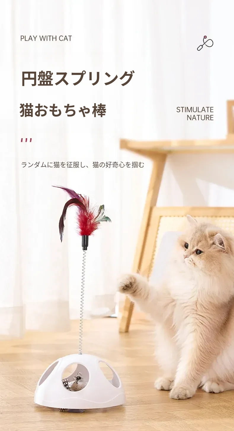 猫ちゃんを夢中にさせる!羽毛付き猫じゃらし、吸盤&バネ付きで楽しい遊びを実現。退屈知らずのペットアイテム、子猫から成猫まで大満足の必需品!