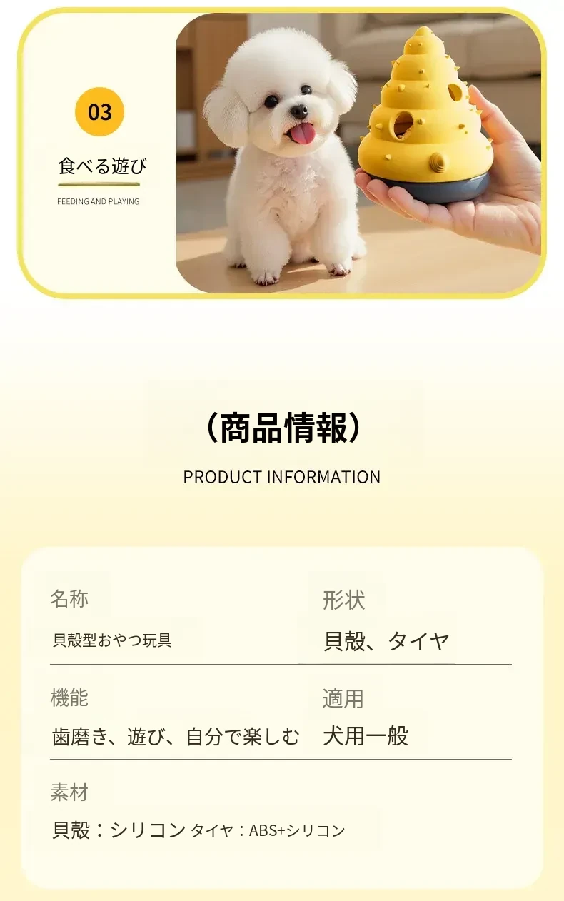 犬のための隠し食べ物おもちゃ!貝殻型の知育玩具で、嗅覚を刺激しながら楽しく遊べる!小型犬にぴったりのペット用フードディスペンサーで、食事の時間をもっと楽しく!