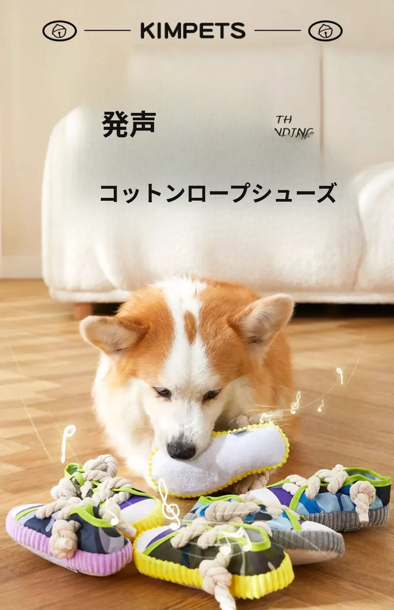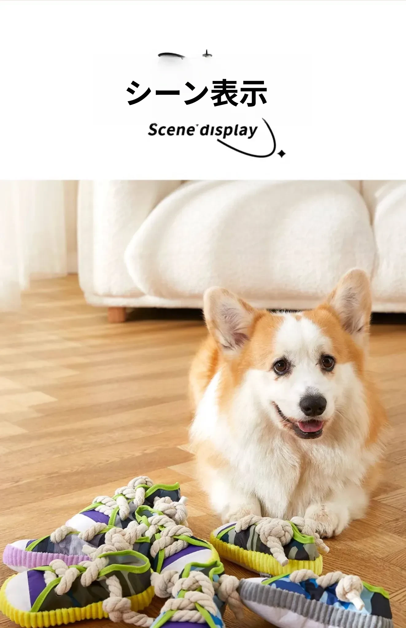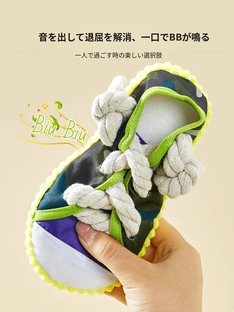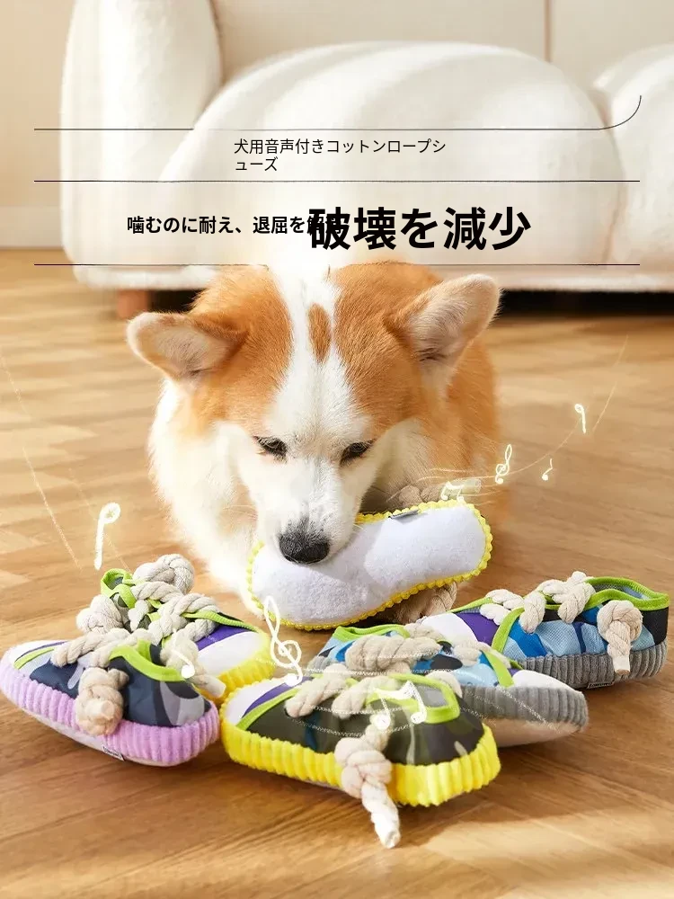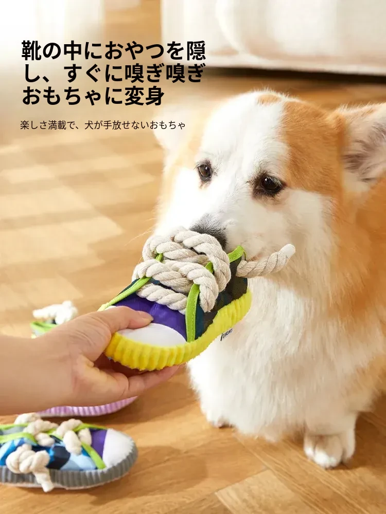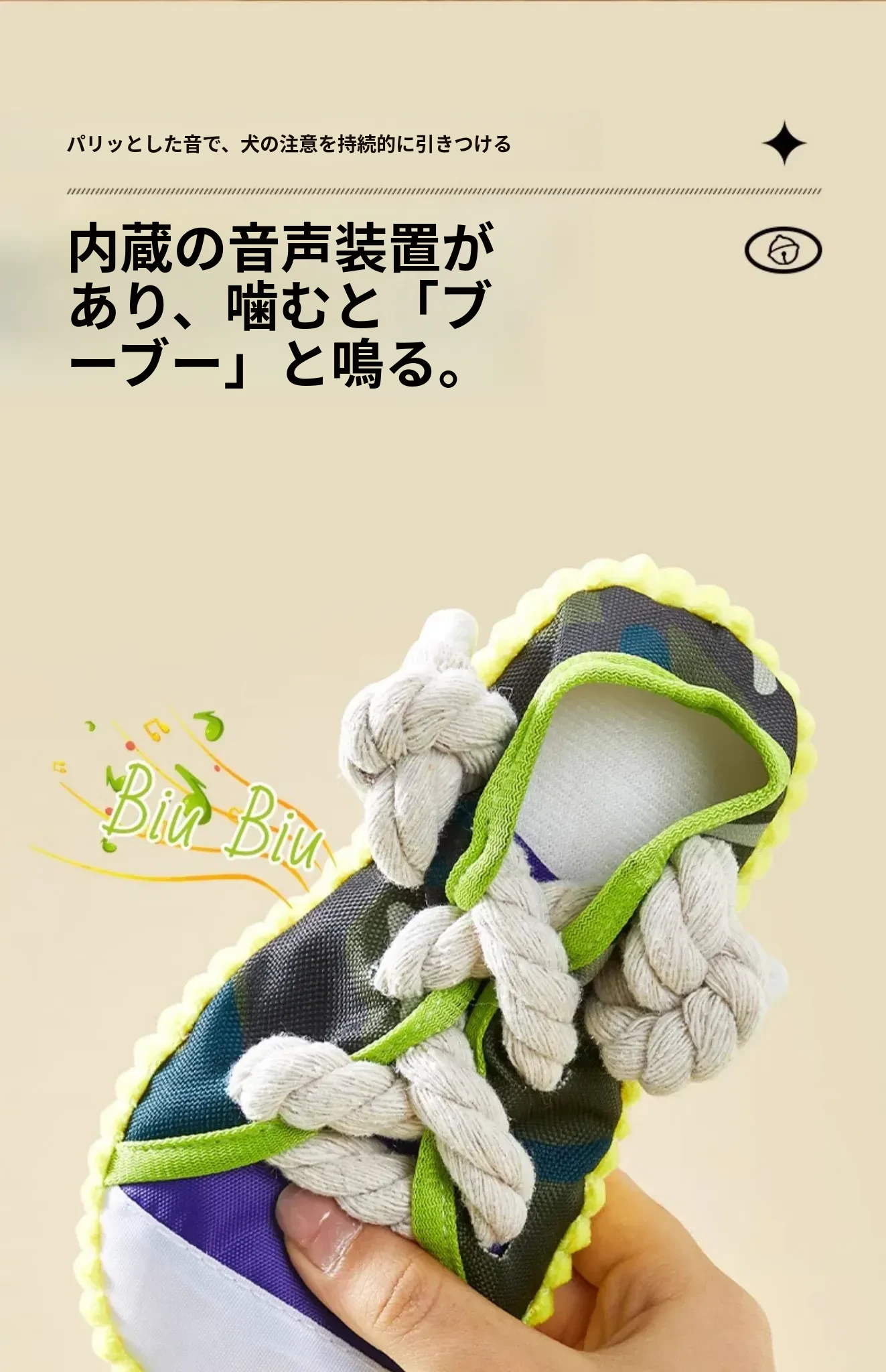 犬用おもちゃ 音が鳴るスリッパ 自分で楽しめるストレス解消アイテム 耐久性抜群の噛みごたえ ペット用ロープ付き体力消耗おもちゃ 小型犬必見!