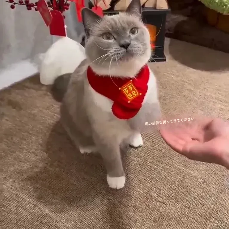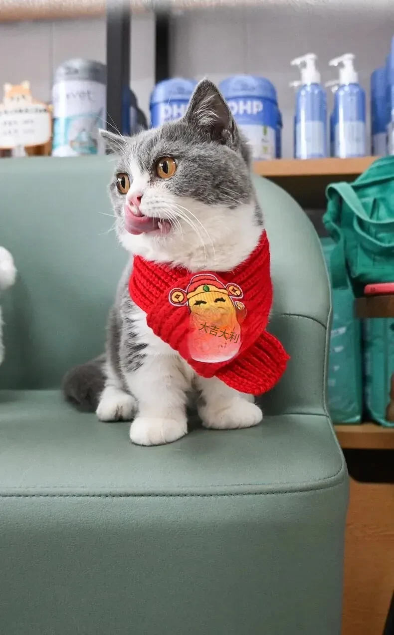新年を迎える猫ちゃんのための赤い暖かいスカーフ!中国風デザインのペット用ネックウォーマー、愛らしい犬用エプロンとしても使える必見の新年装飾品!おしゃれで暖かく、冬の寒さをしっかりガードします!