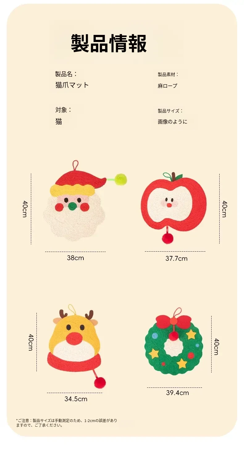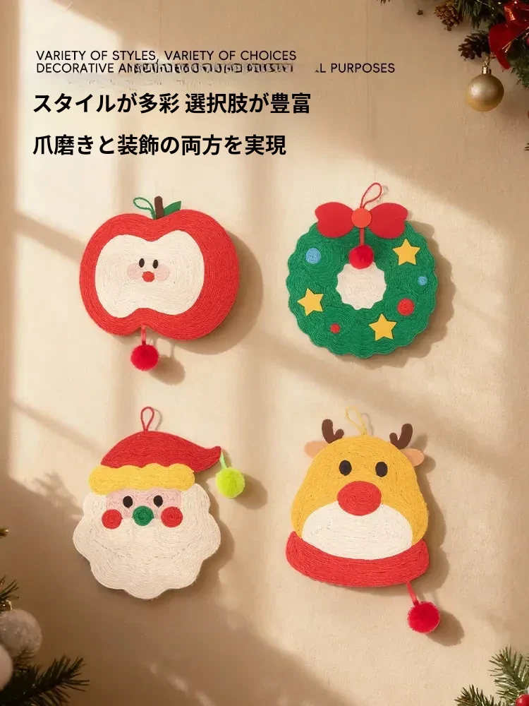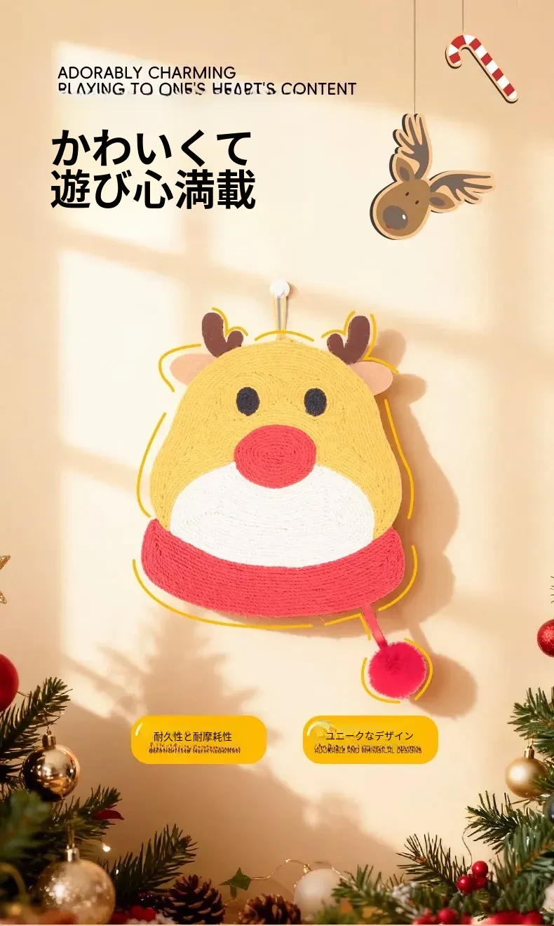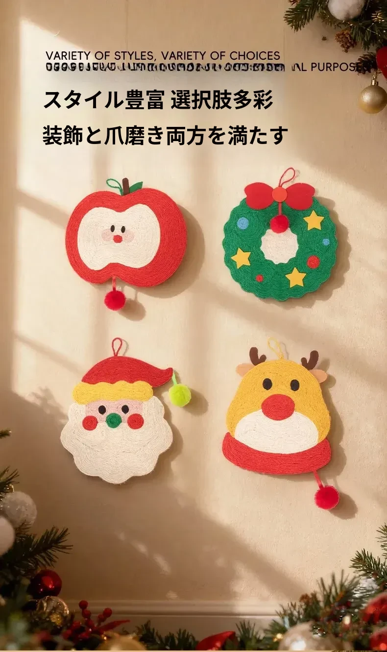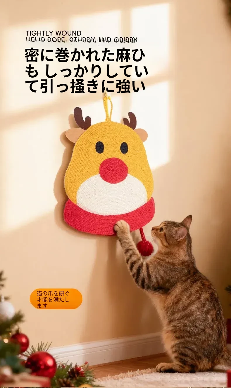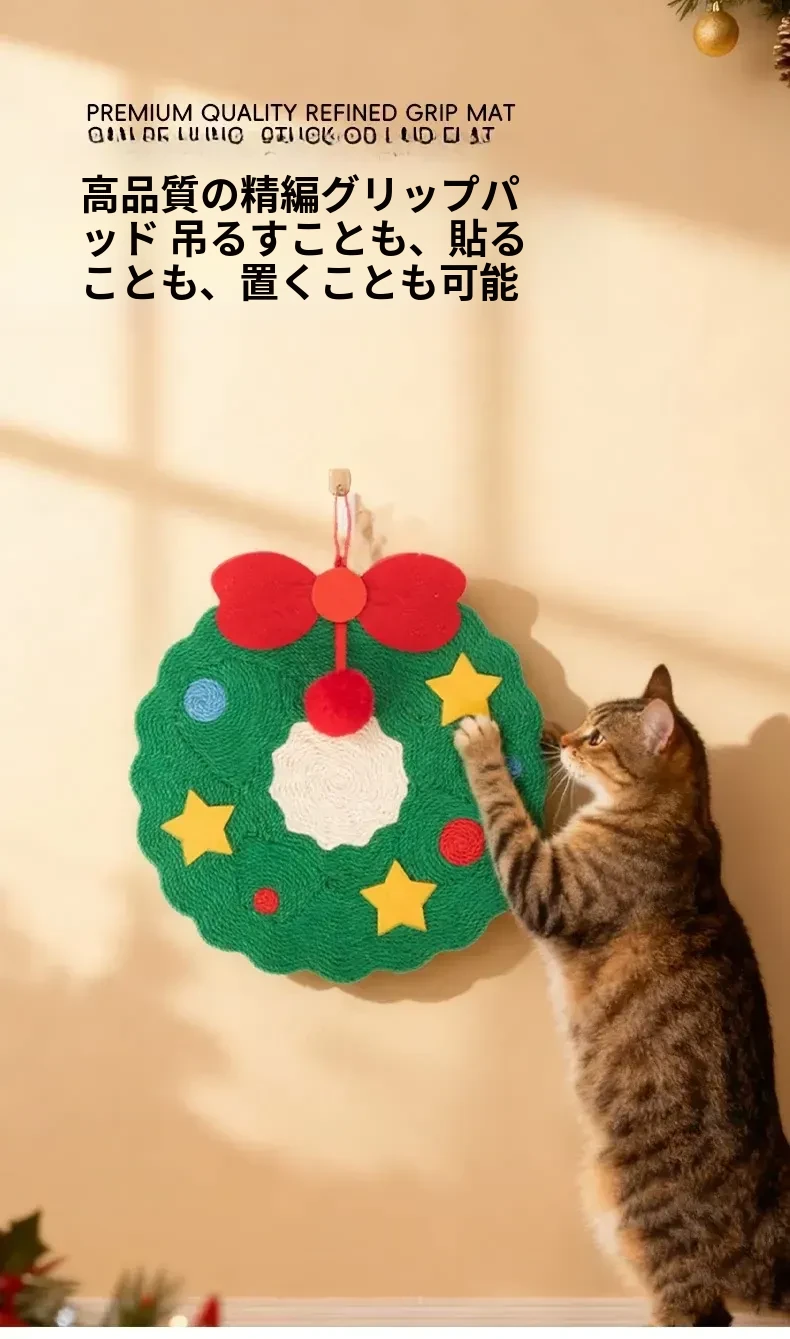 新年限定!耐久性抜群の猫用壁掛け爪研ぎマット - 毛が抜けない設計で、猫ちゃんの退屈解消に最適な自遊びおもちゃ!爪をしっかり磨いて、元気いっぱいに新年を迎えましょう!