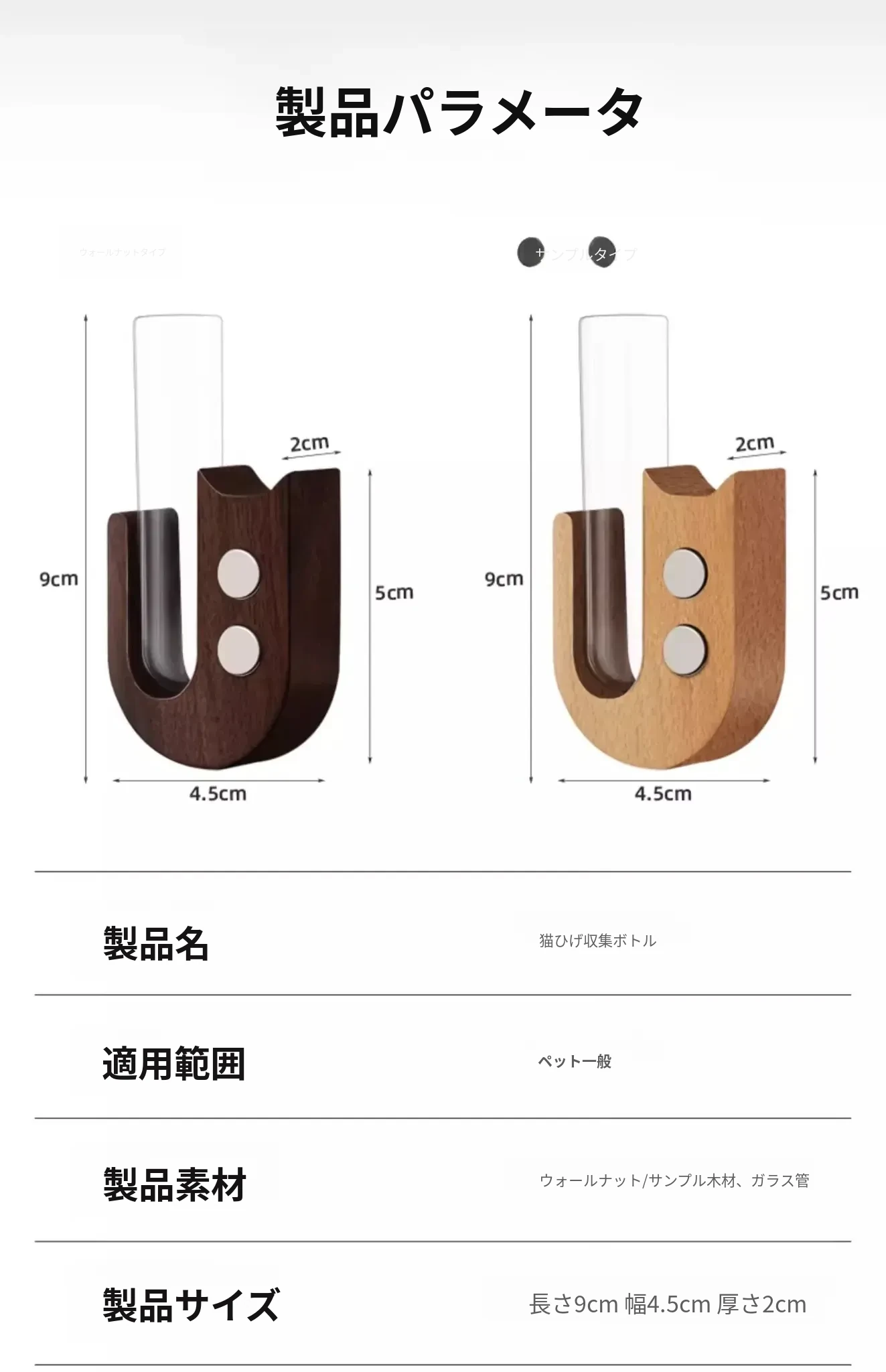 【ウォールナット】冷蔵庫マグネットタイプ-毛髪収集瓶