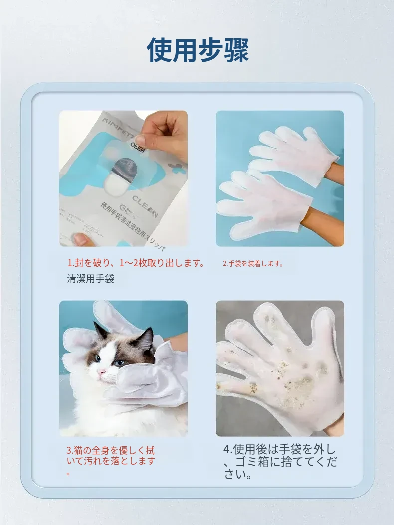 ペット用ノンウォッシュ手袋 - 犬猫のお手入れに最適!清潔湿巾でSPA感覚の洗浄、抗菌・消臭効果で足やお尻もサッと拭ける便利アイテム!愛するペットをいつでも清潔に保ちましょう!