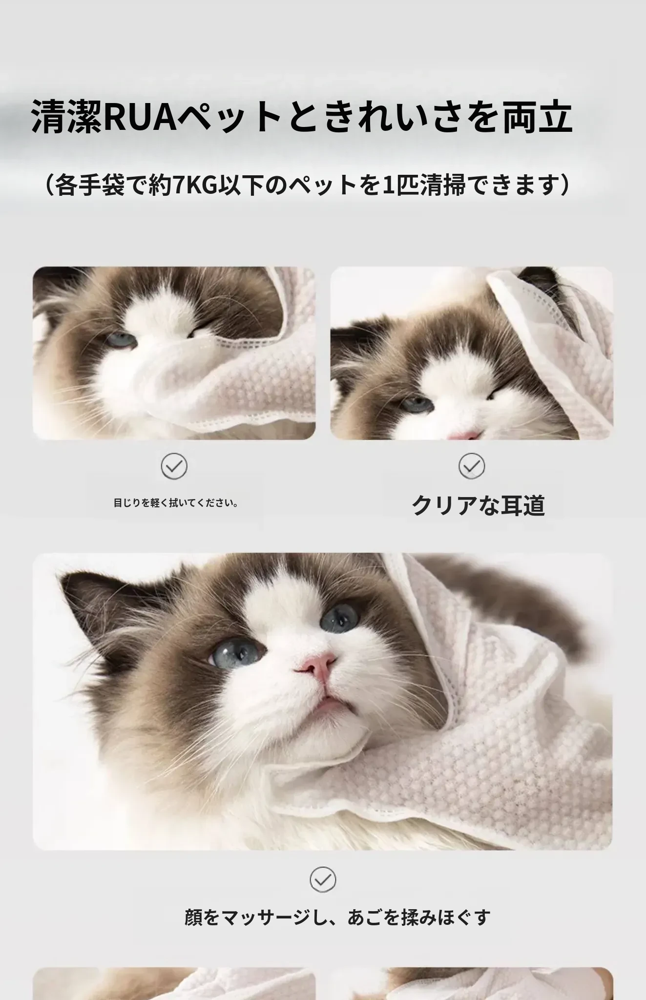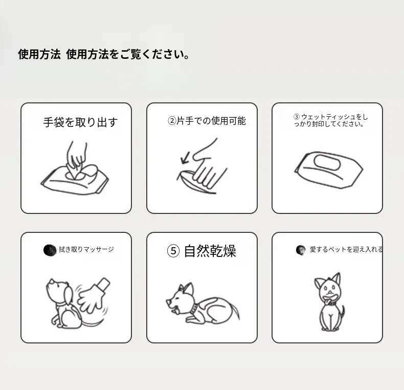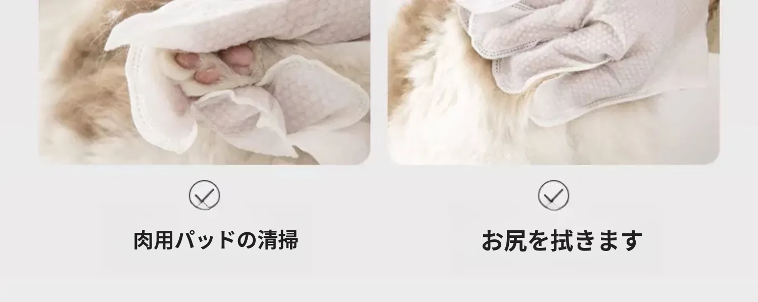 ペット用洗わずに使える手袋 猫の清潔と犬のドライシャンプーに最適!猫の臭い取りや足のケアも簡単に!指サックタイプで使いやすく、愛するペットをもっとキレイに!