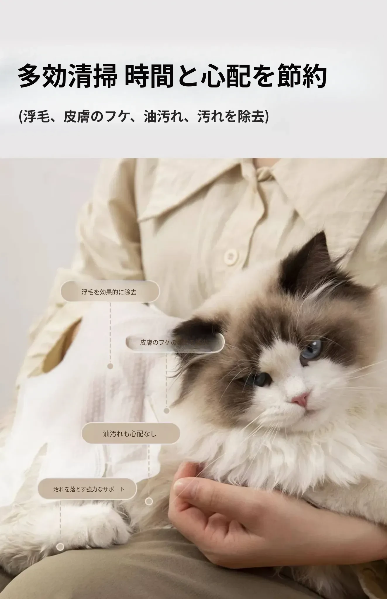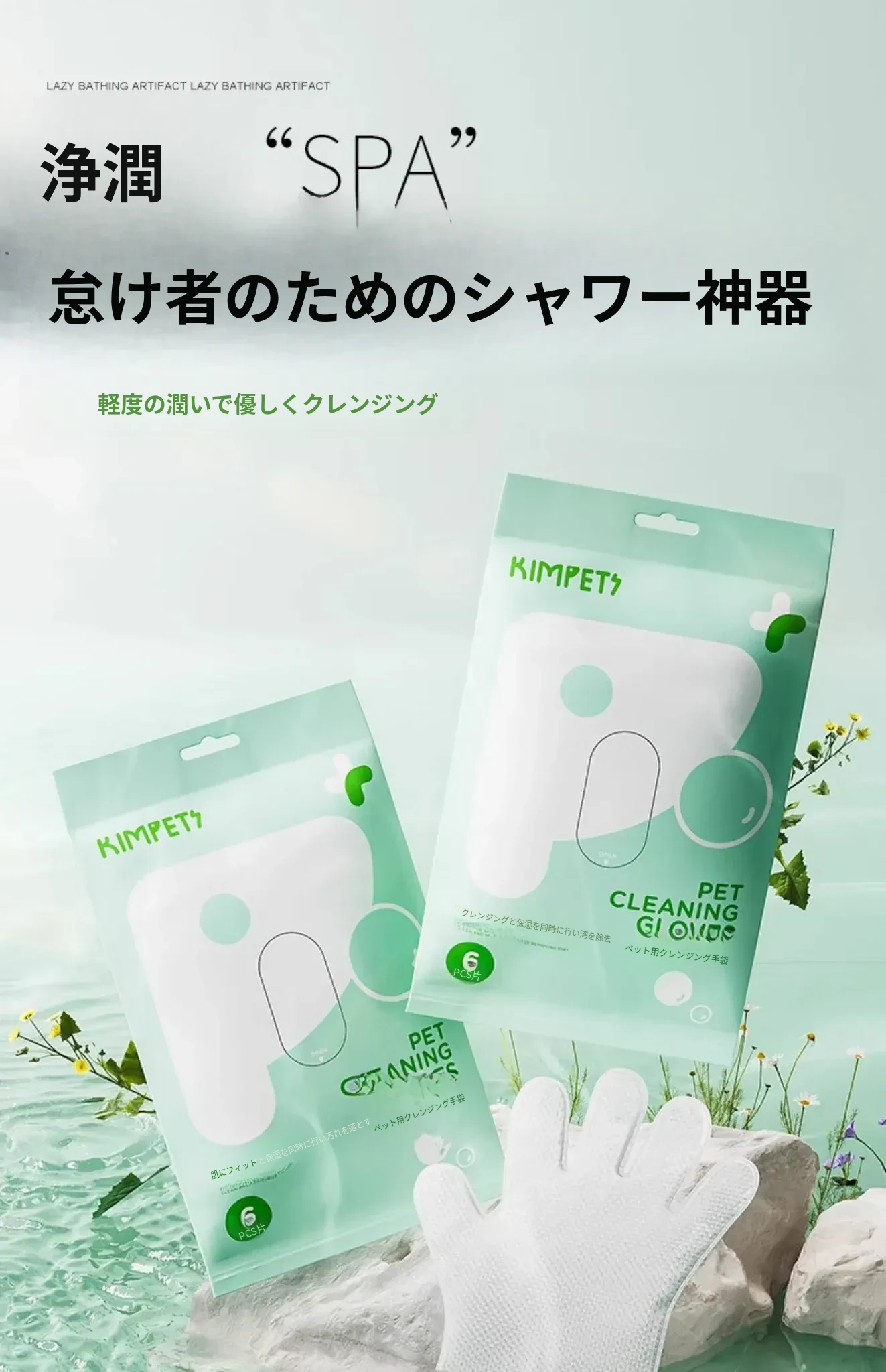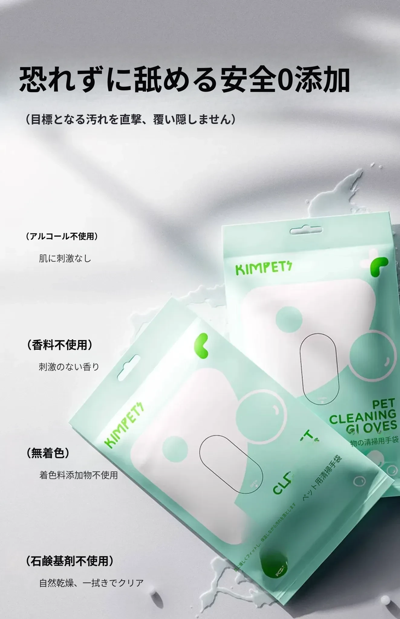 ペット用洗わずに使える手袋 猫の清潔と犬のドライシャンプーに最適!猫の臭い取りや足のケアも簡単に!指サックタイプで使いやすく、愛するペットをもっとキレイに!