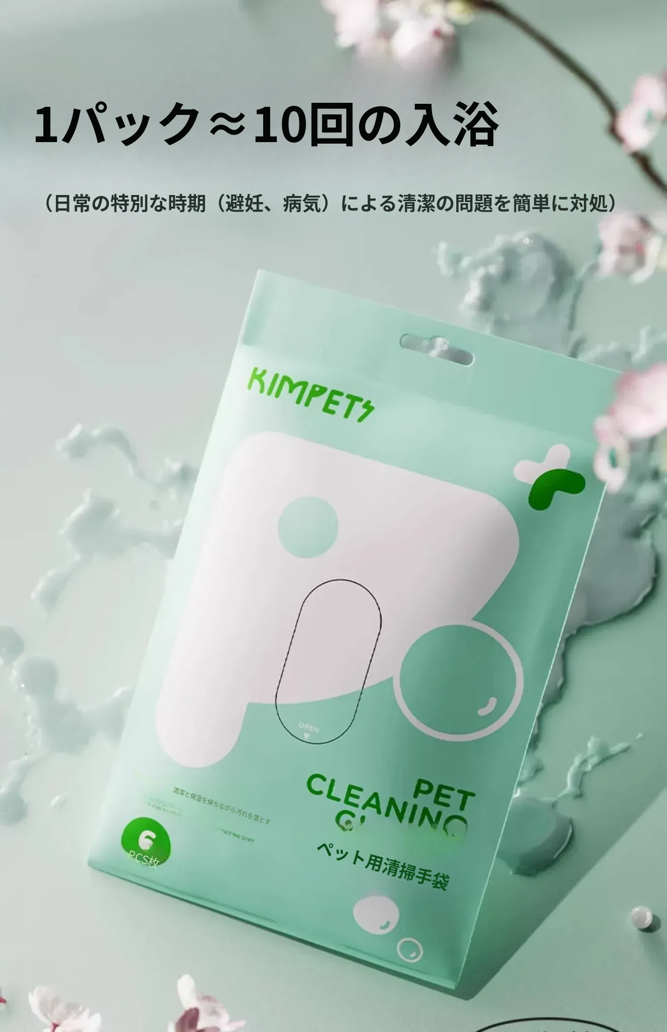 【消臭クリーニング 猫犬共用】桜の香り1パック/6枚入り