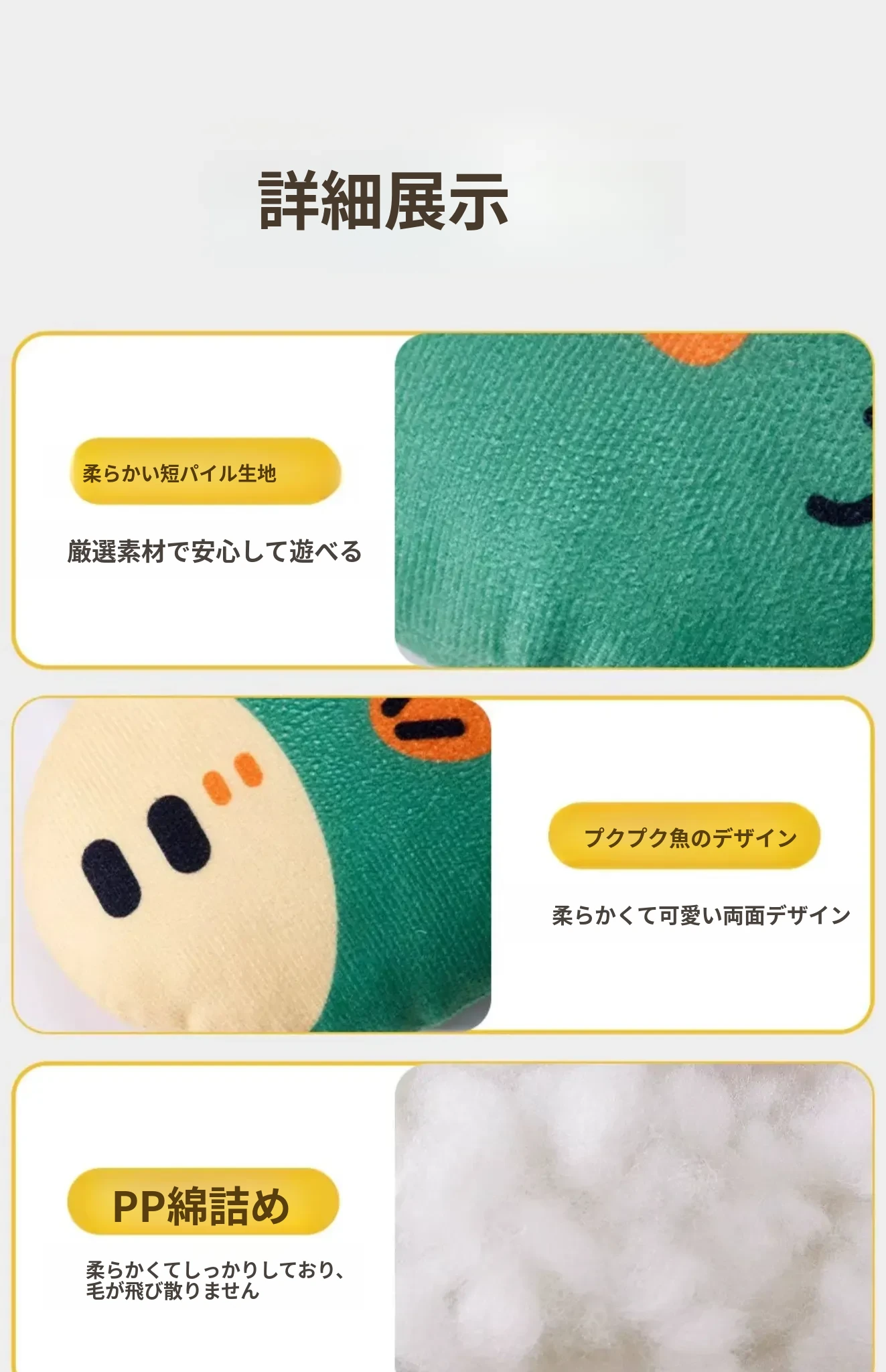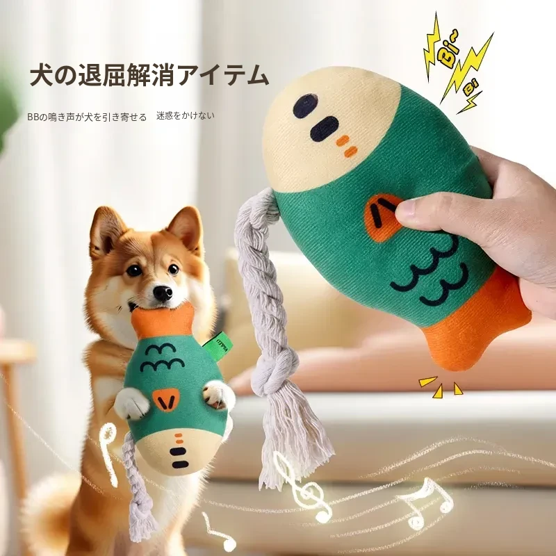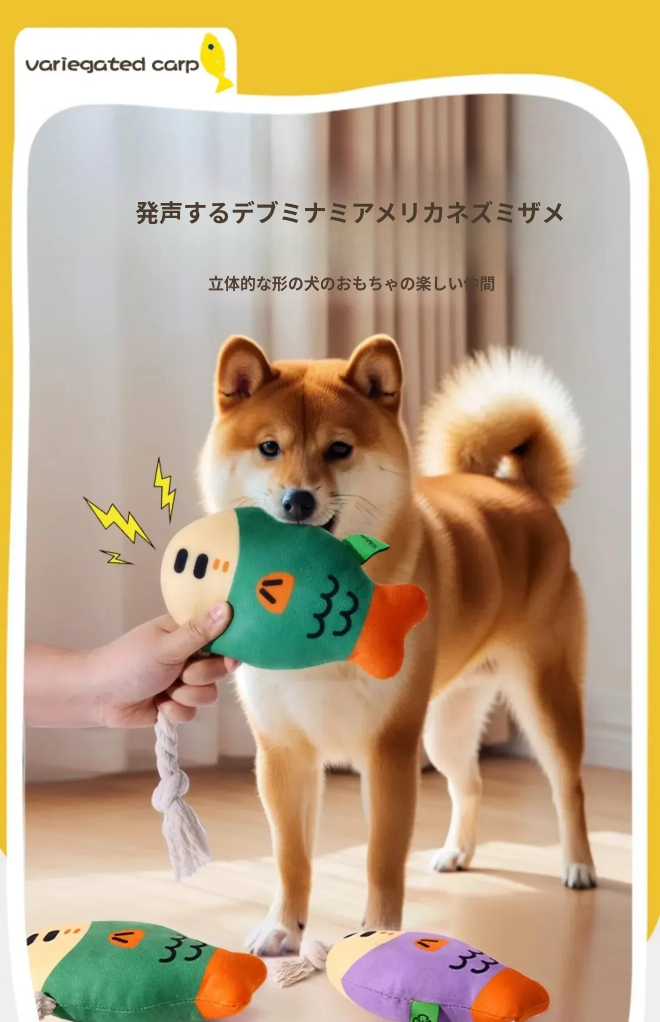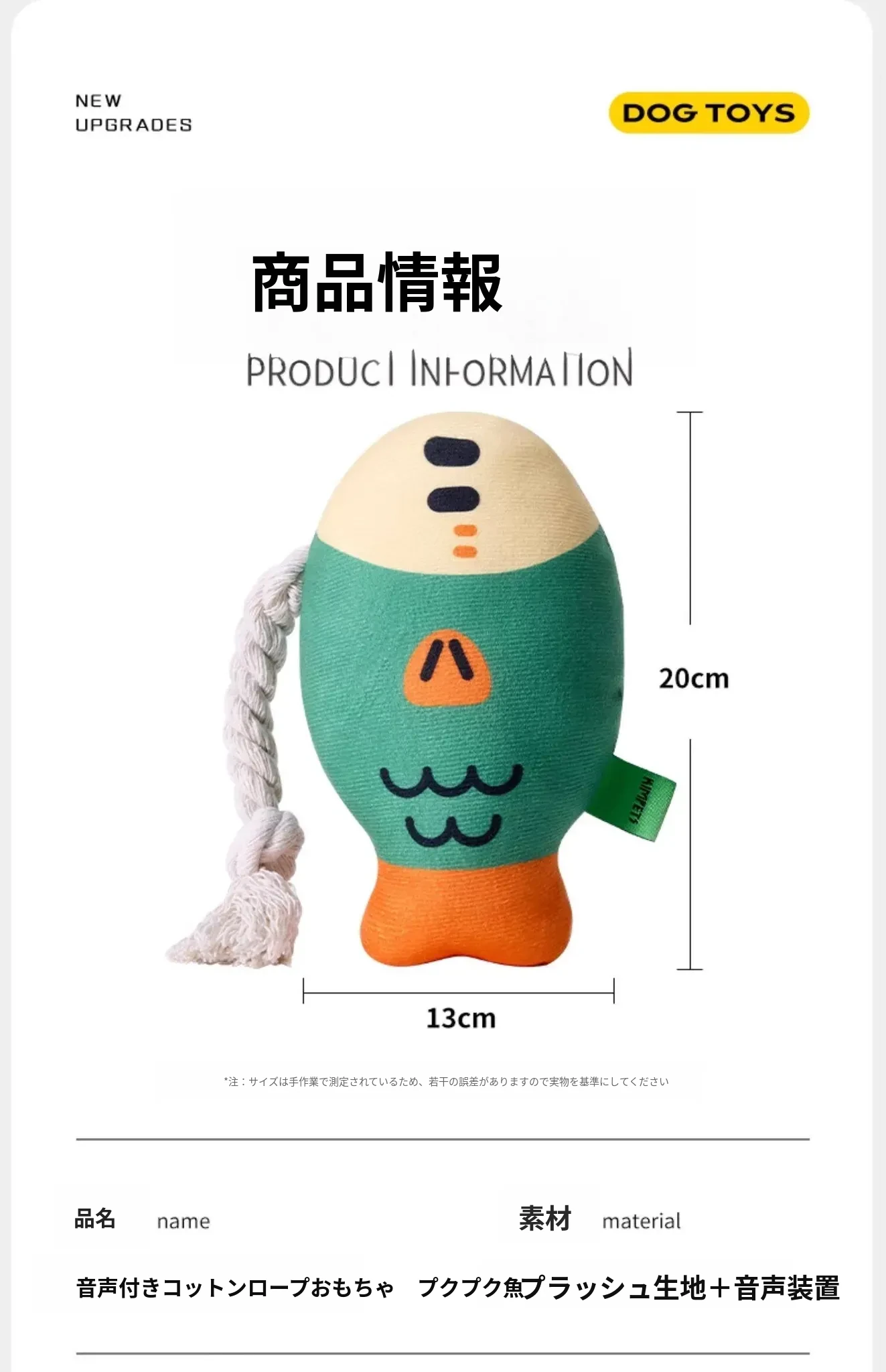 愛犬のためのふわふわおもちゃ!音が出るぷくぷくの魚型デザインで、小型犬も大満足!耐久性抜群、噛むのが大好きな犬に最適!歯磨き効果もあり、楽しく退屈を解消するペット用品です。