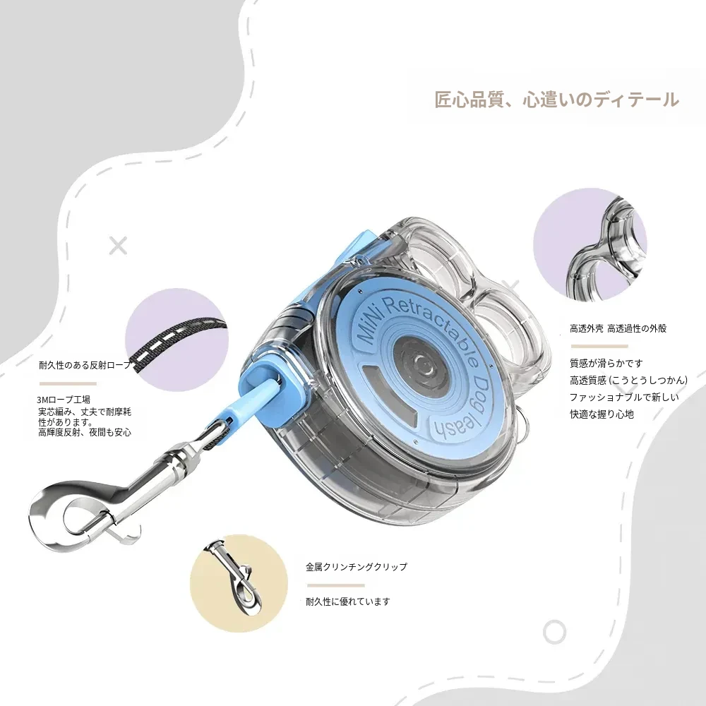 自動伸縮リード 小型犬用 テディ・コーギーに最適!お散歩がもっと楽しくなるペット用リード。猫や犬にも対応しており、快適な外出をサポートします!