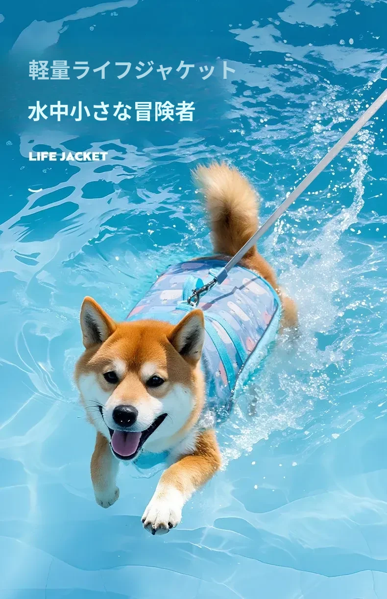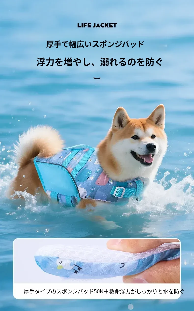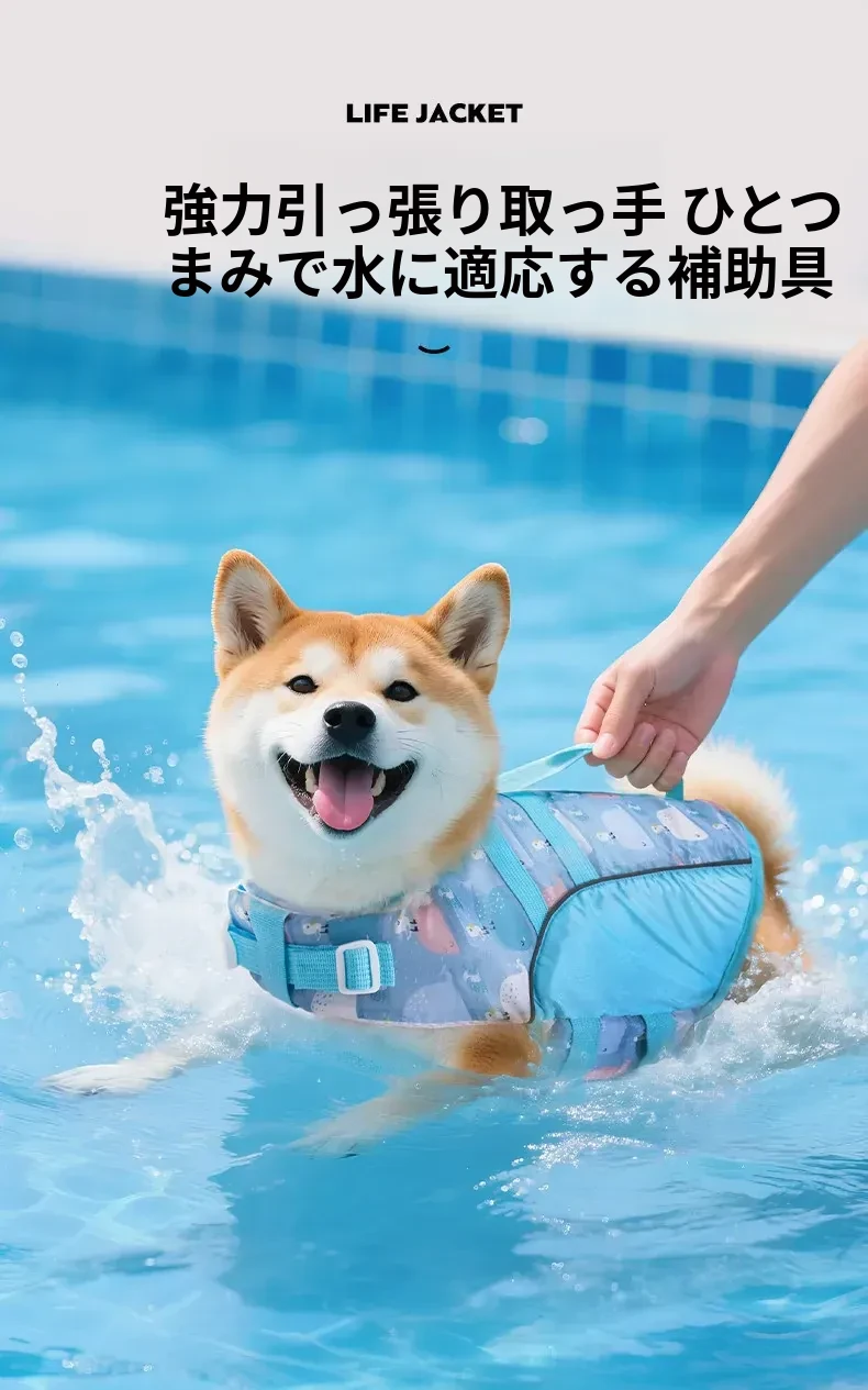 夏のペット救命ジャケット!小型犬・中型犬に最適な水遊び用ライフジャケット。柴犬やテディベア犬も安心して楽しめる!引き手付きで散歩にも便利。愛犬と一緒に楽しい夏を過ごそう!