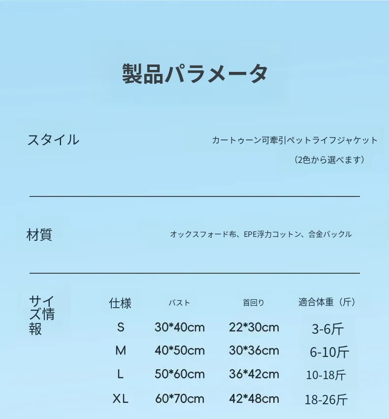 S(胸囲30*40cm、首囲22*30cm)推奨体重3-6斤
