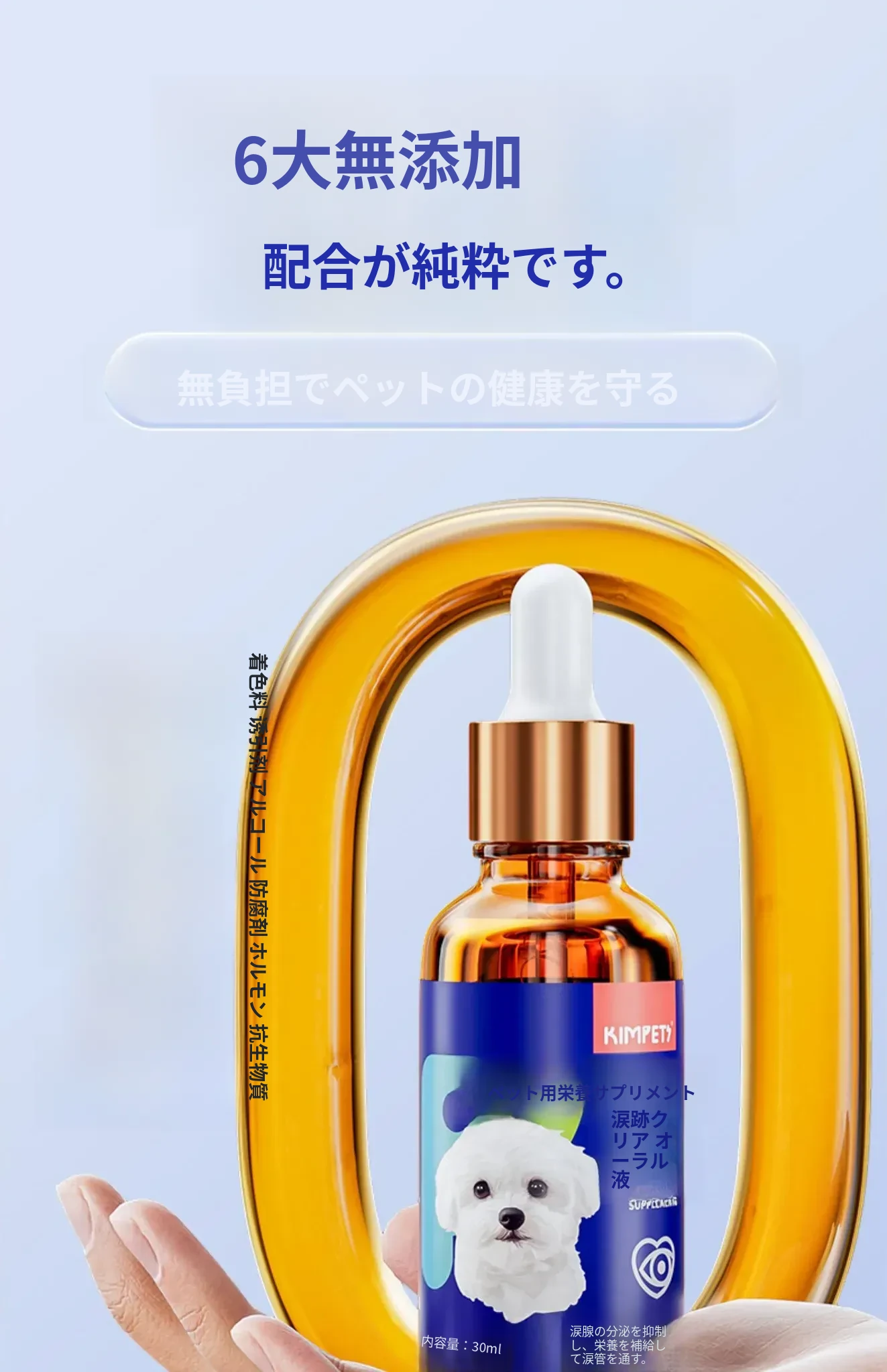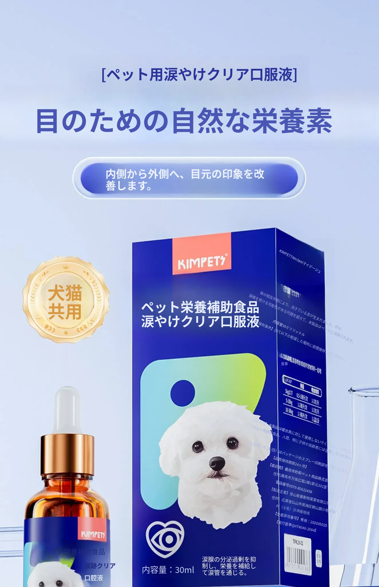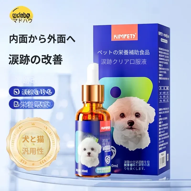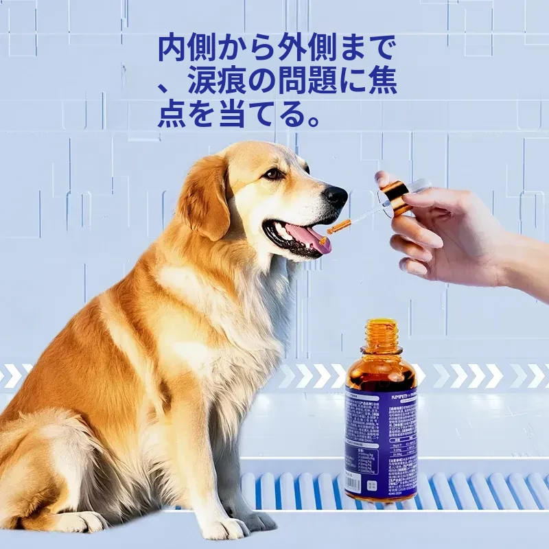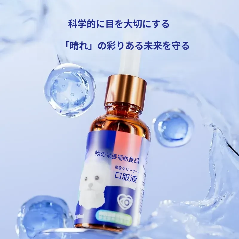 猫と犬の涙やけ専用液体!涙やけをスッキリ解消、目元をきれいに保つ魔法の点眼液。愛するペットのために、安心・安全なオールインワンケアをお届けします!