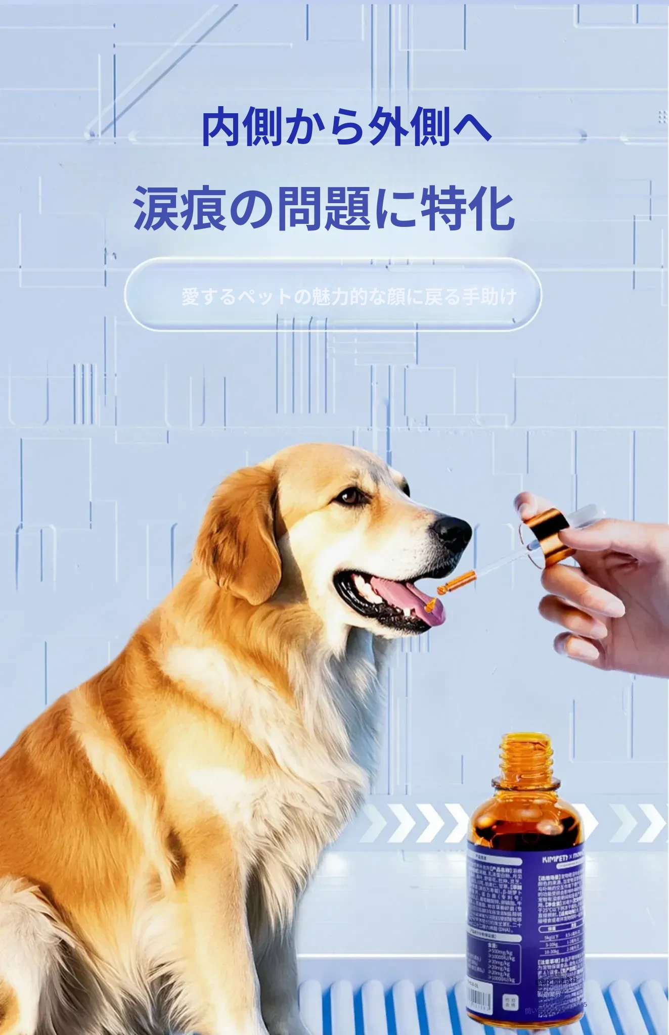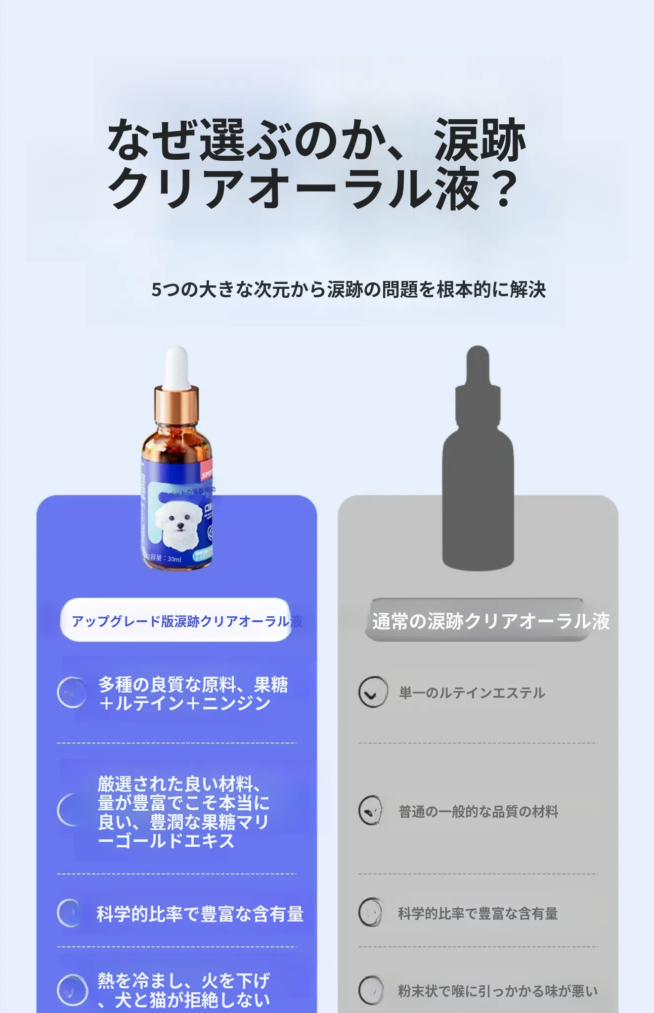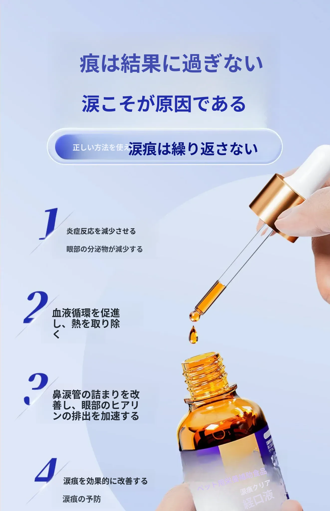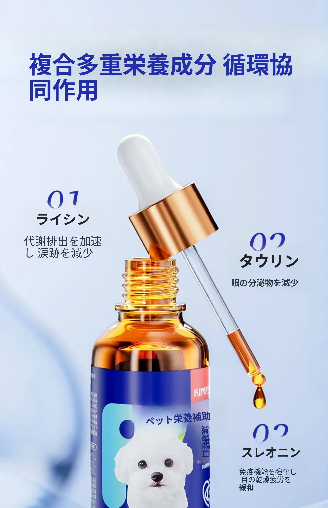 猫と犬の涙やけ専用液体!涙やけをスッキリ解消、目元をきれいに保つ魔法の点眼液。愛するペットのために、安心・安全なオールインワンケアをお届けします!