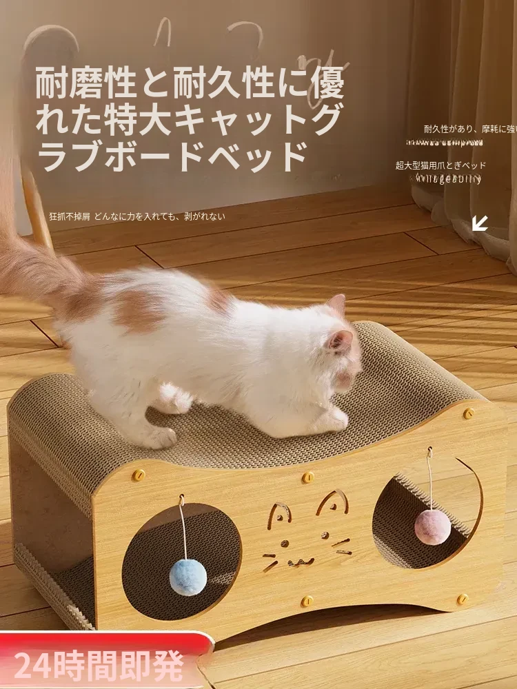 超大型ボール付き猫爪研ぎ - 落ちない粉塵・耐久性抜群!一体型キャットハウスで猫ちゃんも大満足!自分で遊べるストレス解消おもちゃ!
